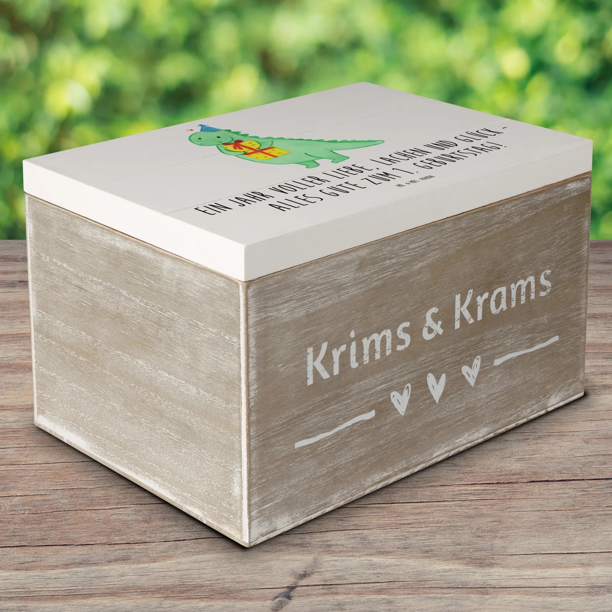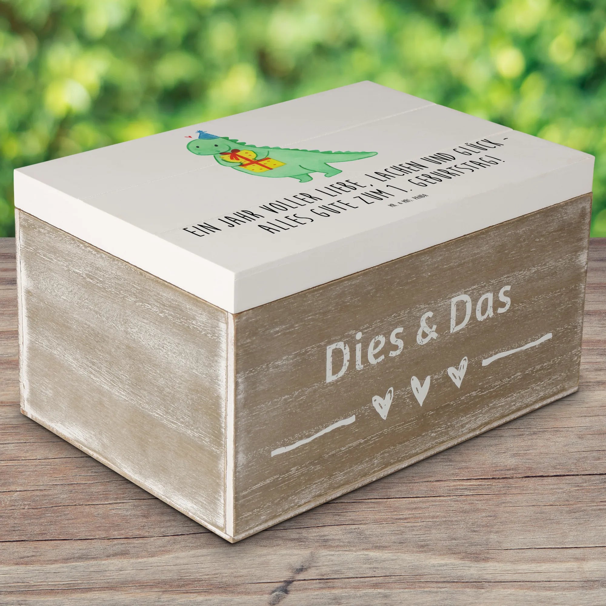 Die wunderschöne Holzkiste von Mr. & Mrs. Panda ist das perfekte Geschenk für den 1. Geburtstag. Mit dem liebevollen Slogan 'Ein Jahr voller Liebe, Lachen und Glück - alles Gute zum 1. Geburtstag!' zaubert sie ein Lächeln auf jedes Gesicht. Diese Erinnerungsbox bietet einen idealen Aufbewahrungsort für die ersten Schätze deines kleinen Lieblings. Egal, ob es sich um Erinnerungen an das erste Lächeln, die ersten Schritte oder die ersten Geburtstagsgeschenke handelt – diese Schatzkiste wird dafür sorgen, dass jede kostbare Erinnerung einen besonderen Platz findet.