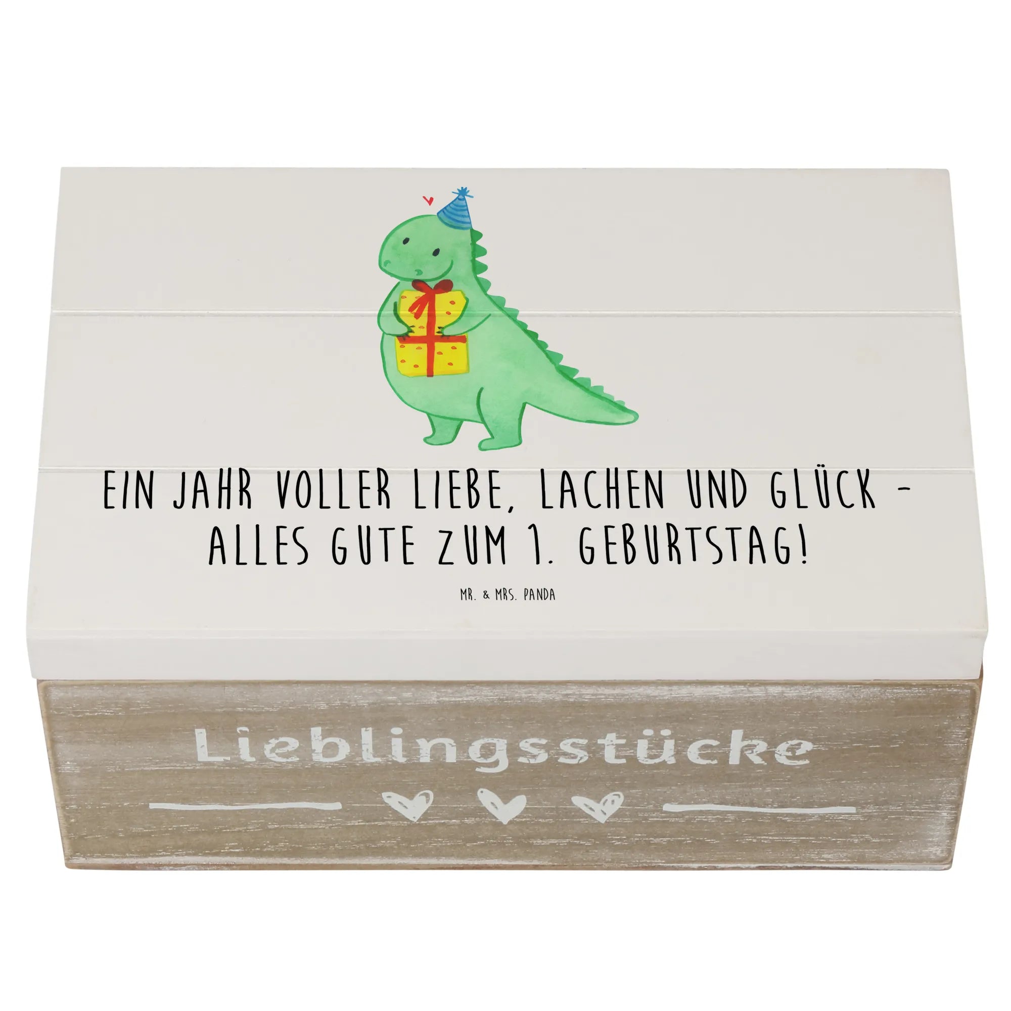 Die wunderschöne Holzkiste von Mr. & Mrs. Panda ist das perfekte Geschenk zum ersten Geburtstag! Mit ihrem liebevollen Motiv "Ein Jahr voller Liebe, Lachen und Glück - alles Gute zum 1. Geburtstag!" kommt sie aus unserer besonderen Kollektion "Geburtstag Alter" und ist besonders für fröhliche Feiern geeignet.