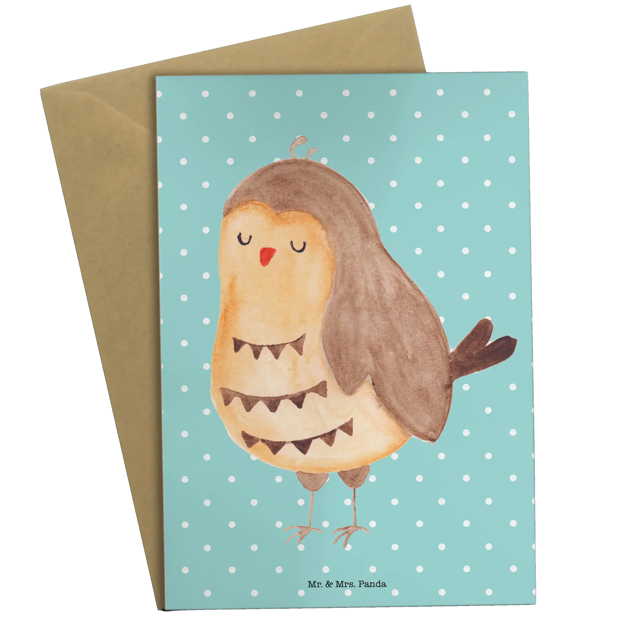 Die wunderschöne Grußkarte "Eule Zufrieden" von Mr. & Mrs. Panda ist das perfekte Geschenk für viele festliche Anlässe. Egal, ob du einen lieben Menschen zum Geburtstag, zur Hochzeit oder einfach nur so überraschen möchtest, diese Karte bringt garantiert ein Lächeln auf die Lippen. Mit ihrem süßen Eulenmotiv und dem hochwertigen, hochglänzend veredelten Karton strahlt sie eine besondere Eleganz aus.