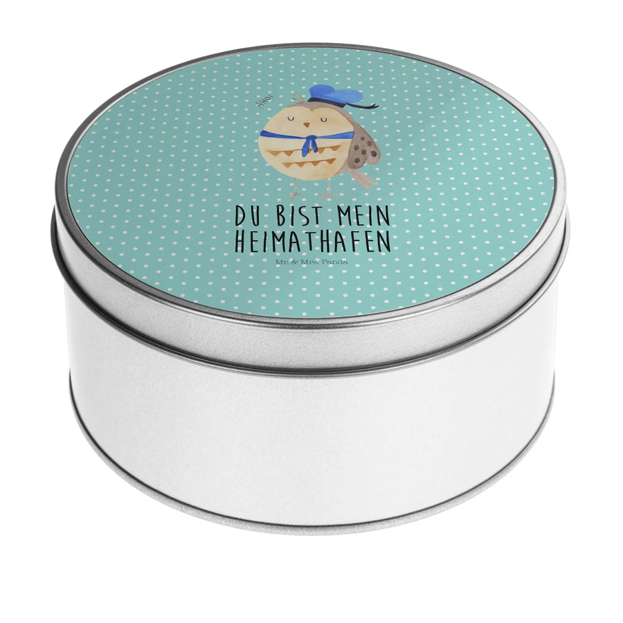 Blechdose rund Eule Matrose - mit Spruch