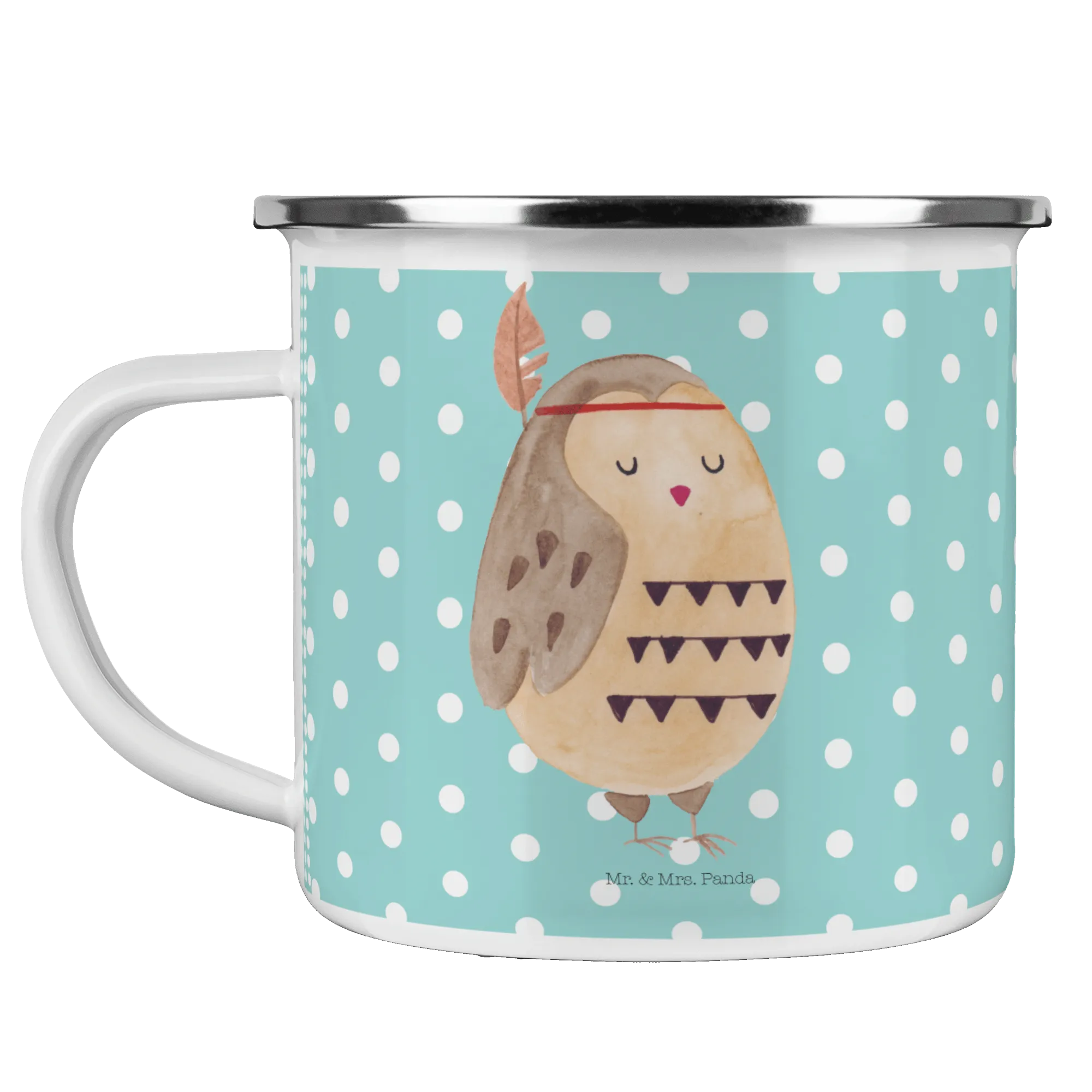 Erwecke die Abenteuerlust in dir und nimm die Eule Federschmuck Camping Emaille Tasse überall mit hin!