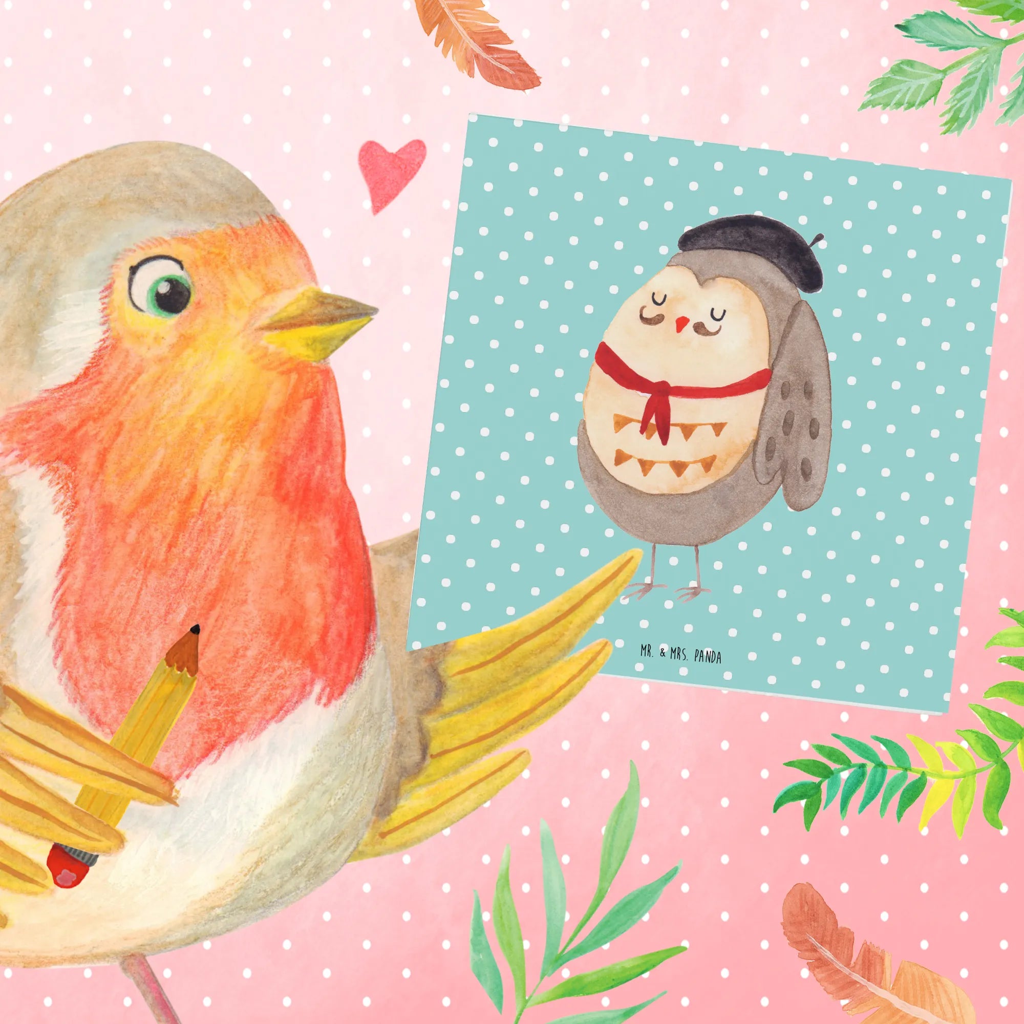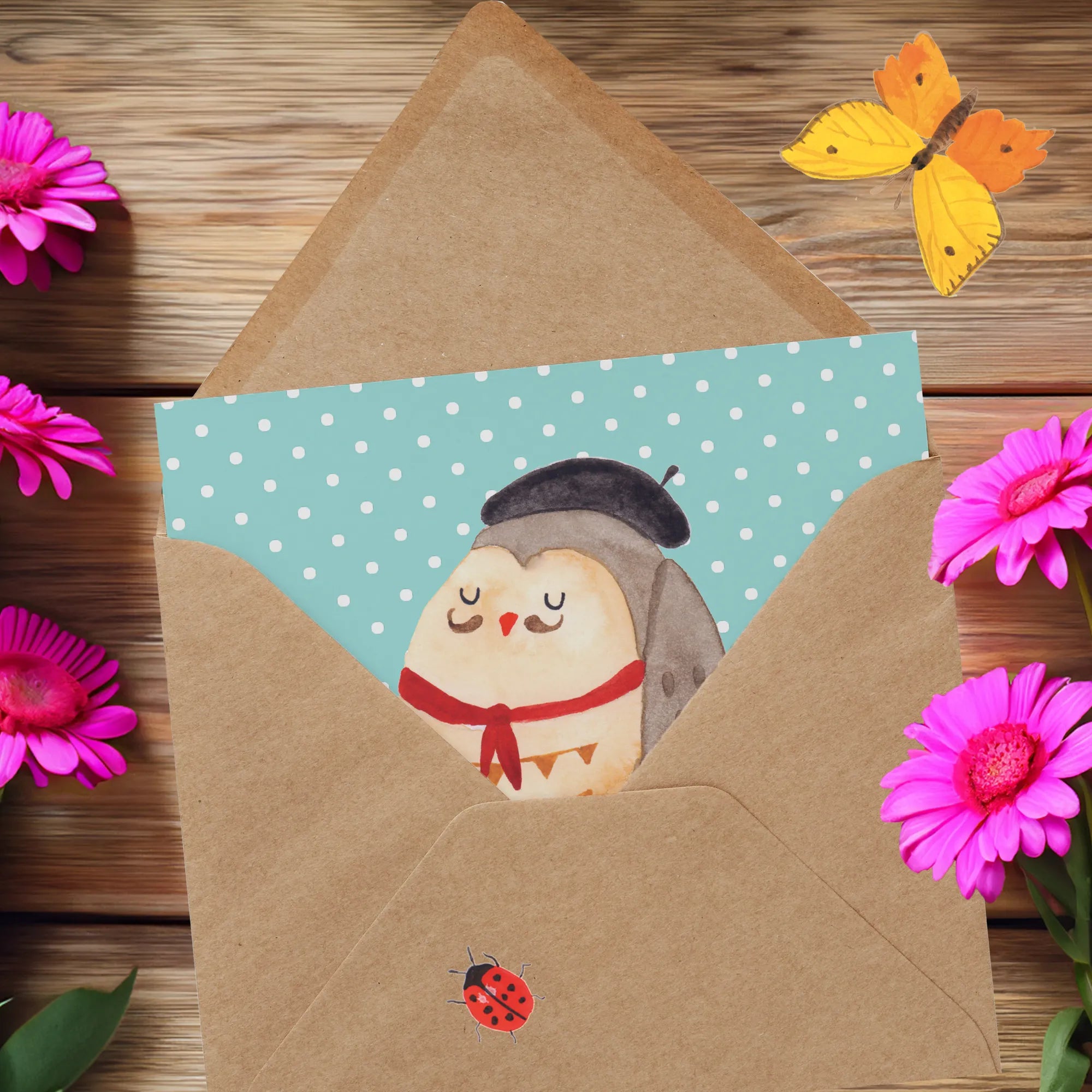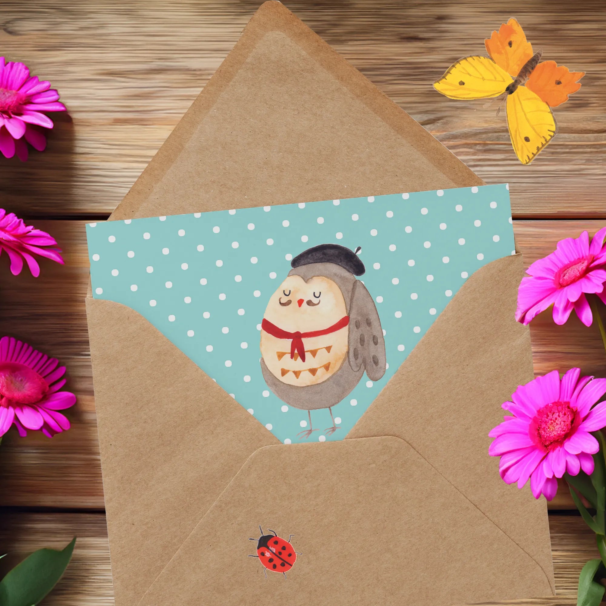 Deluxe Karte Eule Frankreich - mit Spruch - Türkis Pastell