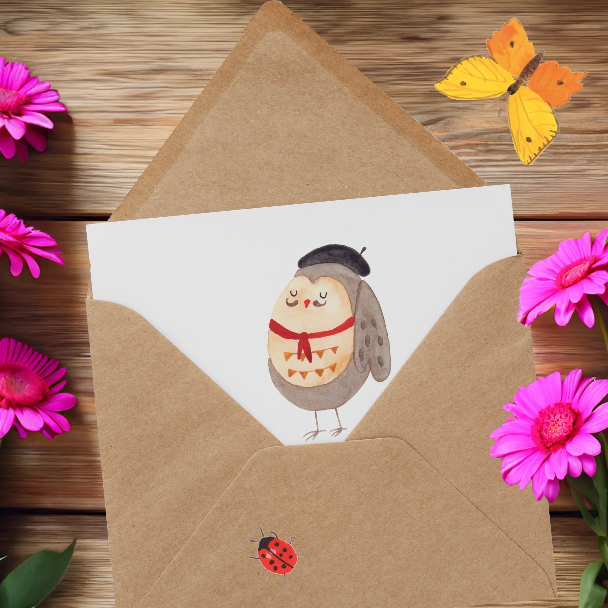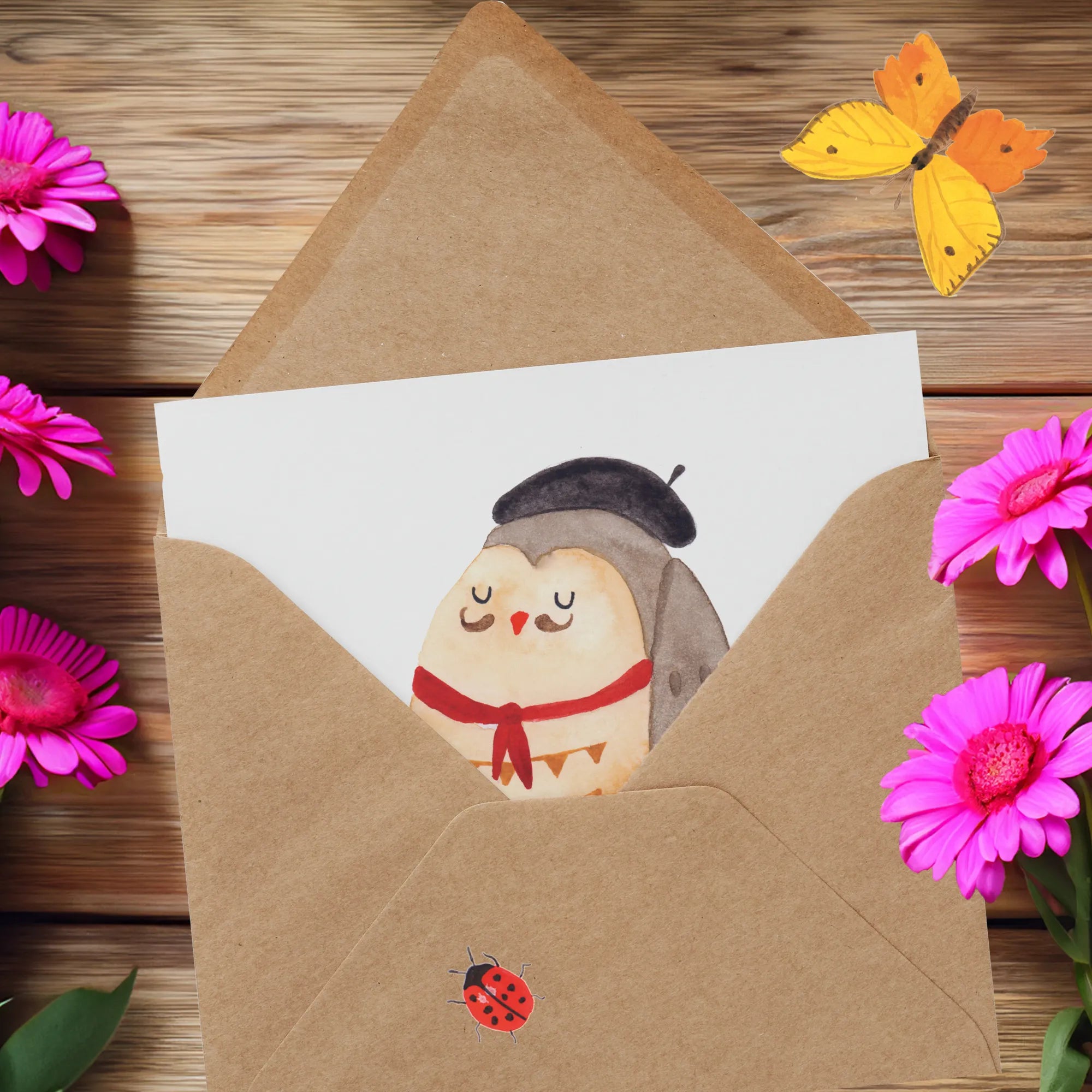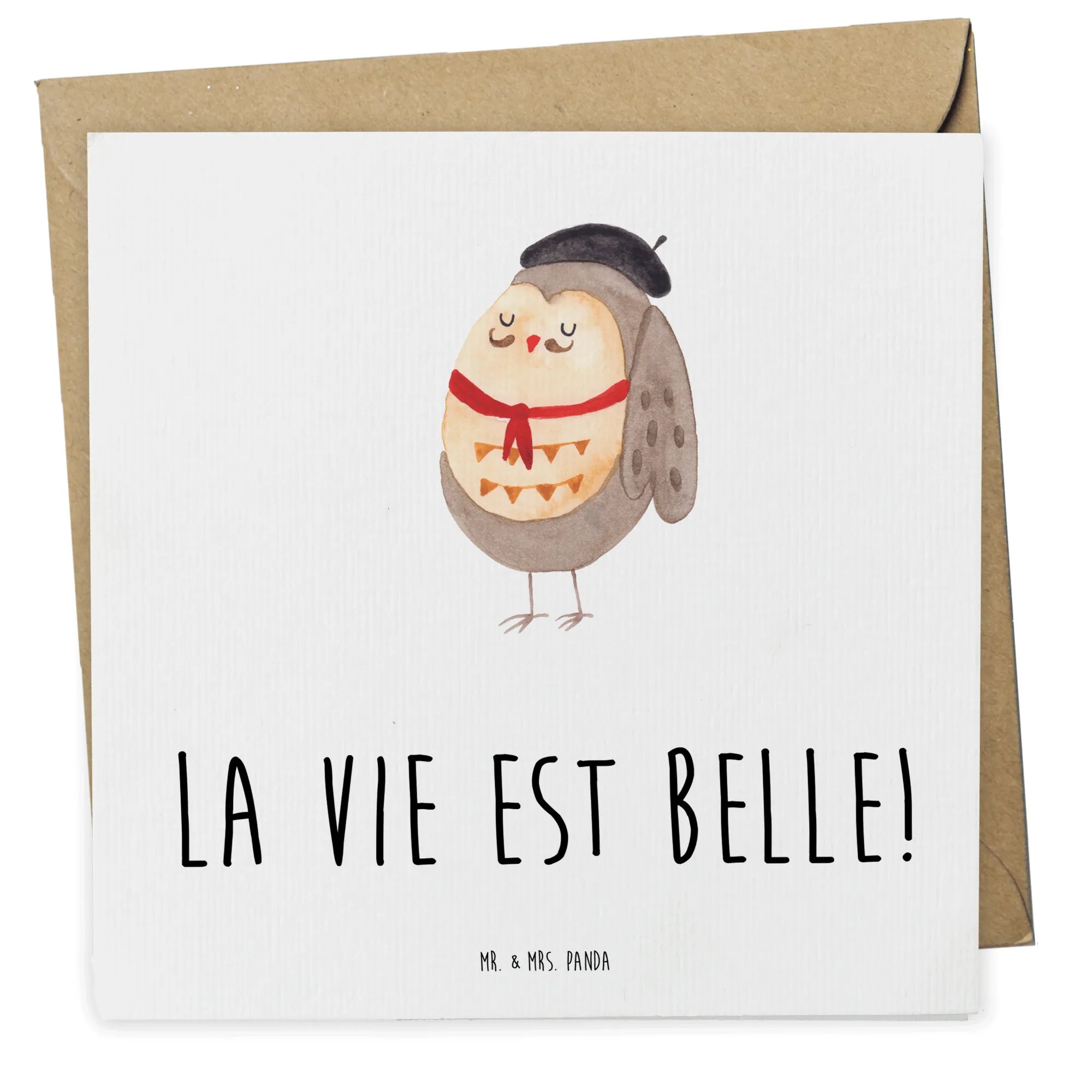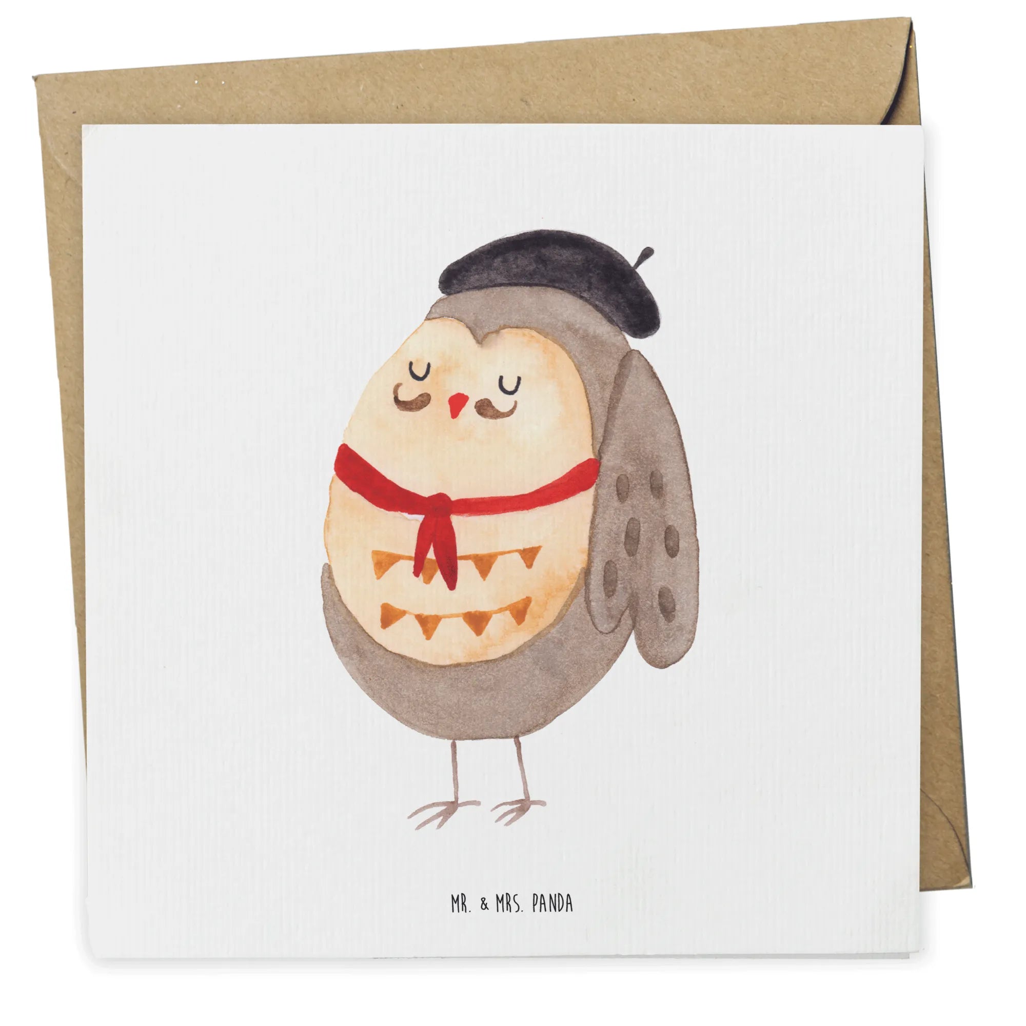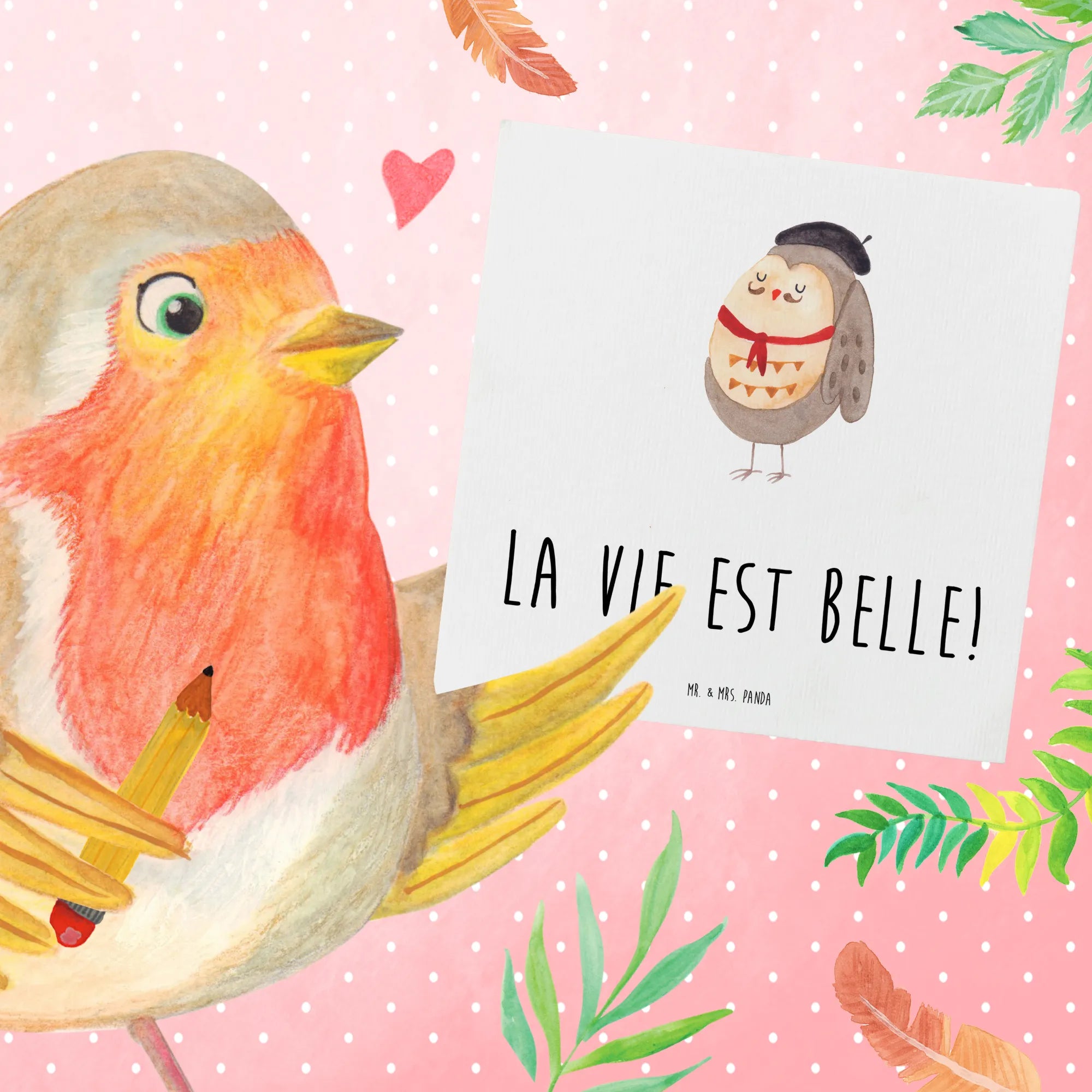 Die Deluxe Karte "Eule Französisch" von Mr. & Mrs. Panda ist der perfekte Gruß für jeden Anlass. Ob zur Hochzeit, zum Geburtstag oder einfach nur um jemandem eine Freude zu machen, diese exquisite und hochwertige quadratische Karte wird sicher ein Lächeln auf die Gesichter Deiner Liebsten zaubern.