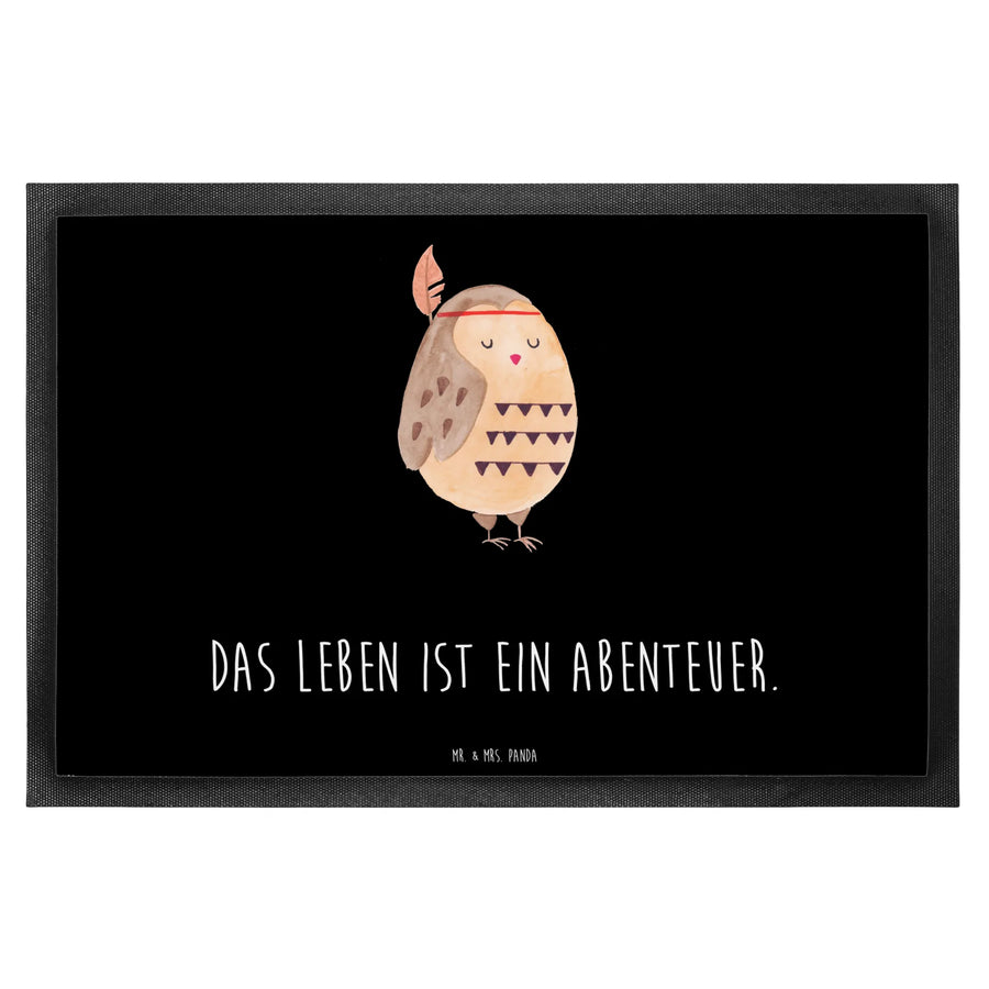 Fußmatte Eule Federschmuck - 60 x 90 cm - mit Spruch - Schwarz