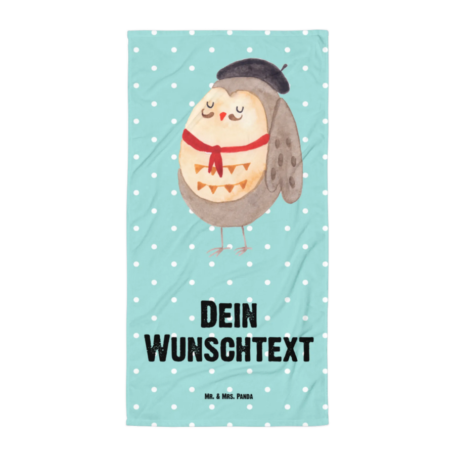 Das personalisierte Badehandtuch mit dem hübschen Eulen-Motiv "La vie est belle!" von Mr. & Mrs. Panda ist das perfekte Geschenk für alle, die Eulen lieben und ein Stück Frankreich in ihr Badezimmer bringen möchten! Die charmante Eule, die mit Hut, Fliege und Schnurrbart daherkommt, zaubert nicht nur ein Lächeln auf dein Gesicht, sondern ist auch ein praktisches und stilvolles Accessoire für den Strand, das Schwimmbad oder die Sauna.