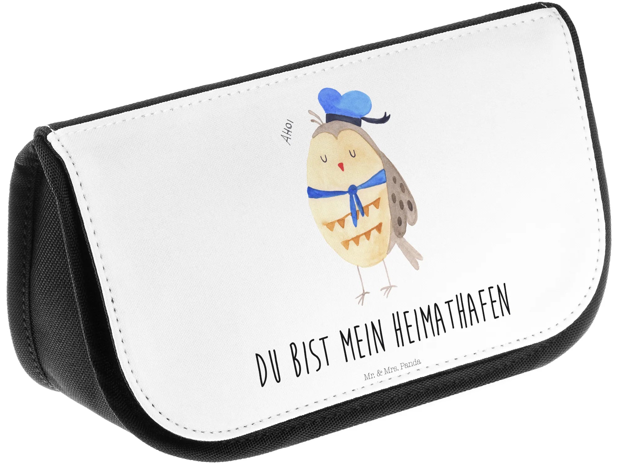 Entdecke die wundervolle Kosmetiktasche Eule Matrosen von Mr. & Mrs. Panda – ein zauberhaftes Accessoire für alle, die Eulen und maritimes Flair lieben! Diese Kosmetiktasche ist nicht nur praktisch, sondern auch ein echter Hingucker. Mit ihrem süßen Eulen-Motiv, das eine Eule im Matrosenhut zeigt und dem liebevollen Spruch 'Du bist mein Heimathafen', zaubert sie jedem ein Lächeln ins Gesicht.