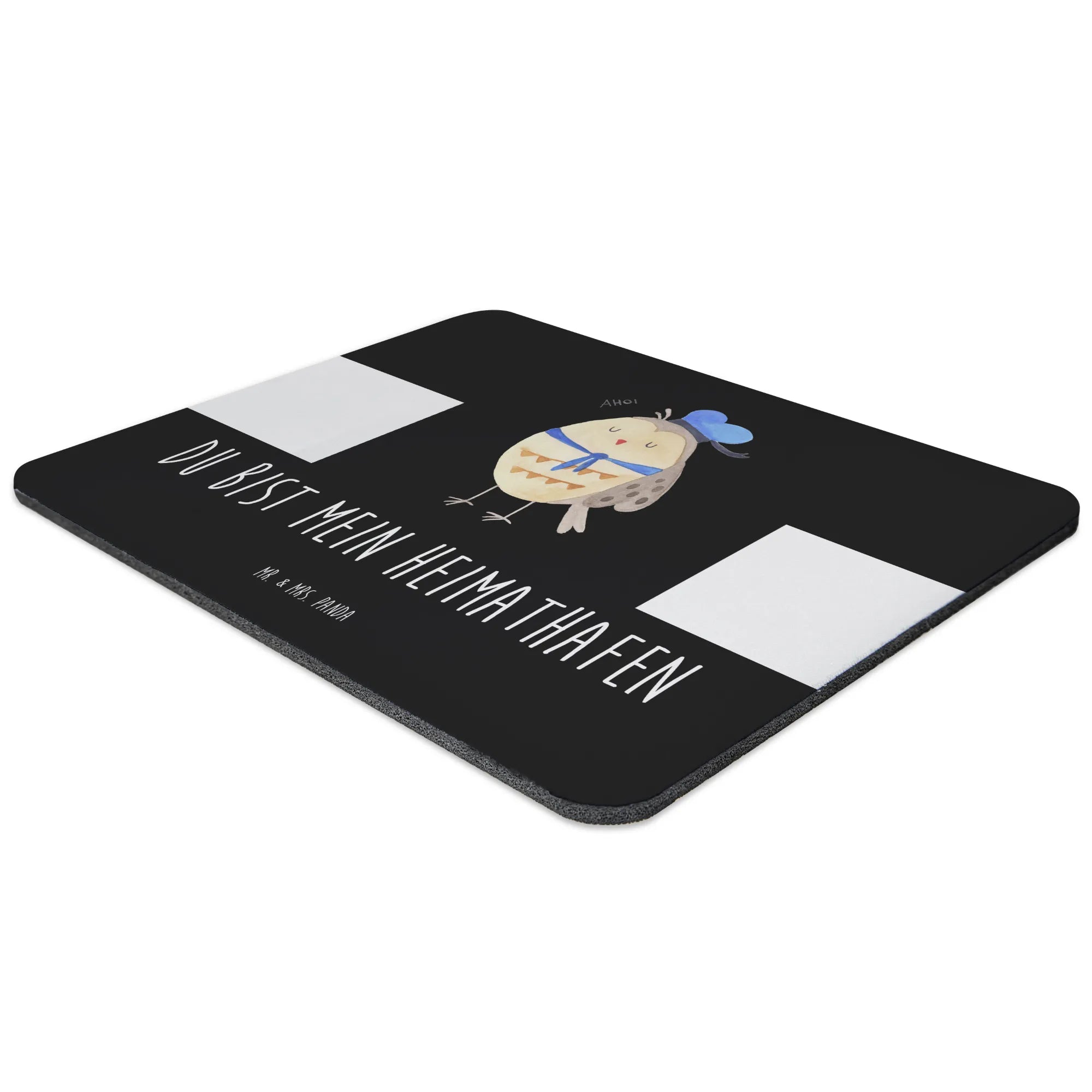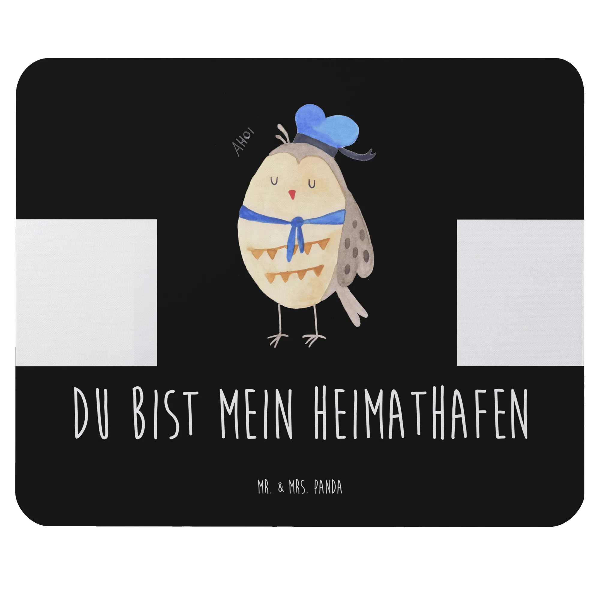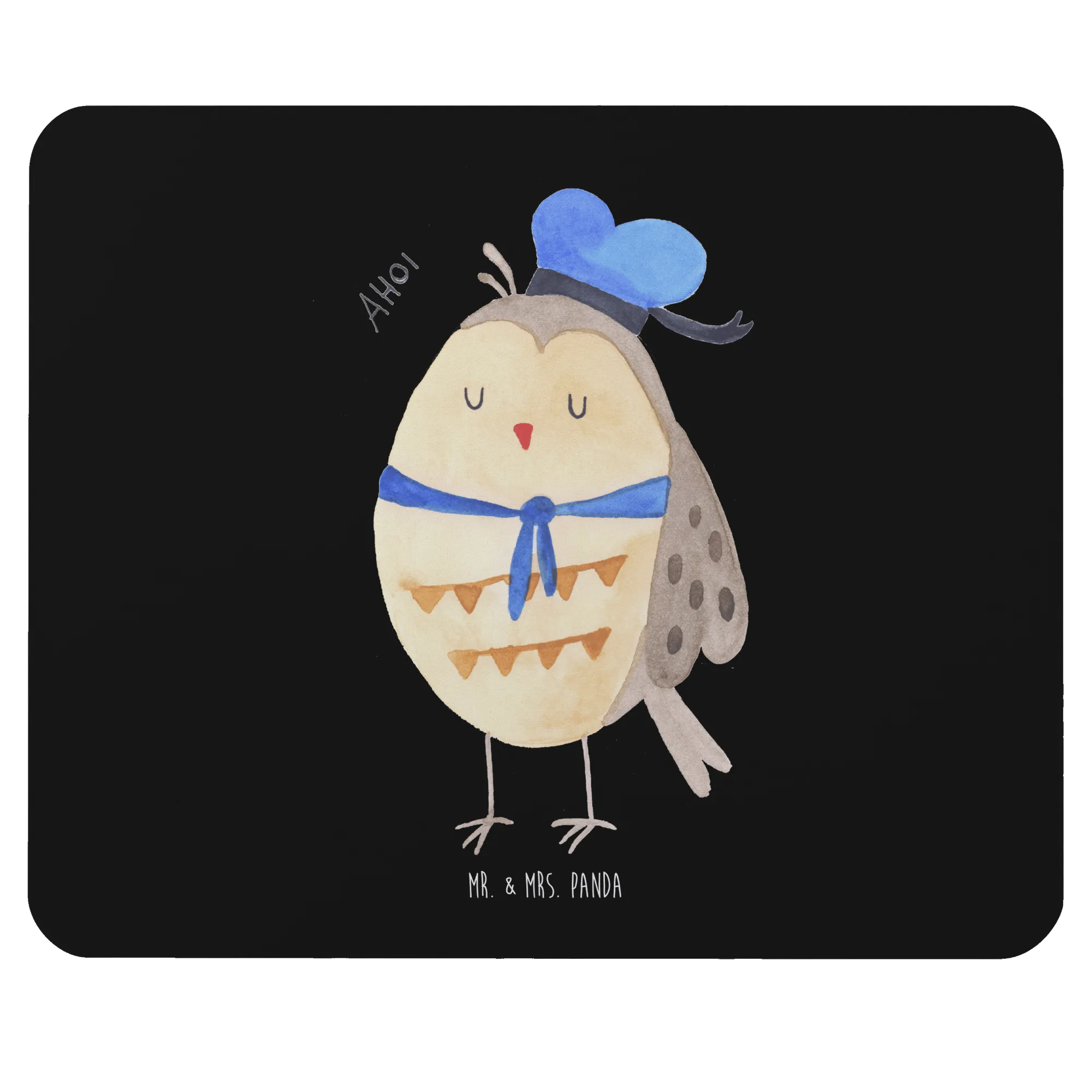 Mauspad Eule Matrose - mit Spruch - Schwarz