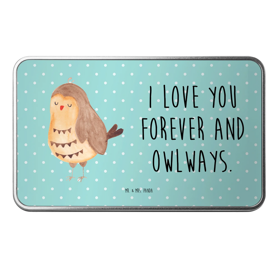 Die niedliche Eule mit ihren großen, strahlenden Augen strahlt eine beruhigende Gelassenheit aus und sorgt dafür, dass du beim Öffnen der Dose gleich in eine entspannte Stimmung gelangst. Kein Wunder, dass die Eule als Symbol für Weisheit und Ruhe gilt. Diese Metalldose ist ideal als Geschenk zur Hochzeit, zum Jahrestag oder einfach als liebevolle Überraschung für die besten Freunde.
