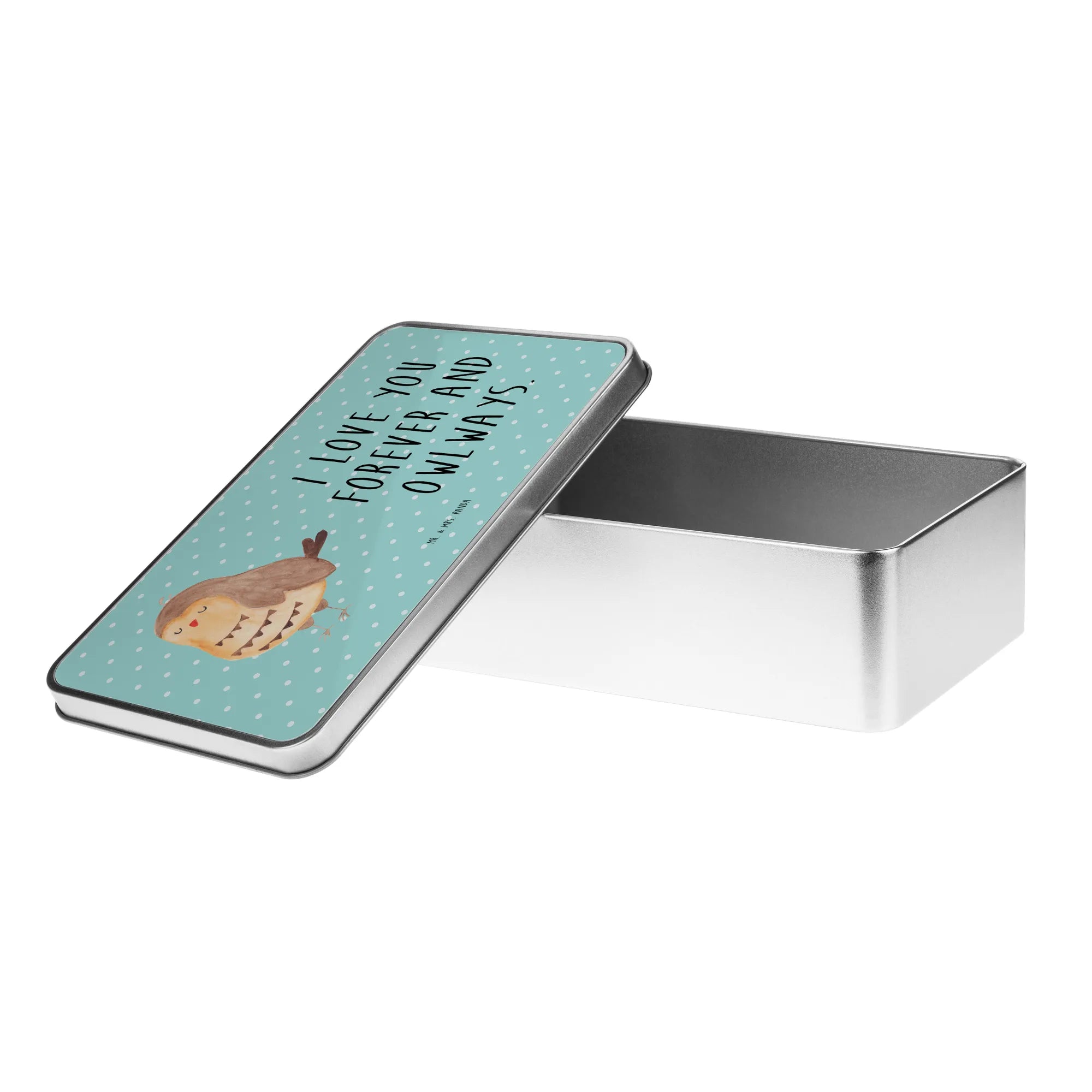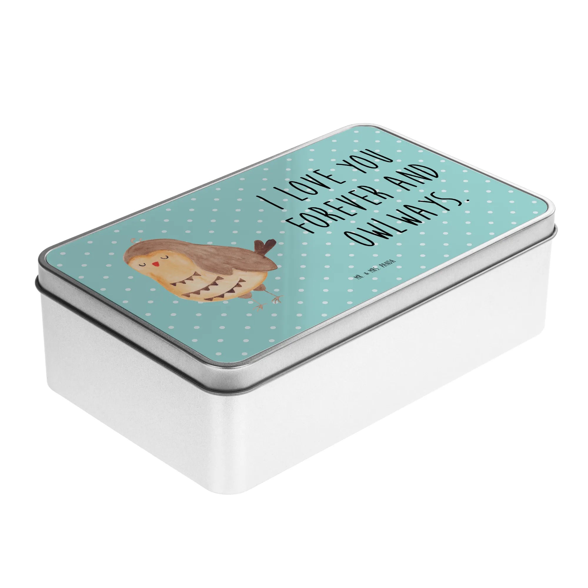 Die elegante rechteckige Metalldose von Mr. & Mrs. Panda ist einfach fantastisch! Sie misst 187 mm x 125 mm x 36 mm und wiegt lediglich 181 g. Mit ihren bezaubernden Designs und originellen Sprüchen eignet sich diese Dose ideal zur Aufbewahrung von Keksen, kleinen Geschenken oder Erinnerungsstücken. Hergestellt aus robustem Metall, ist sie stabil und langlebig. Die glänzende Oberfläche verleiht der Dose einen luxuriösen Touch, der das Verpacken von Geschenken zu einem besonderen Erlebnis macht. Diese nachhaltige Geschenkbox ist nicht nur praktisch, sondern auch umweltfreundlich. Pflege sie am besten durch Handspülung, um die Farben frisch zu halten und den Glanz zu bewahren.