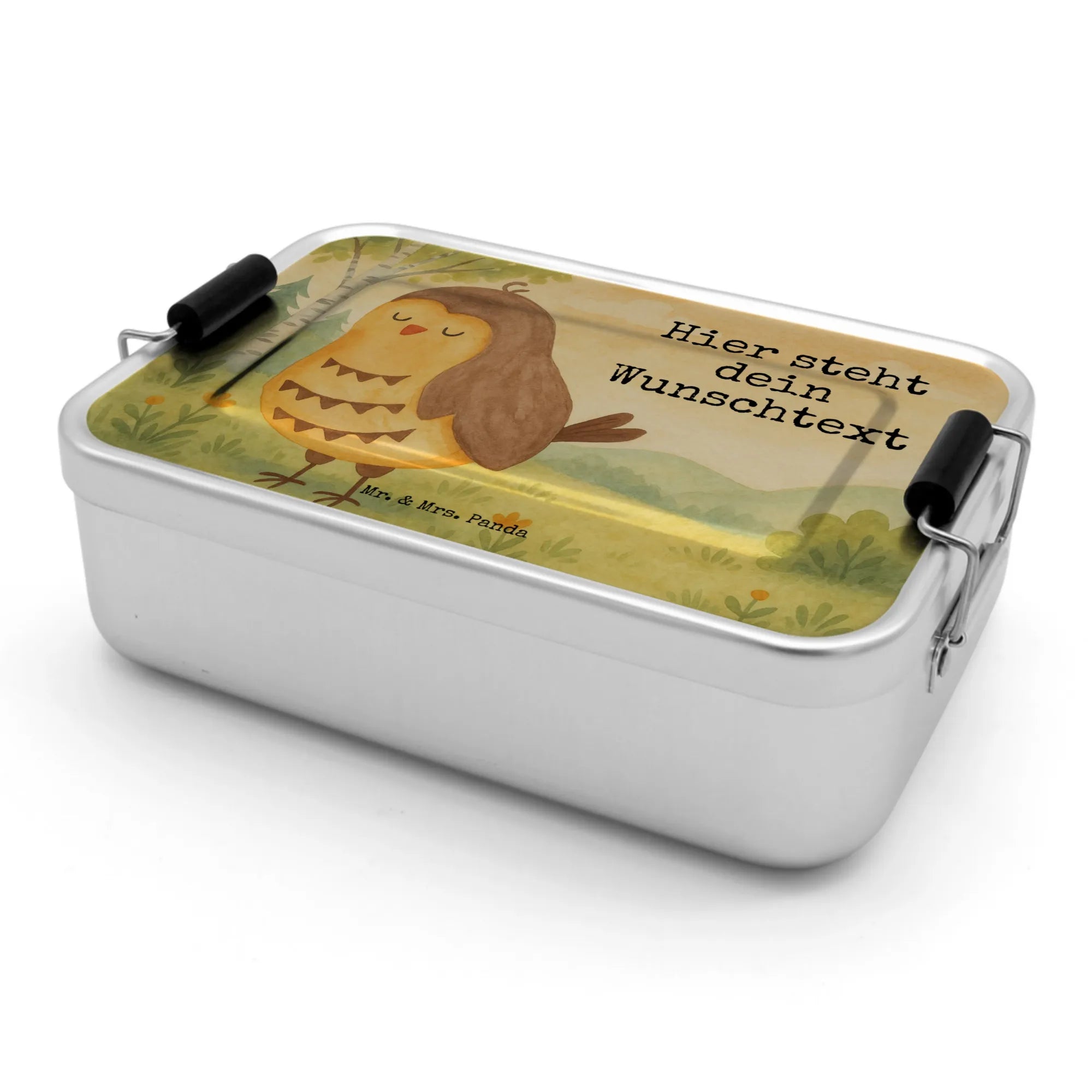 Personalisierte Metall Brotdose Eule Zufrieden Design