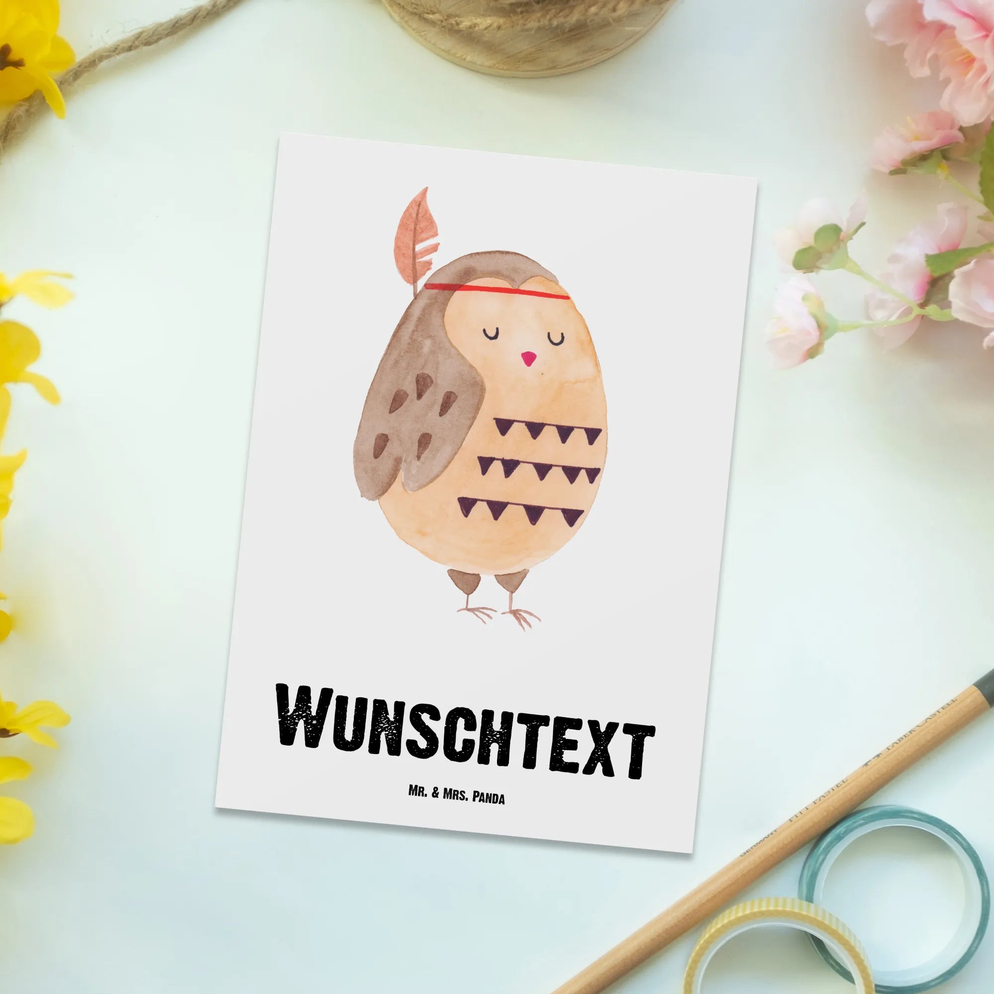 Personalisierte Postkarte „Eule Federschmuck“ – Ein Gruß mit Herz und Abenteuergeist