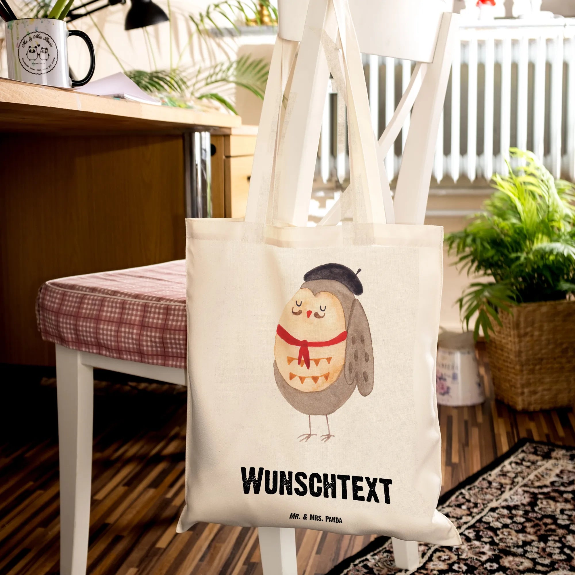 Personalisierte Tragetasche Eule Französisch – Mr. & Mrs. Panda