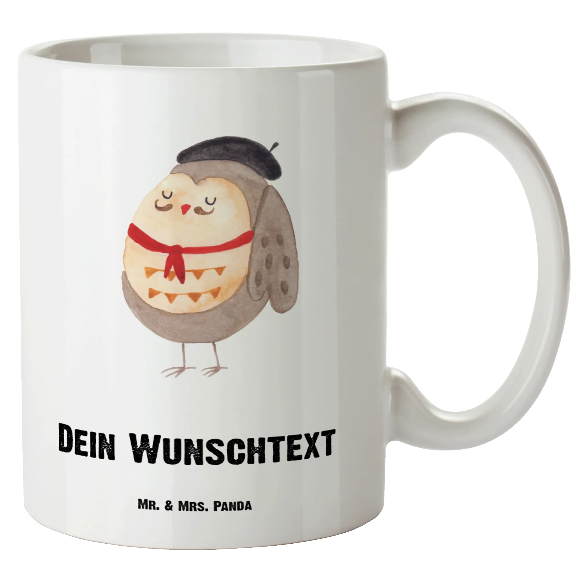 Die personalisierte XL Tasse Eule Französisch von Mr. & Mrs. Panda ist das perfekte Geschenk für Eulenliebhaber und Kaffeetrinker! Mit ihrem niedlichen Motiv, das eine charmante Eule im französischen Look zeigt, bringt diese Tasse einen Hauch von Frankreich in Deinen Alltag.