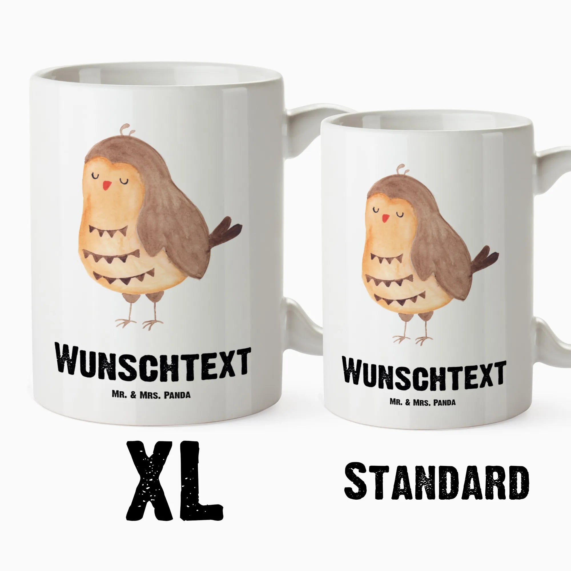 Personalisierte XL Tasse Eule Zufrieden – Mr. & Mrs. Panda