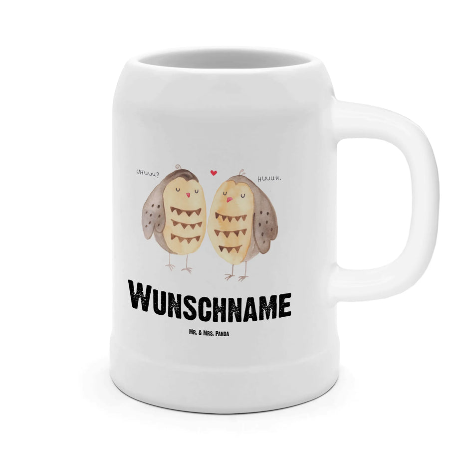 Owl you need is love. Unser personalisierter Bierkrug "Eule Liebe" aus der Eulen-Kollektion von Mr. & Mrs. Panda vereint Romantik, Humor und Gemütlichkeit. Die beiden verliebten Eulen, liebevoll von Mrs. Panda aquarelliert, sitzen gemeinsam auf einem Ast und sagen mehr als tausend Worte. Ideal als personalisiertes Geschenk für Hochzeit, Jahrestag, Geburtstag oder als zünftiger Maßkrug fürs Oktoberfest. 🍻