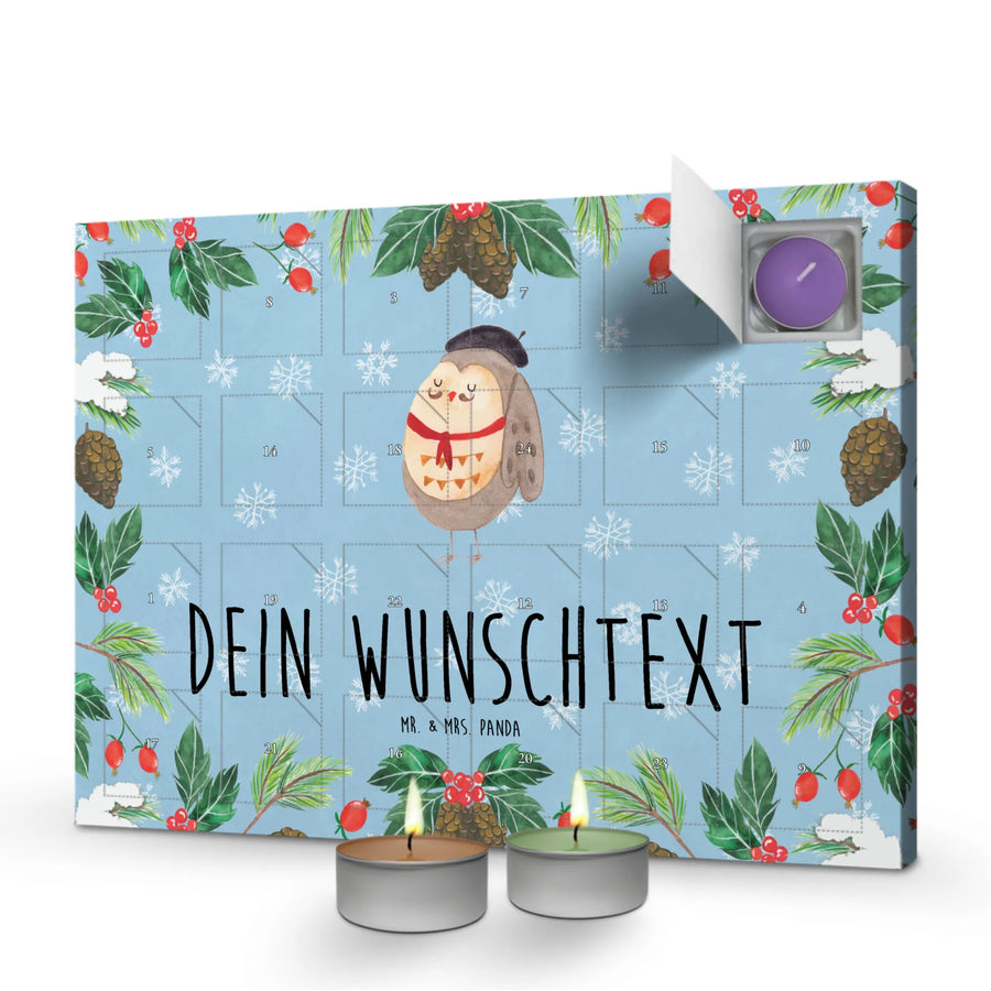 Personalisierter Duftkerzen Adventskalender Eule Frankreich - Eisblau