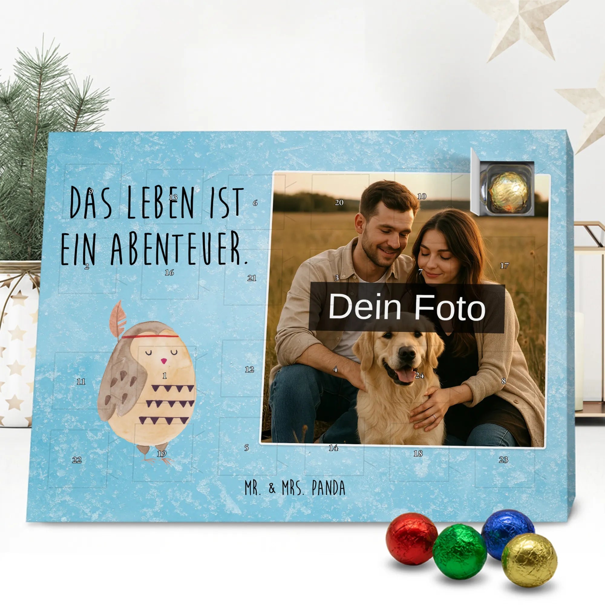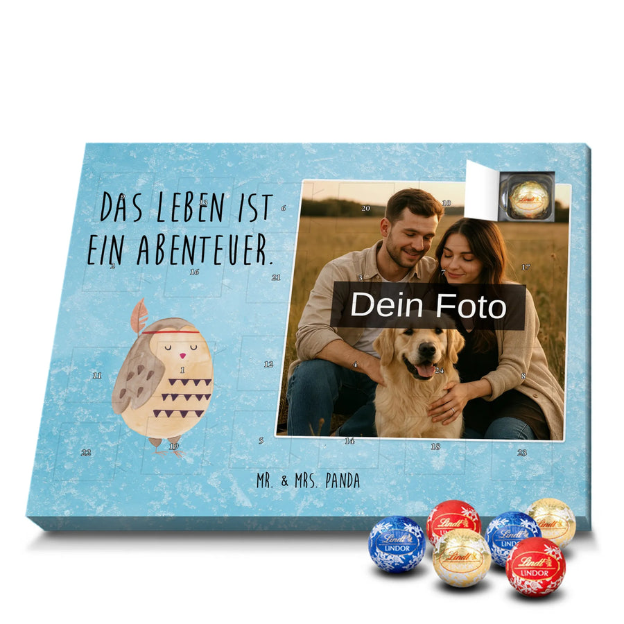 Personalisierter Schoko Foto Adventskalender Eule Federschmuck - Lindt LINDOR - Eisblau