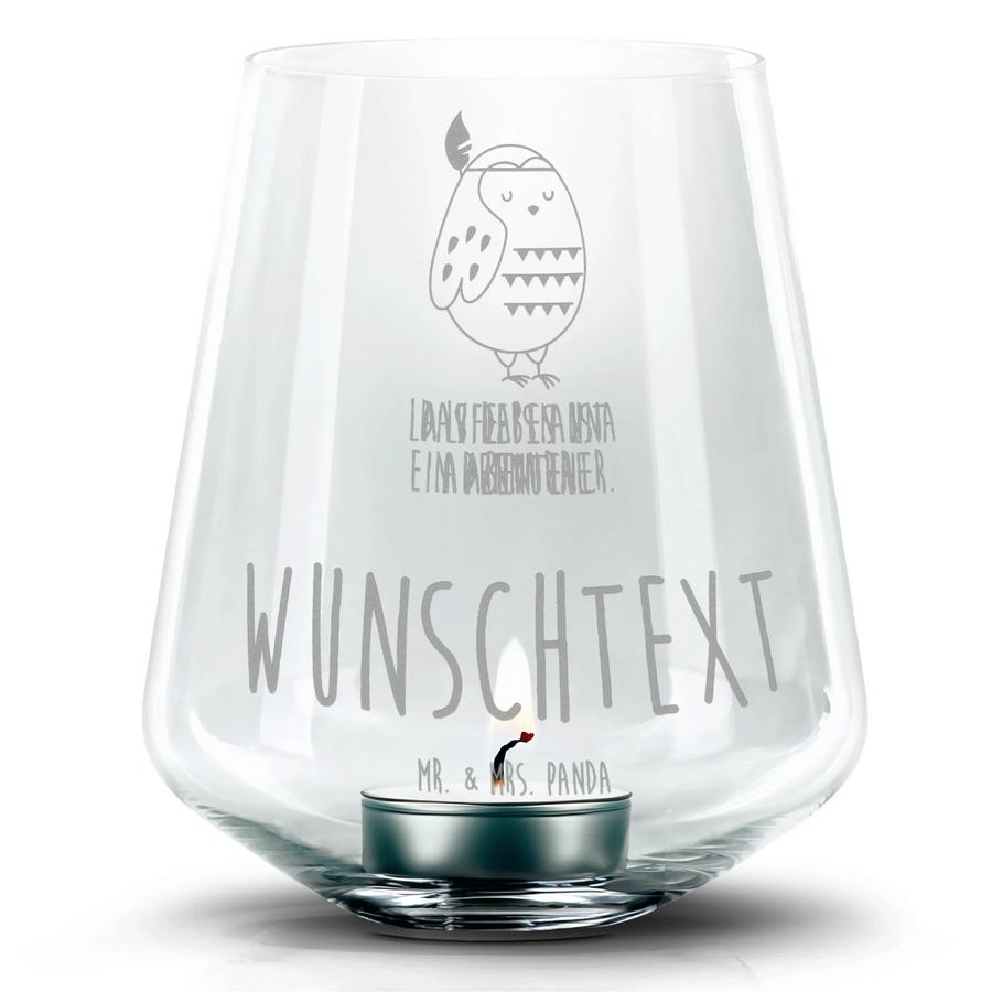 Personalisiertes Gravur Windlicht Eule Federschmuck