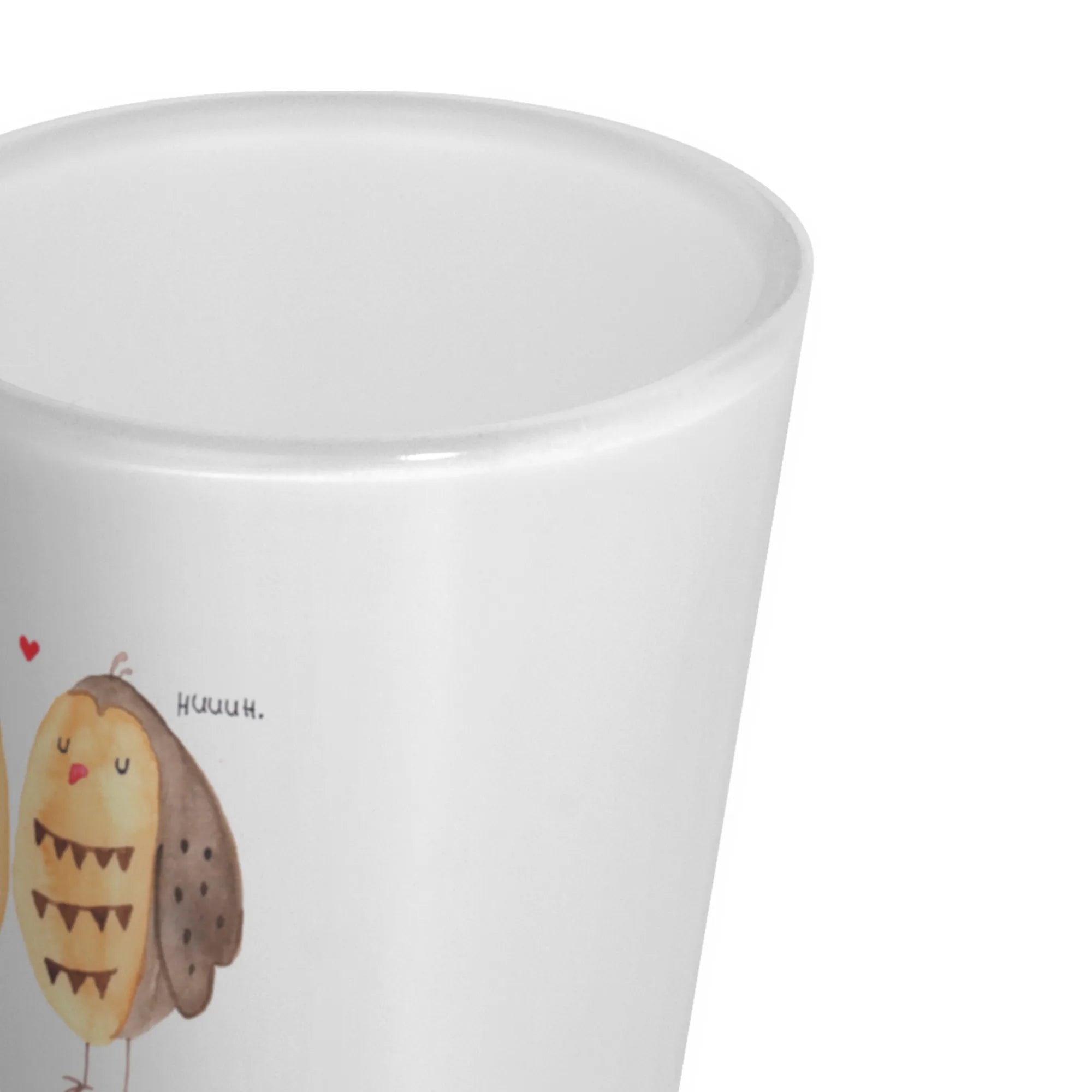 Das personalisierte Schnapsglas mit dem zauberhaften Motiv "Eule Liebe" von Mr. & Mrs. Panda ist das perfekte Geschenk für all jene, die das Besondere lieben! Ob zu Hochzeiten, als lustiges Geschenk für die besten Freunde oder als liebevolle Überraschung für die Freundin – dieses Schnapsglas wird garantiert Herzen höher schlagen lassen. Das süße Motiv mit den verliebten Eulen symbolisiert Liebe und Verbundenheit und zeigt, dass 'Owl you need is love'.