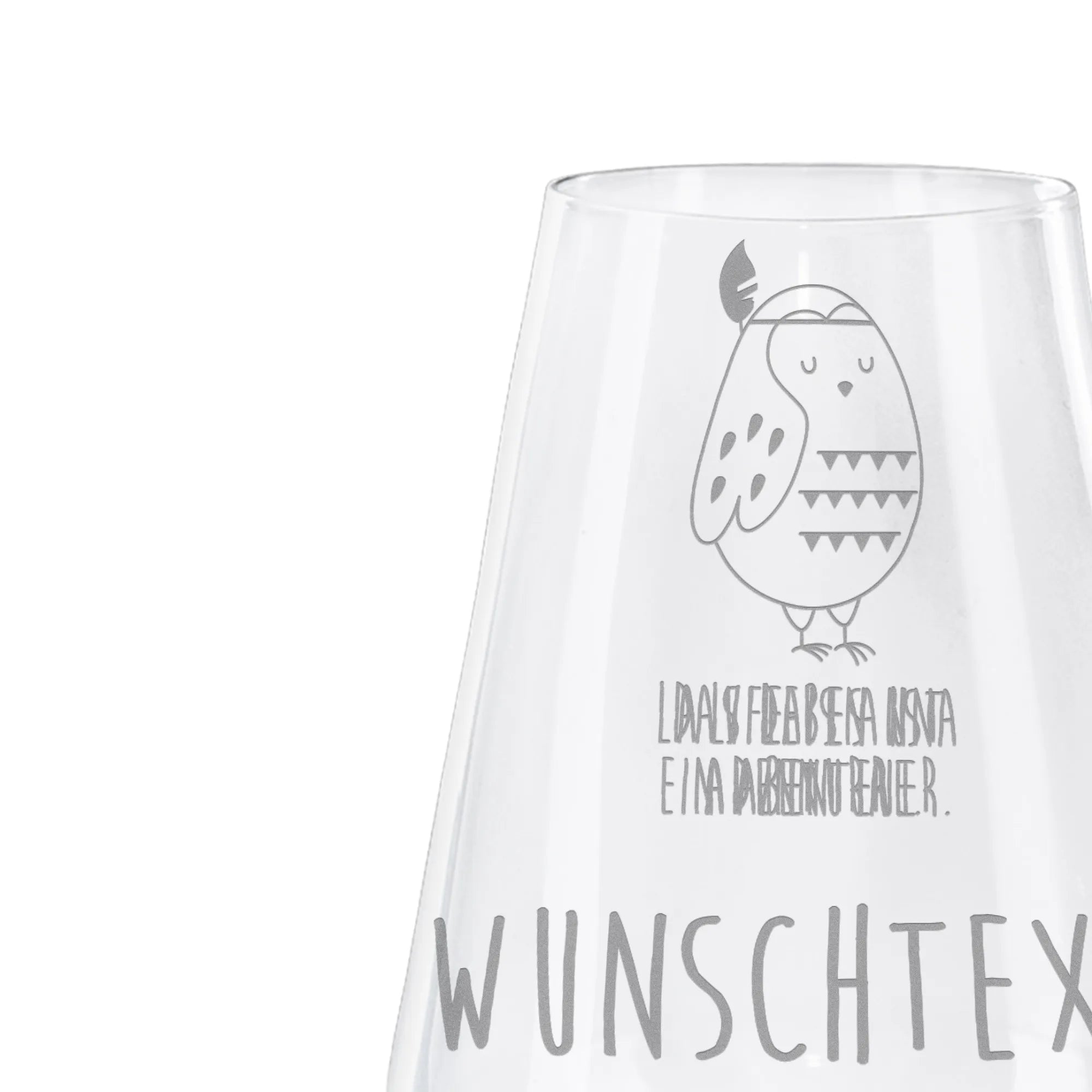 Personalisiertes Weißwein Glas Eule Federschmuck