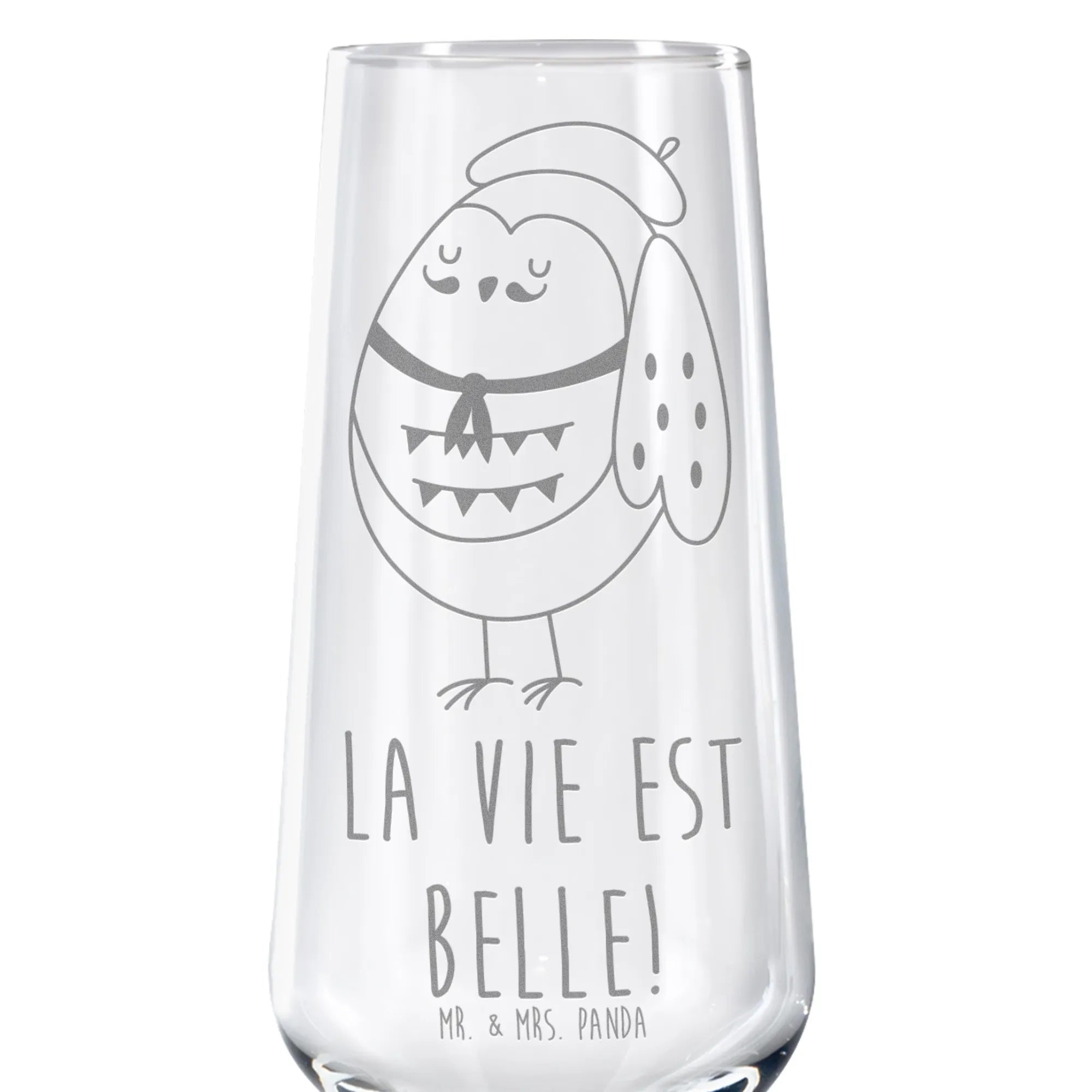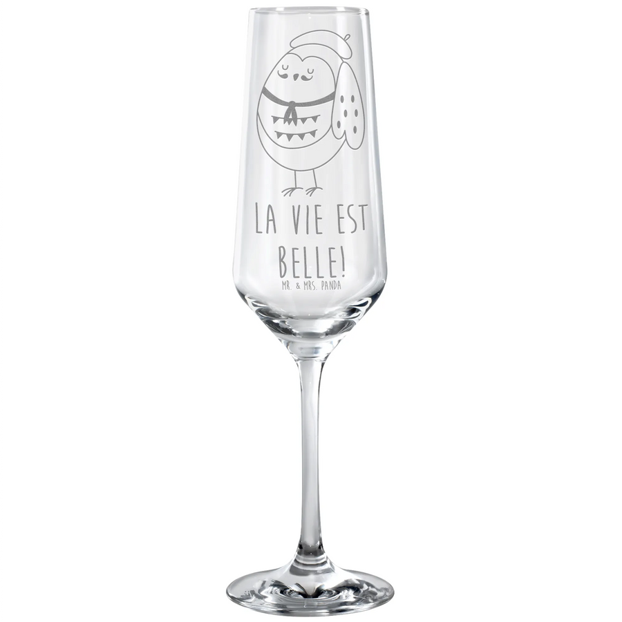 Sektglas Eule Französisch - mit Spruch