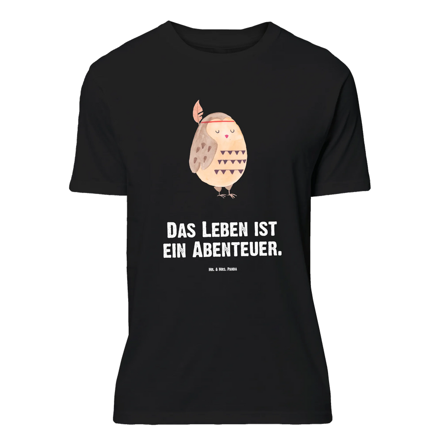 Unser Größe S T-Shirt mit dem liebevollen Motiv „Eule Federschmuck" aus der Eulen-Kollektion ist eine zauberhafte Kombination aus Humor, Stil und Botschaft. Die handgezeichnete Eule von Mrs. Panda trägt einen hübschen Federschmuck und wird begleitet vom Spruch „Das Leben ist ein Abenteuer." – ein fröhlicher Reisespruch, der zum Träumen und Aufbrechen einlädt.
