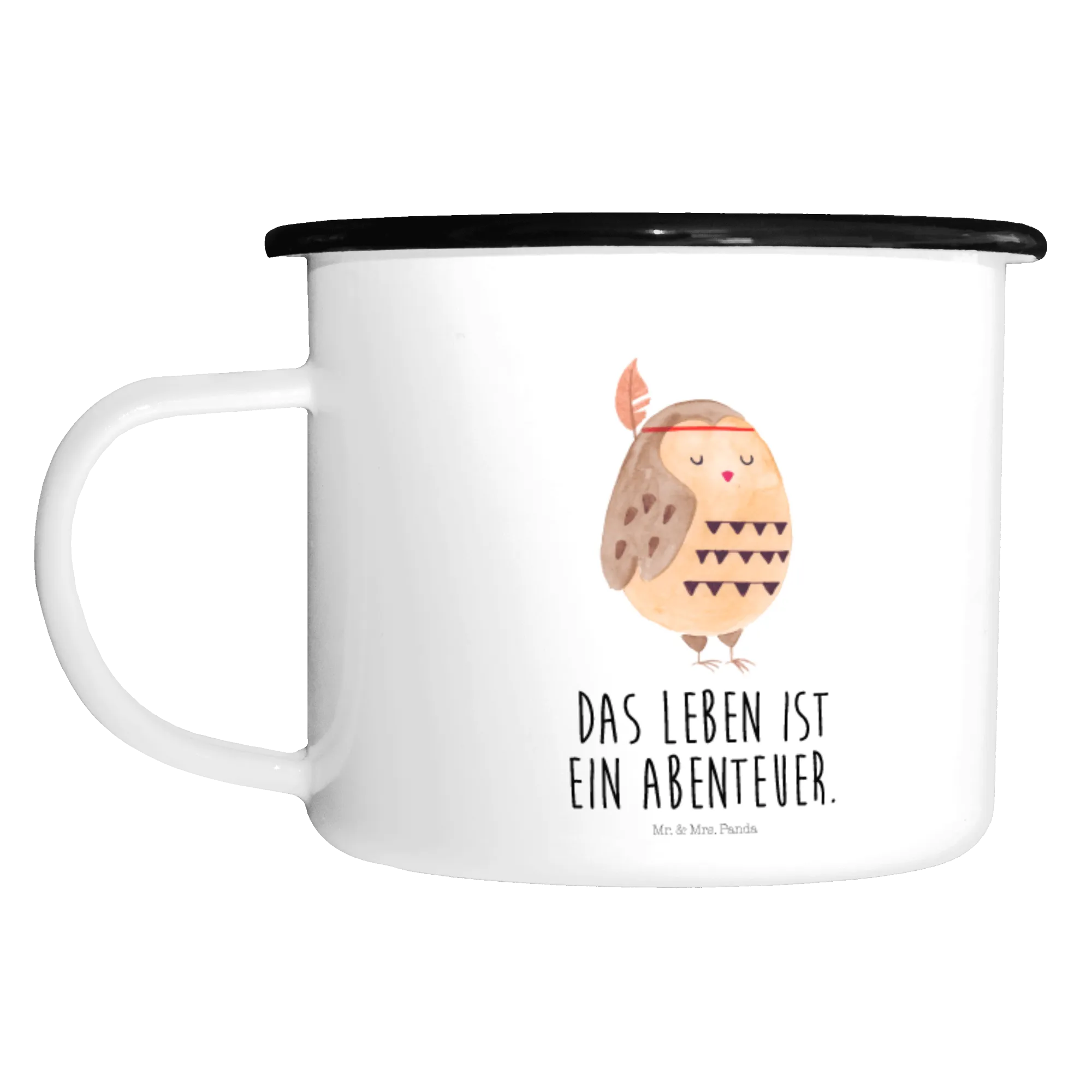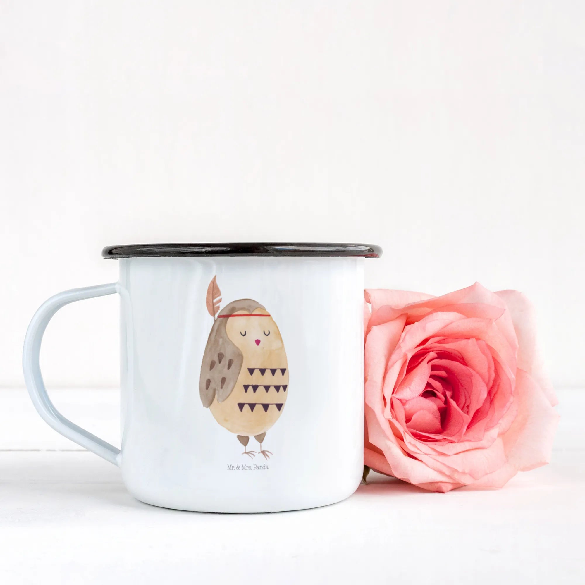 XL Emaille Tasse Eule Federschmuck - mit Spruch