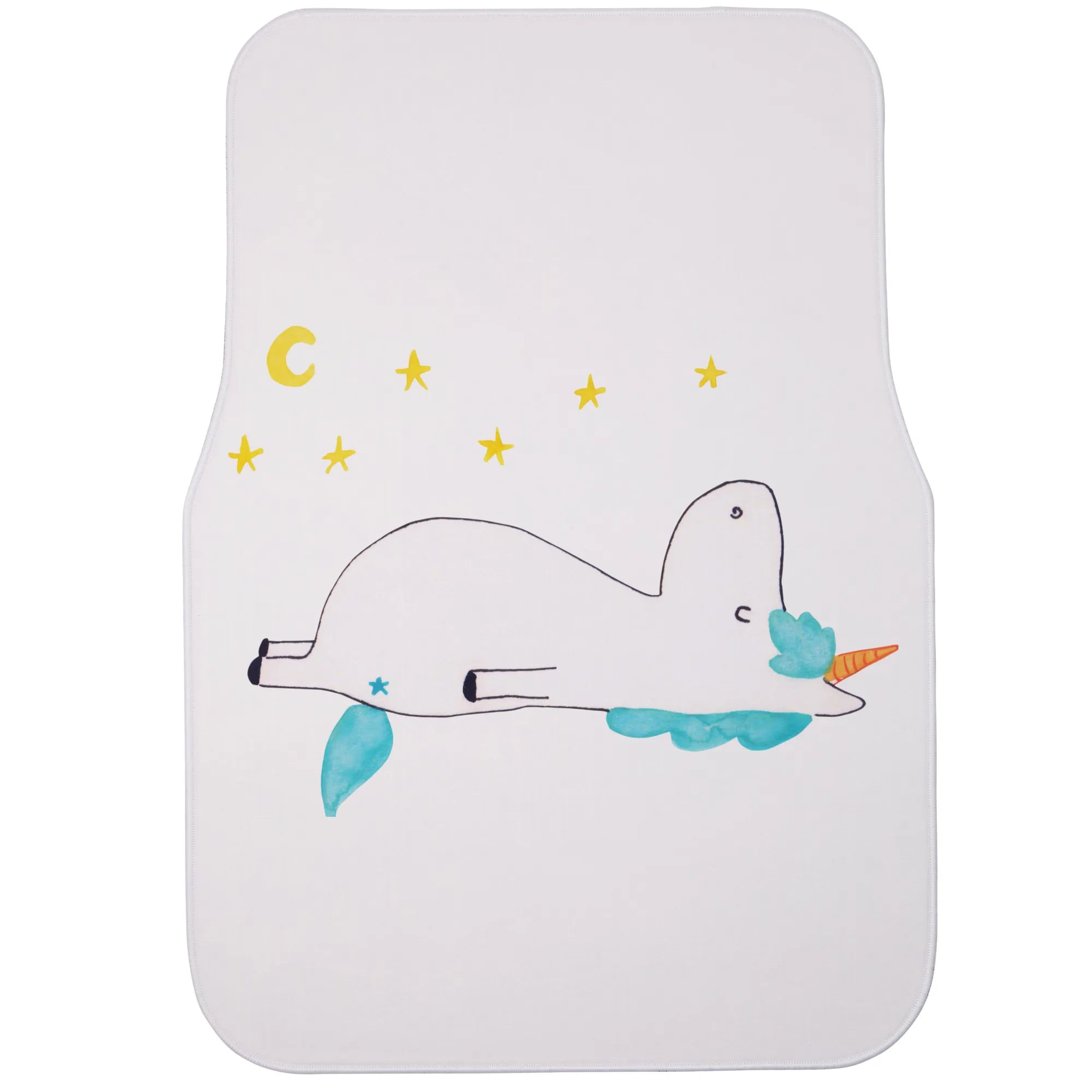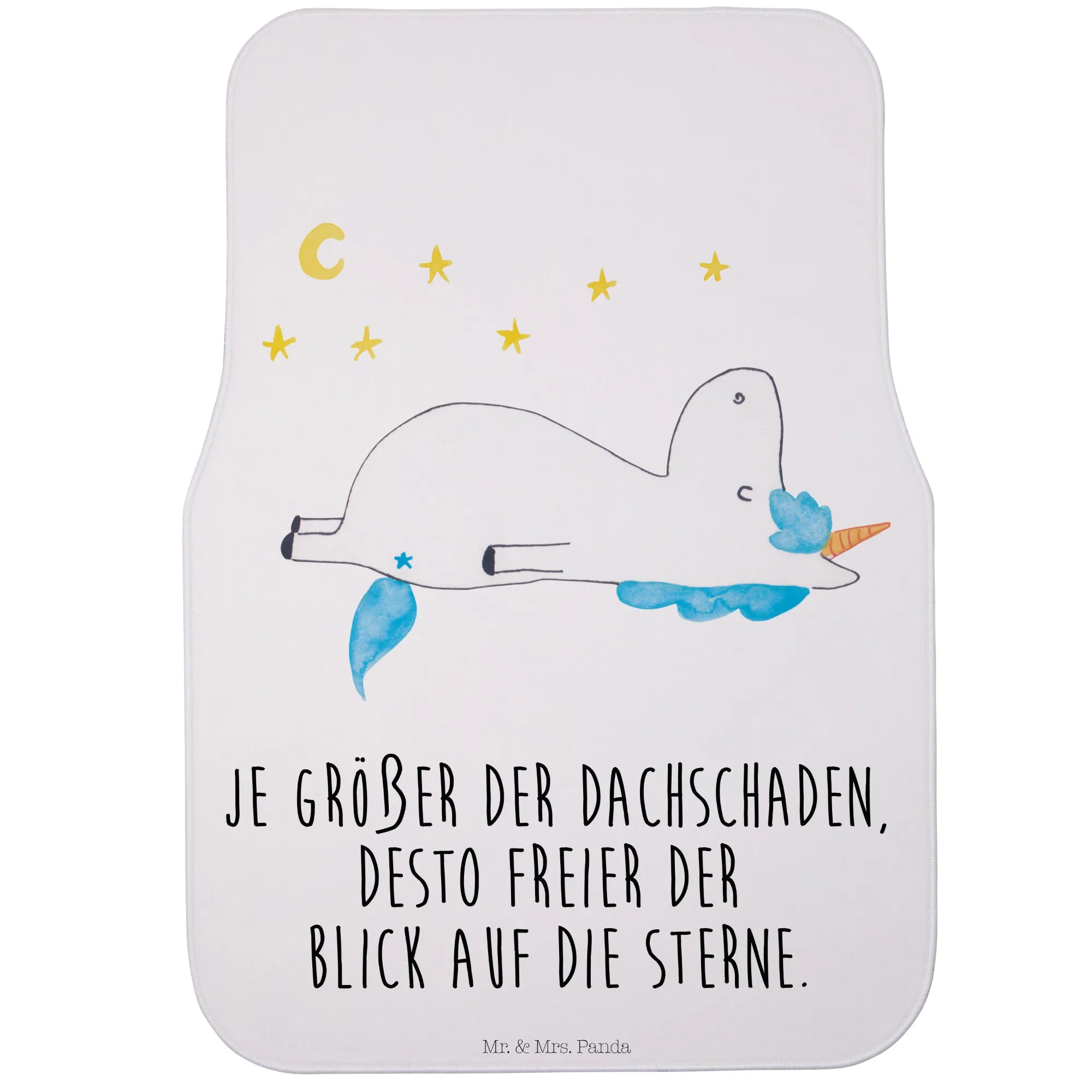 Das süße Einhorn, das mit einem verträumten Blick den Sternenhimmel betrachtet, bringt ein bisschen Magie und Freude in deinen Alltag. Diese Fußmatte schützt deinen Wagen optimal vor Schmutz, Nässe und alltäglicher Abnutzung und lässt dabei dein Fahrzeug gleichzeitig in neuem Glanz erstrahlen.