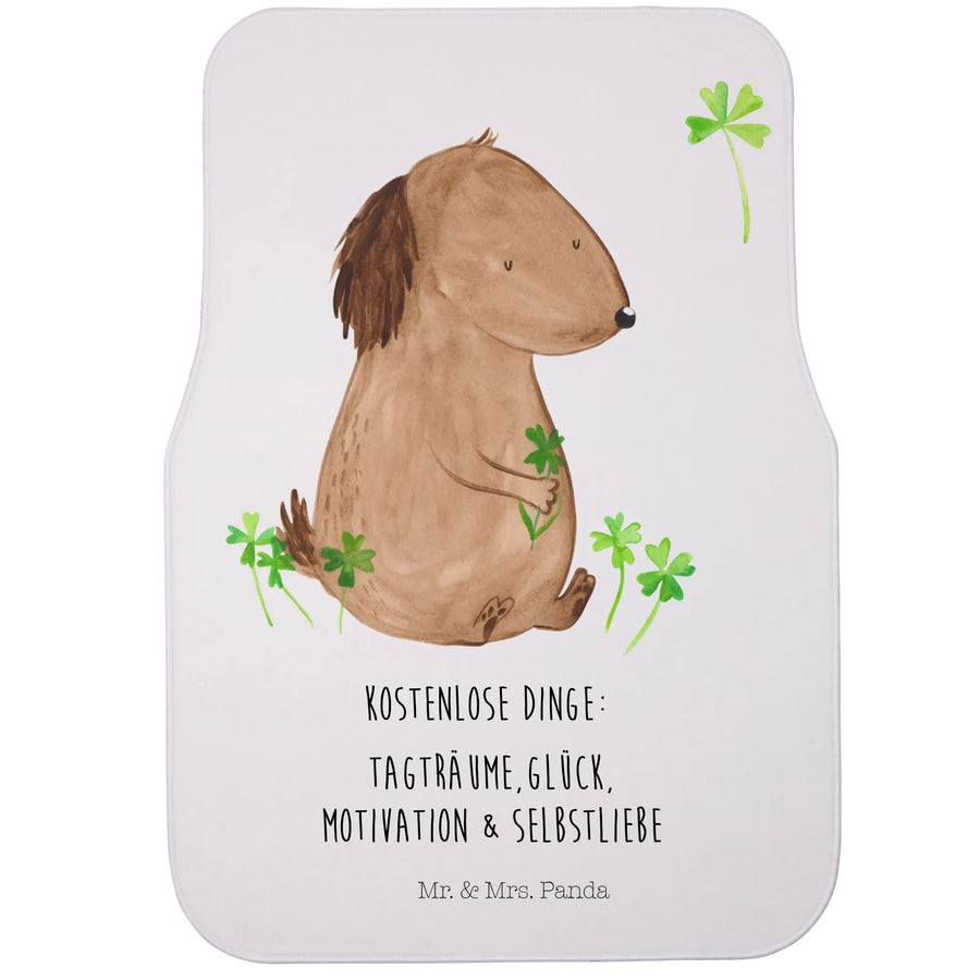 Fahrer Autofußmatte Hund Kleeblatt - mit Spruch - Weiß