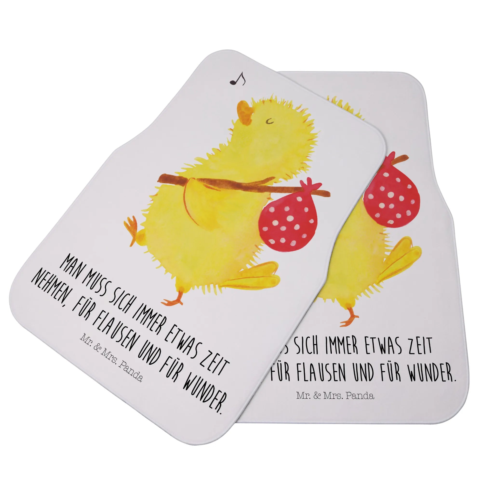 Diese matte ist nicht nur ein praktisches Accessoire für jedes Auto, sondern bringt auch ein Stück Frühlingsgefühle direkt in den Fahrzeuginnenraum. Das niedliche Küken mit seinem kleinen Beutel erinnert uns daran, dass wir uns immer etwas Zeit für Flausen und Wunder nehmen sollten.