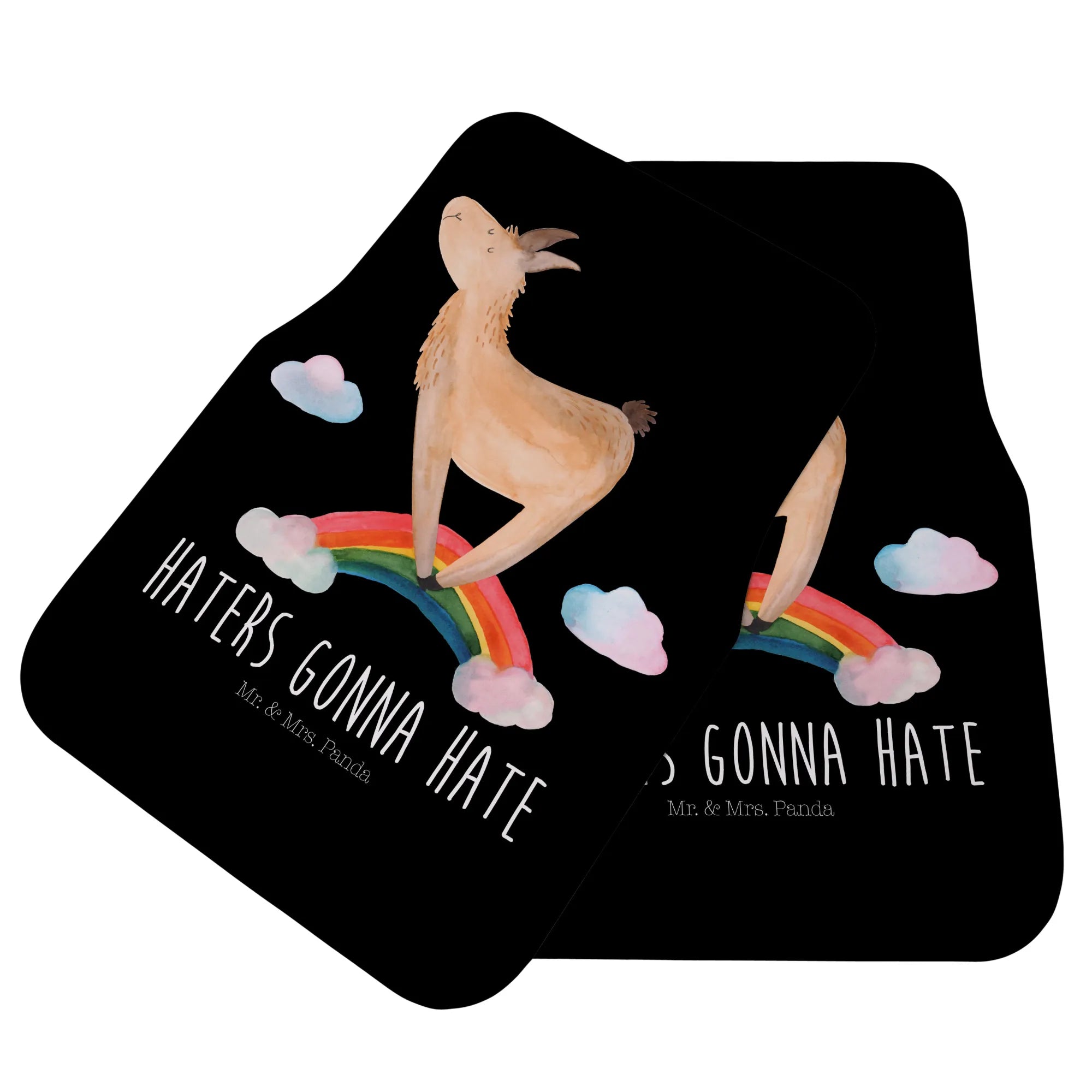 Die Fahrer Autofußmatte mit dem zauberhaften Lama Regenbogen Motiv aus der Lama-Kollektion ist nicht nur ein praktisches Accessoire für dein Auto, sondern auch ein echter Blickfang! Lamas sind für uns bei Mr. & Mrs. Panda die coolsten Tiere der Welt. Sie versprühen eine gewisse Unbeschwertheit und Lebensfreude, die perfekt in dein Fahrzeug passt.