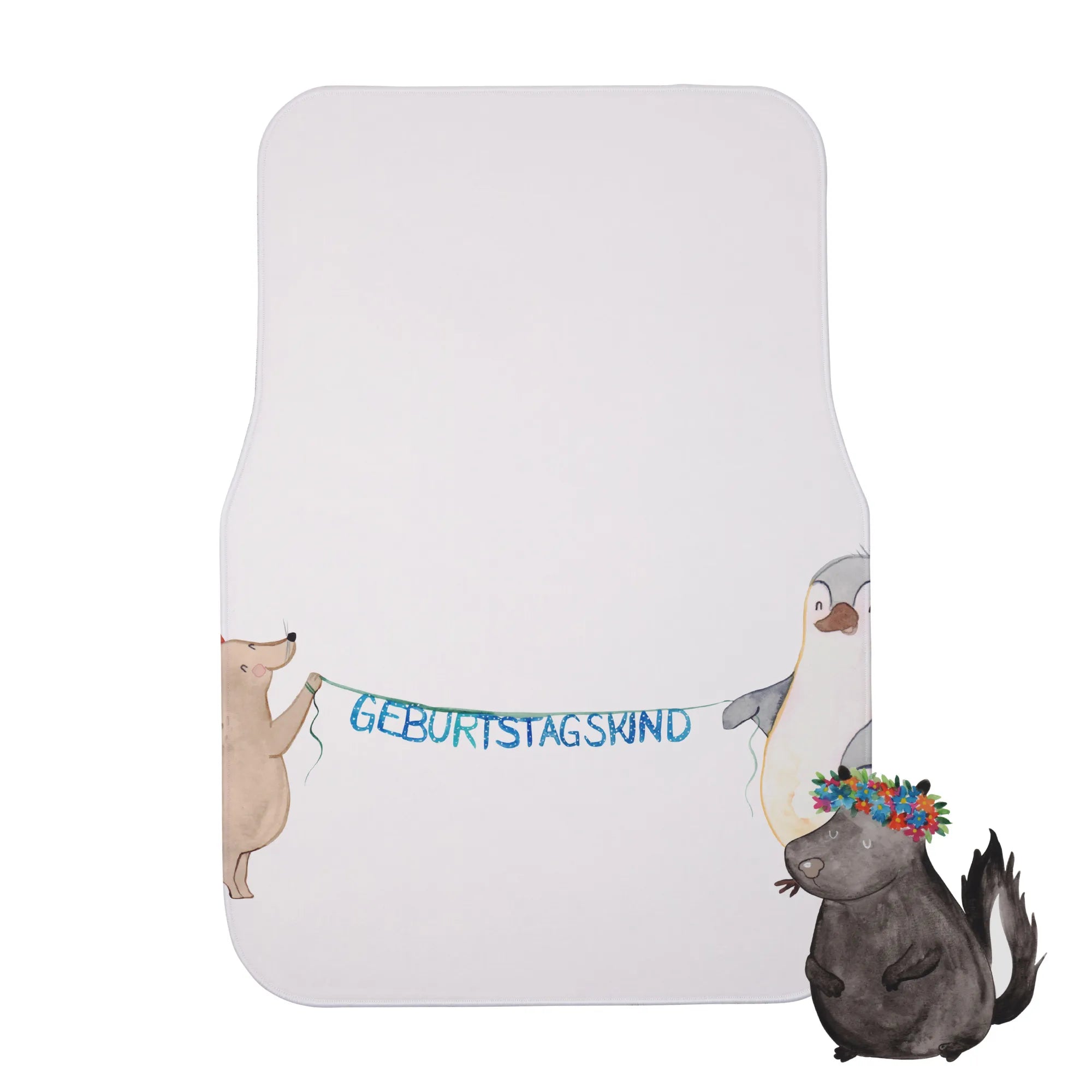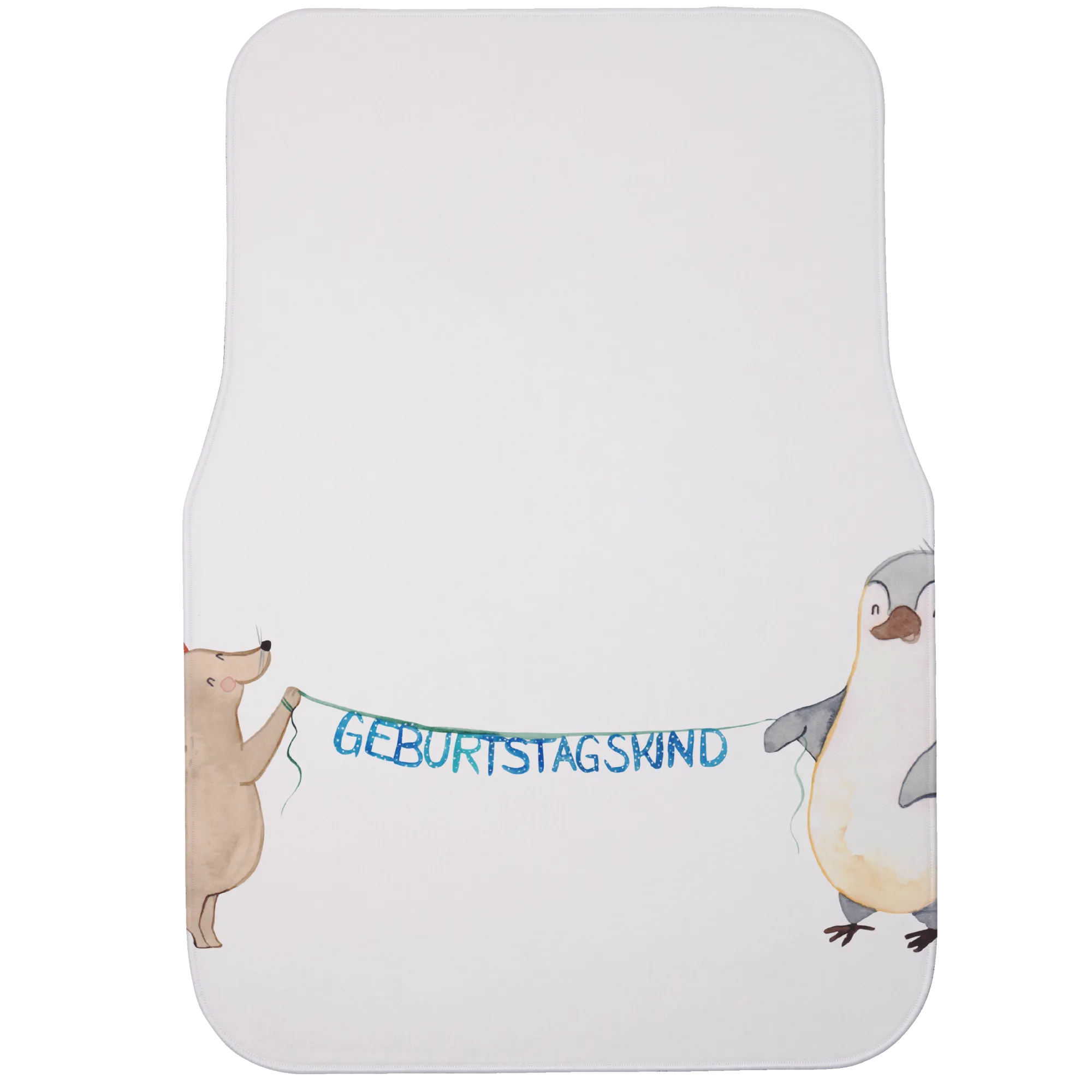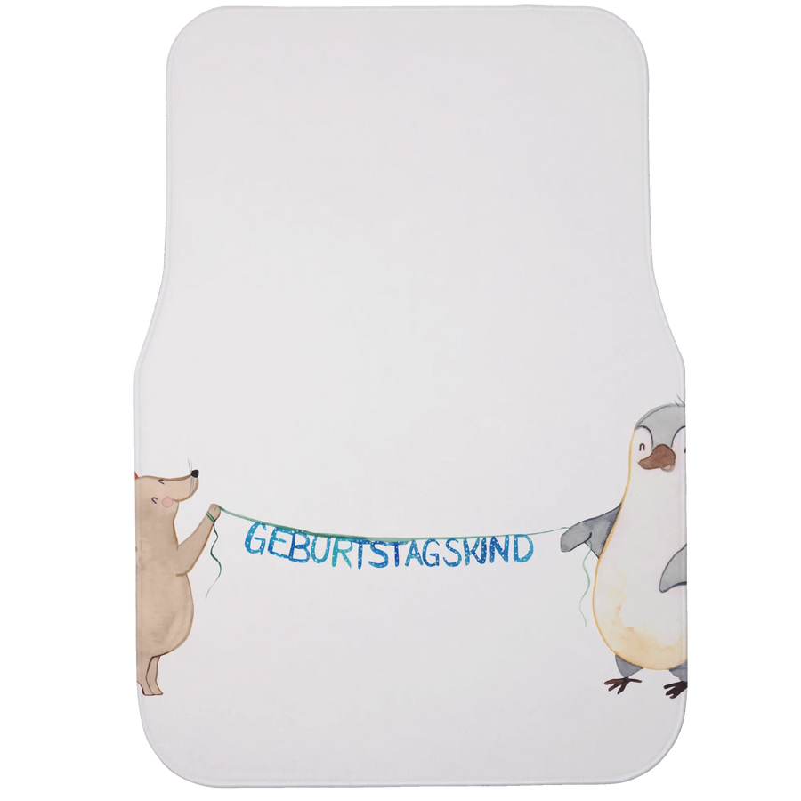 Die Fahrer Autofußmatte Maus Pinguin Geburtstag ist das perfekte Geschenk für alle Geburtstagskindern, die es lieben, ihr Auto stylish und praktisch zugleich zu gestalten. Mit einem charmanten Motiv eines kleinen Pinguins und einer süßen Maus, die gemeinsam eine Girlande halten, bringt diese Schmutzmatte Farbe und Freude in jeden Fahrzeug-Innenraum.