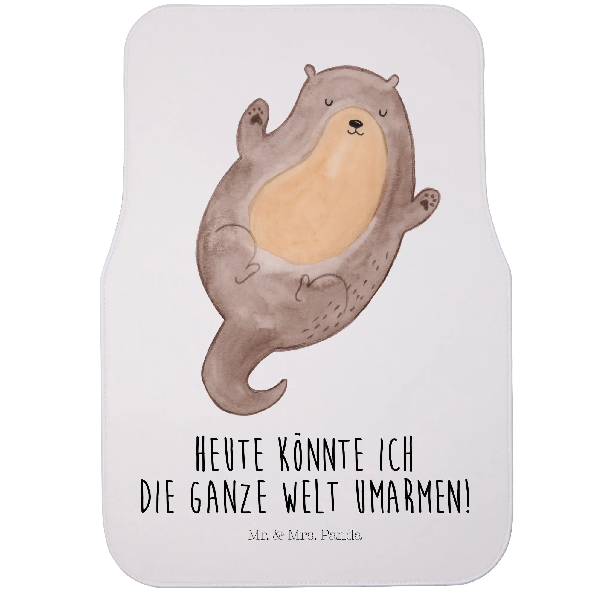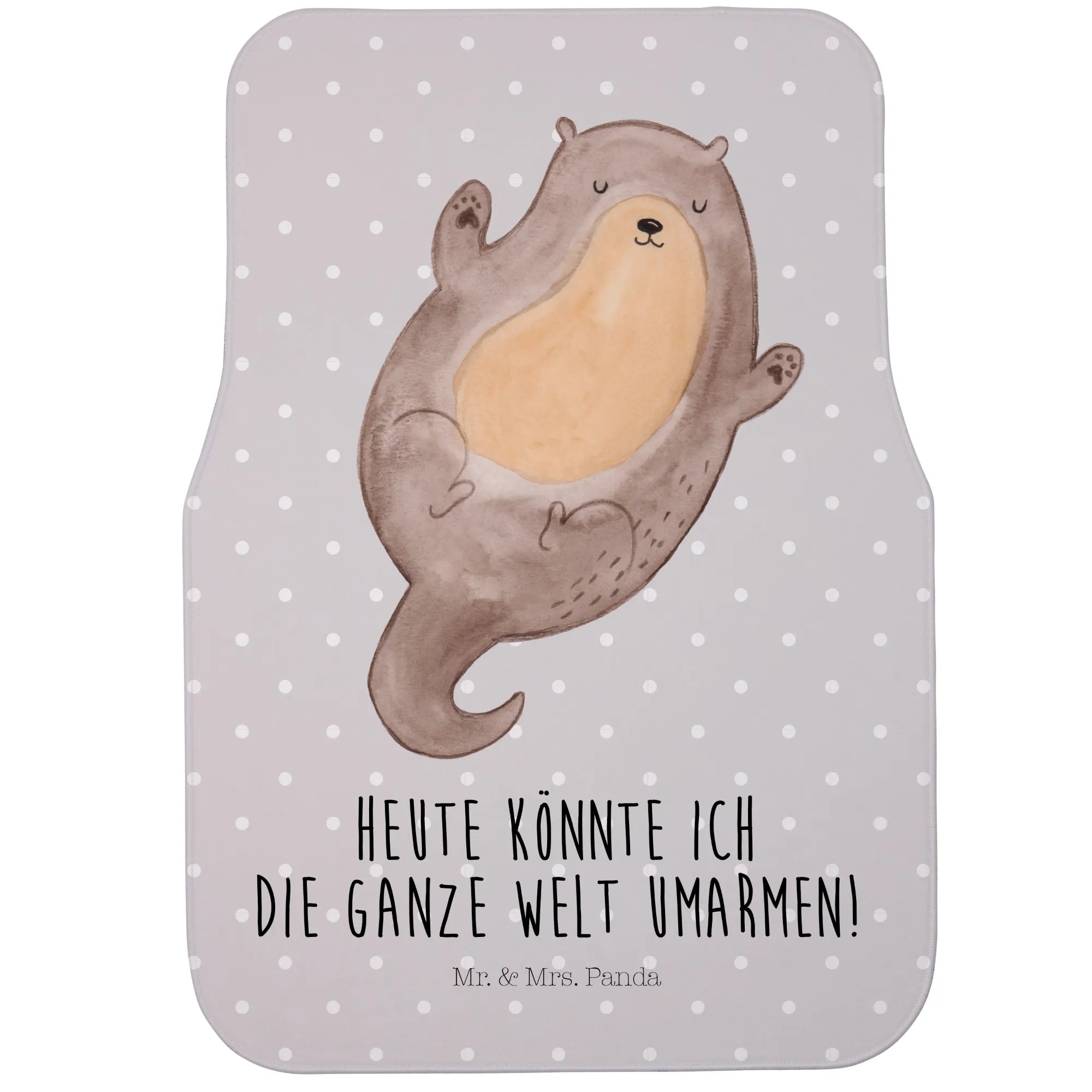 Die Fahrer Autofußmatte "Otter Umarmen" aus der Otter - Kollektion von Mr. & Mrs. Panda ist das perfekte Geschenk für alle, die das Besondere lieben. Ob du ein leidenschaftlicher Autofahrer bist oder einfach nur dein Fahrzeug vor Schmutz und Nässe schützen möchtest, diese Schmutzmatte ist genau das Richtige für dich. Mit dem entzückenden Motiv eines Otters, der auf dem Rücken schwimmt und seine Arme weit ausbreitet, bringt diese Fußmatte Freude in jedes Auto. Der Otter verkörpert Lebensfreude und Unbeschwertheit – genau das, was wir uns manchmal im Alltag wünschen.