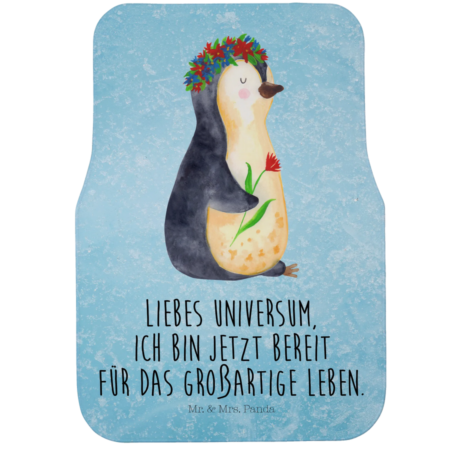Unsere Fahrer Autofußmatte aus der Pinguin - Kollektion von Mr. & Mrs. Panda vereint Herz und Funktion. Das handgezeichnete Motiv zeigt einen niedlichen Pinguin mit Blumenkranz und trägt die lebensfrohe Botschaft: „Liebes Universum, ich bin jetzt bereit für das großartige Leben.“ Ein kleiner Motivationsschub für jeden Tag und ein liebevolles Detail im Innenraum Deines PKW.