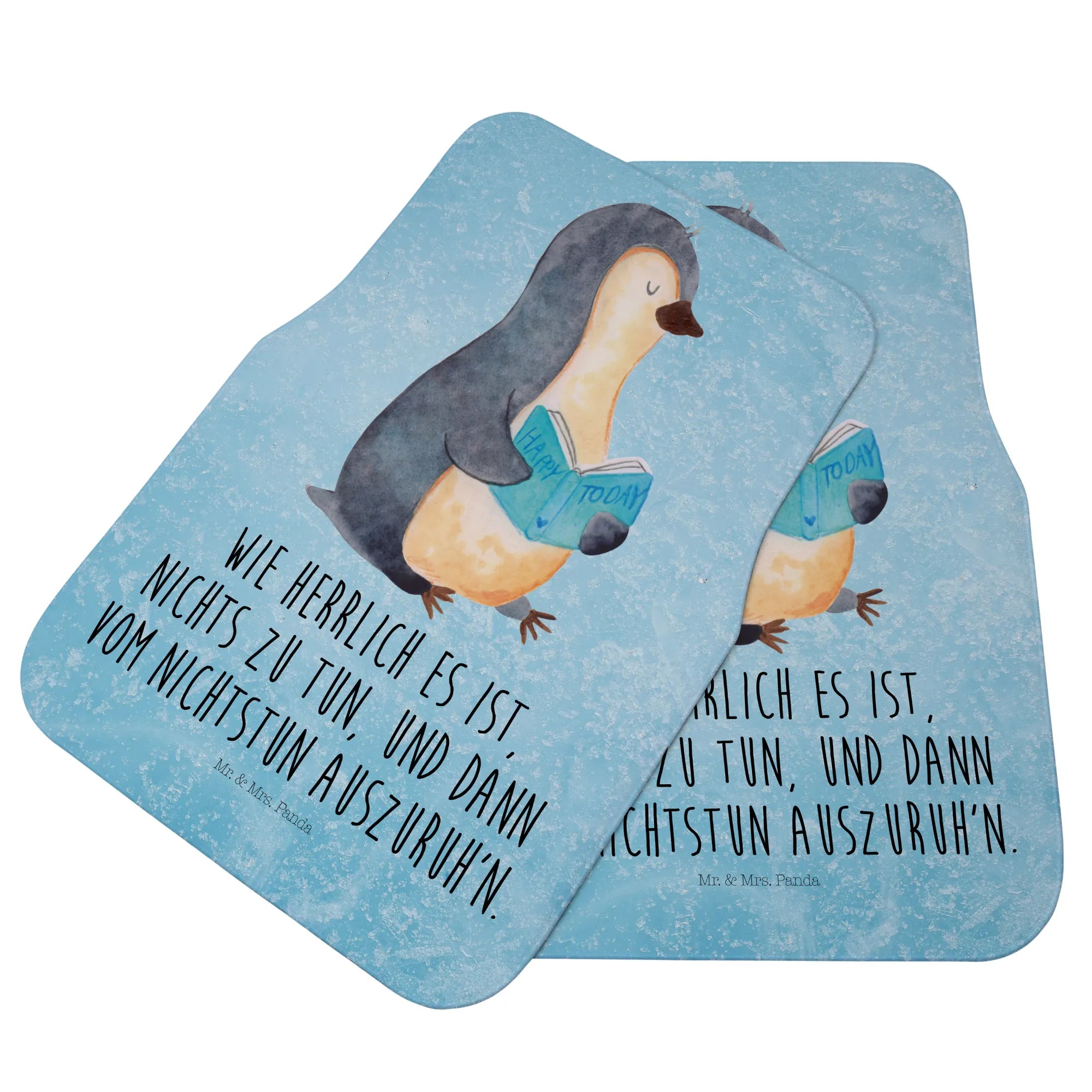Auto-Fußmatte Pinguin Buch - mit Spruch - Eisblau