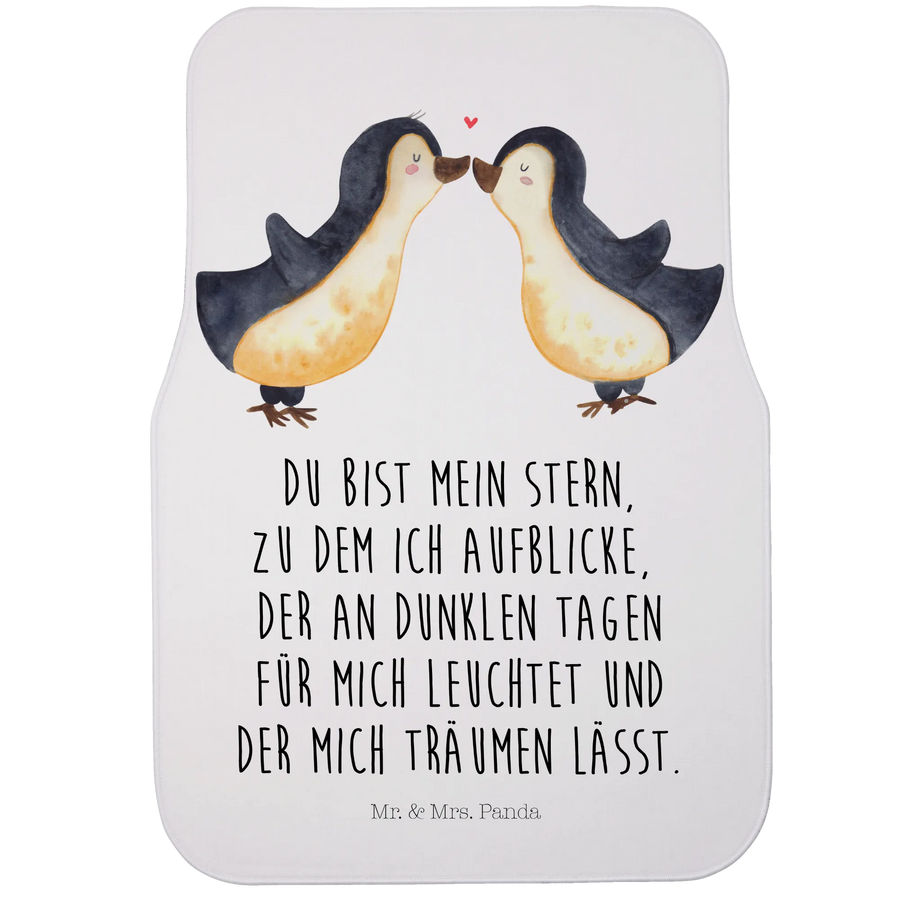 Die Fahrer Autofußmatte "Pinguin Liebe" aus der Kollektion Liebe von Mr. & Mrs. Panda ist das perfekte Geschenk für alle, die eine besondere Verbindung zu ihrem Partner oder ihrer Partnerin haben. Diese liebevoll designte Schmutzmatte für das Auto besticht durch ein süßes Motiv zweier Pinguine, die sich zärtlich aneinander kuscheln. Über ihnen schwebt ein kleines Herz, das die innige Liebe symbolisiert. Mit dem Text "Du bist mein Stern, zu dem ich aufblicke, der an dunklen Tagen für mich leuchtet und der mich träumen lässt." wird diese Fußmatte zu einem einzigartigen Liebesbeweis, der das Herz jedes Pärchens höher schlagen lässt.