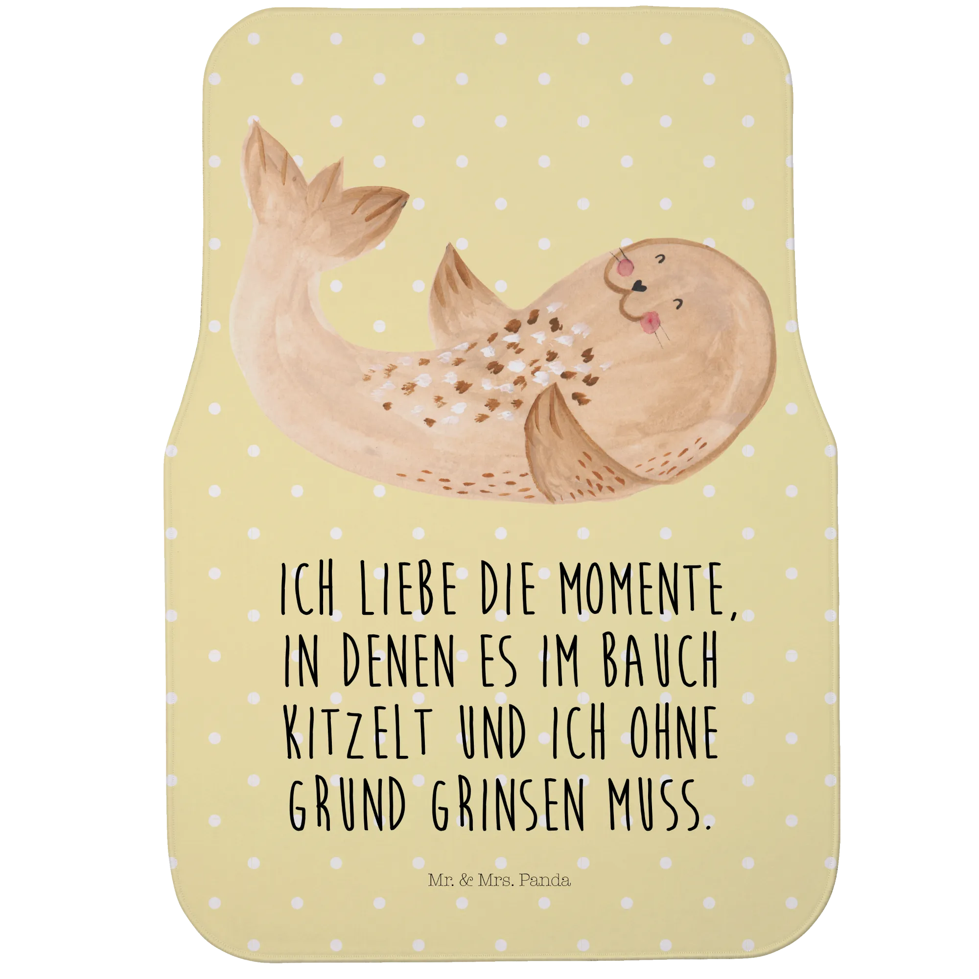 Die perfekte Fahrer Autofußmatte mit dem süßen Motiv "Robbe liegend" aus der einzigartigen Small World Kollektion von Mr. & Mrs. Panda ist nicht nur ein praktischer Schutz für dein Auto, sondern auch ein richtiger Gute-Laune-Macher! Immer wenn du in dein Auto steigst, begrüßt dich die gemütliche Robbe mit ihrem charmanten Lächeln und bringt ein Stück Strand und Meer ins Fahrzeug. Egal, ob du an der Nordsee oder Ostsee neue Abenteuer erlebst, diese Schmutzmatte fürs Auto macht jeden Ausflug noch ein wenig schöner.