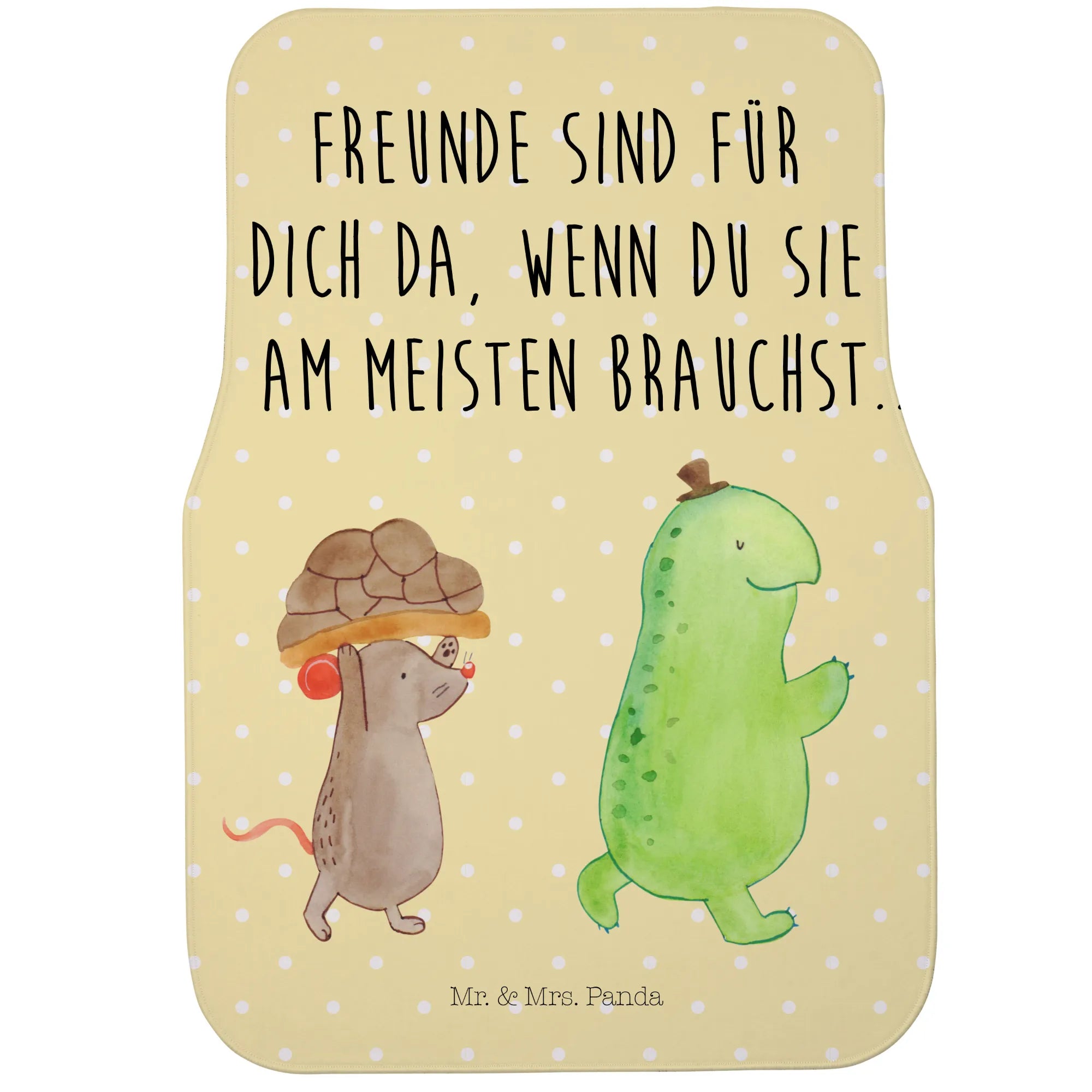 Die Fahrer Autofußmatte mit dem süßen Motiv von der Schildkröte und der Maus ist das perfekte Geschenk für alle Schildkröten- und Tierliebhaber. Sie ist nicht nur funktional, sondern bringt auch eine fröhliche Note in dein Auto. Mit dem schönen Design von Mr. & Mrs. Panda wird jeder Fahrer von dem niedlichen Anblick begeistert sein. Die Schildkröte, die fröhlich voran marschiert, und die kleine Maus, die ihren Schildkrötenpanzer trägt, zaubert jedem ein Lächeln ins Gesicht.