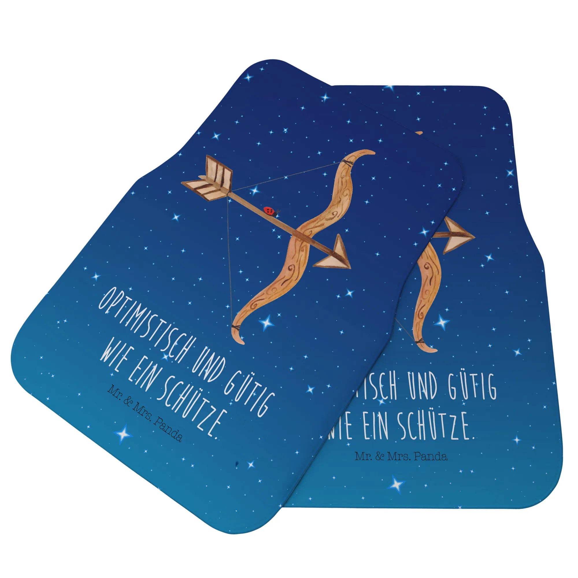 Die Schütze-Kreation aus der liebevollen Sternzeichen Kollektion von Mr. & Mrs. Panda ist handgezeichnet und verspielt. Perfekt geeignet für die Schützen, die im November oder Dezember Geburtstag haben, oder die einfach ihr Sternzeichen lieben. Mit dieser Matten dekorierst du dein Auto auf stilvolle Weise und bewahrst gleichzeitig die Sauberkeit deiner Fahrzeugausstattung.