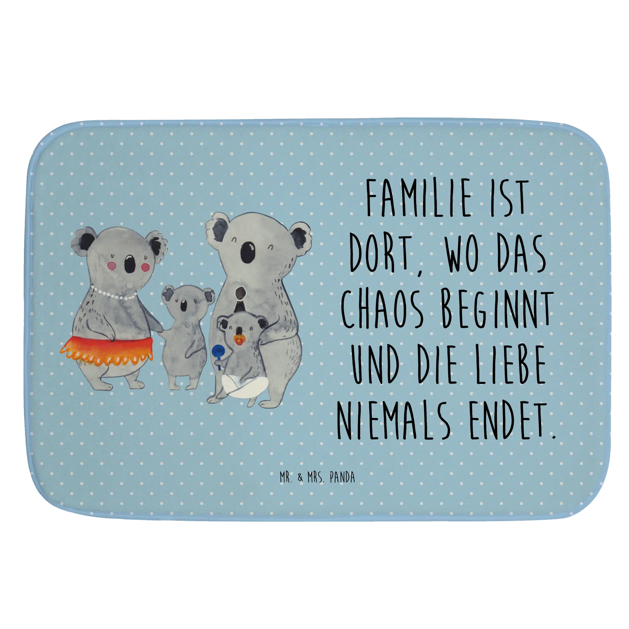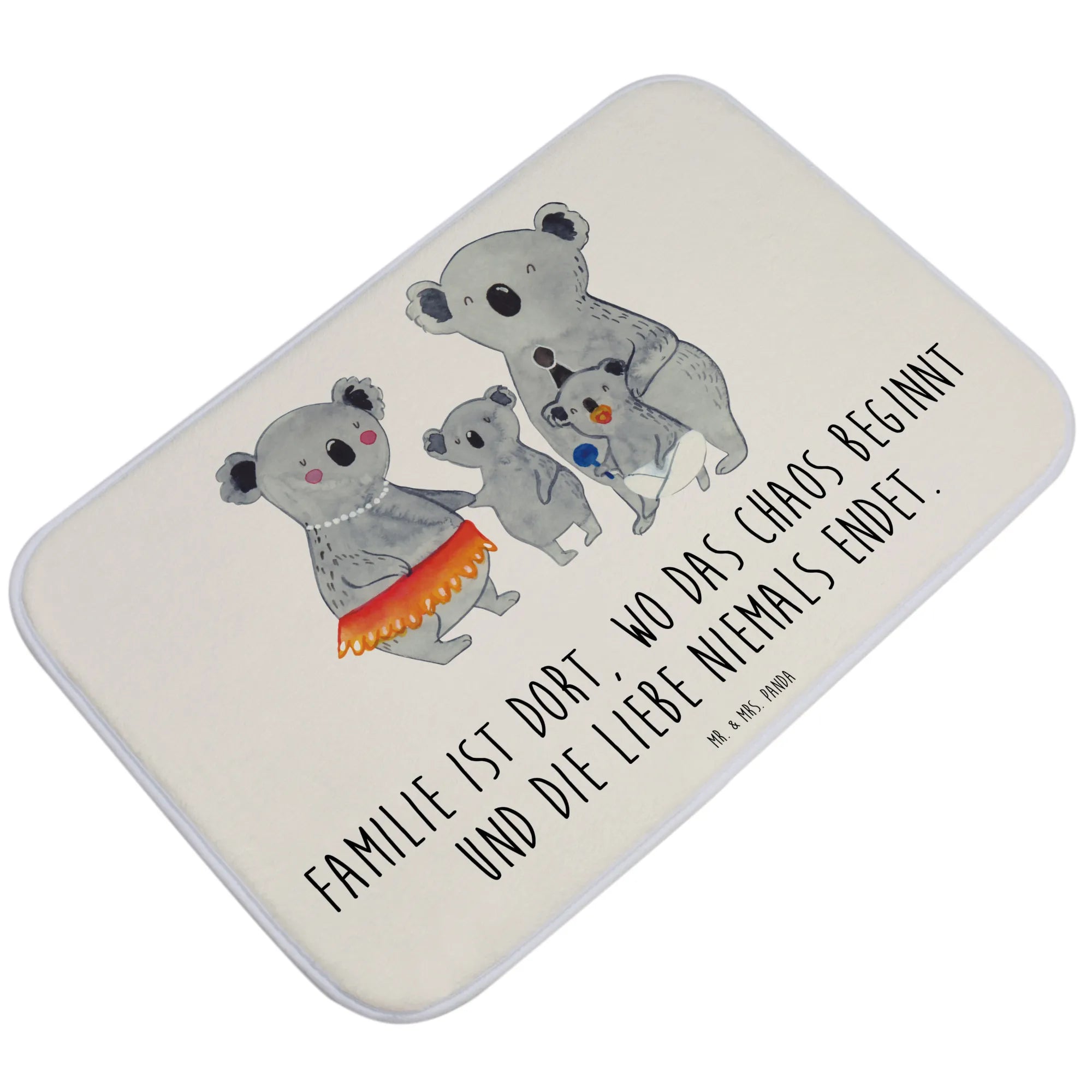 Entdecke die zauberhafte Badematte "Koala Familie" von Mr. & Mrs. Panda! Sie ist der perfekte Begleiter für dein Badezimmer und verleiht dem Raum eine ganz besondere Note. Bedruckt mit einem herzlichen Motiv, das eine liebevolle Koala-Familie zeigt, strahlt diese Badematte nicht nur Gemütlichkeit aus, sondern auch eine Prise Humor. Der Slogan "Familie ist dort, wo das Chaos beginnt und die Liebe niemals endet" bringt zum Ausdruck, was Familie bedeutet – liebevoll, chaotisch und unersetzlich.