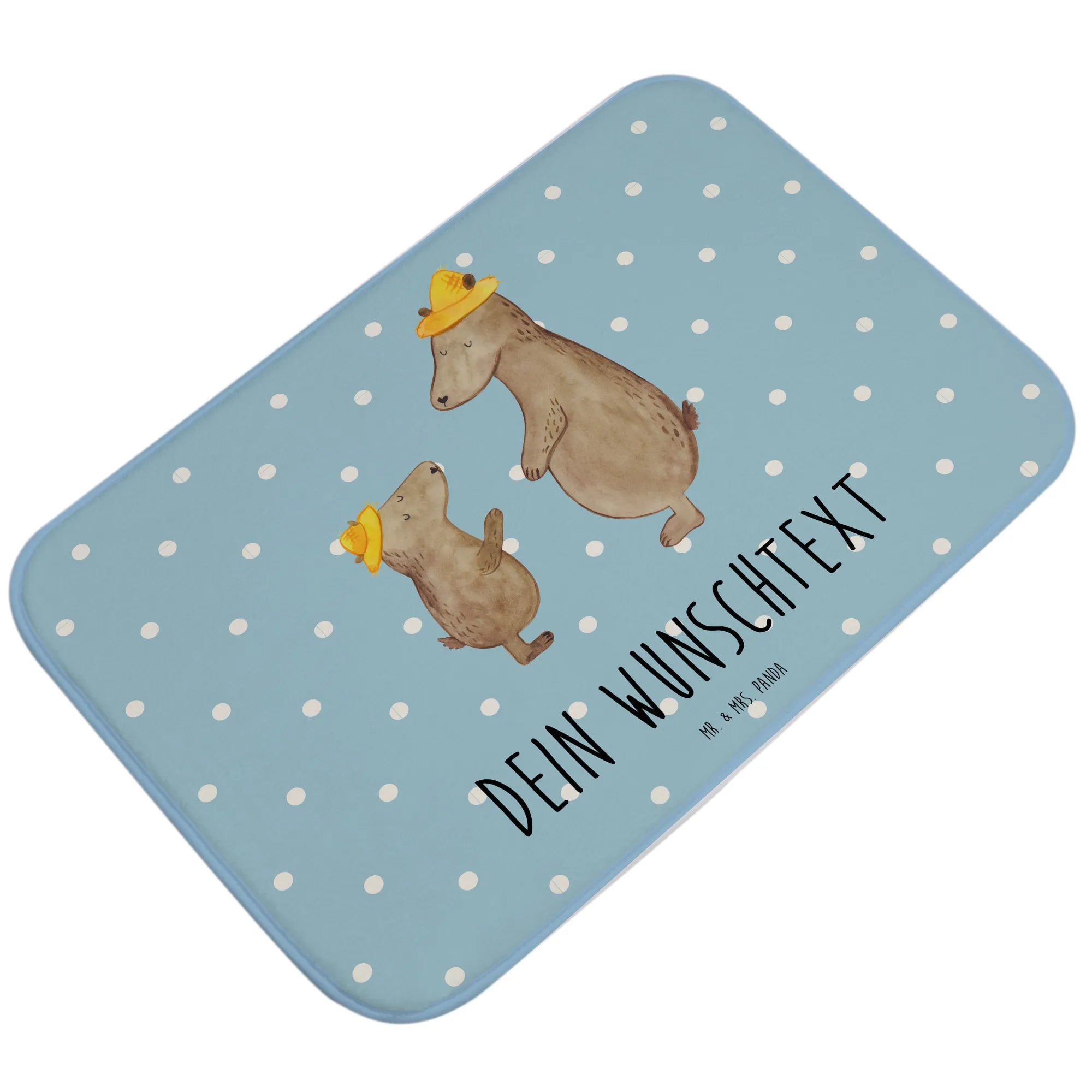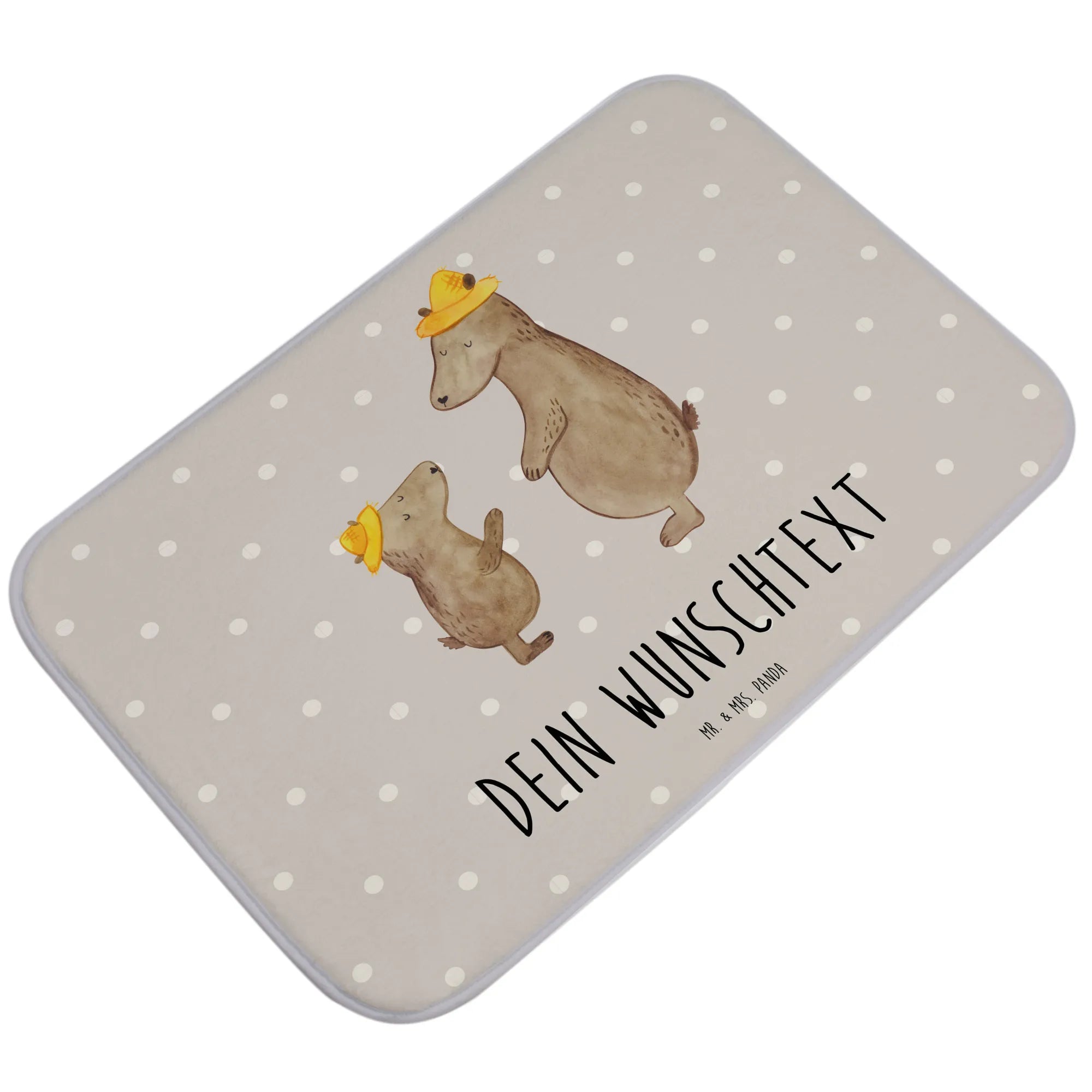 Der personalisierte Badvorleger Bären mit Hut von Mr. & Mrs. Panda ist das perfekte Geschenk für alle, die ihrem Badezimmer einen persönlichen Touch verleihen möchten. Mit einem liebevoll gestalteten Motiv von zwei niedlichen Bären, die eine herzliche Verbindung darstellen, bringt er gute Laune in jeden Raum. Der große Bär trägt einen modischen gelben Hut und der kleine Bär schaut bewundernd zu ihm auf. Auf diese Weise gelingt es diesem Badteppich, nicht nur optisch zu begeistern, sondern auch eine emotionale Botschaft zu vermitteln.