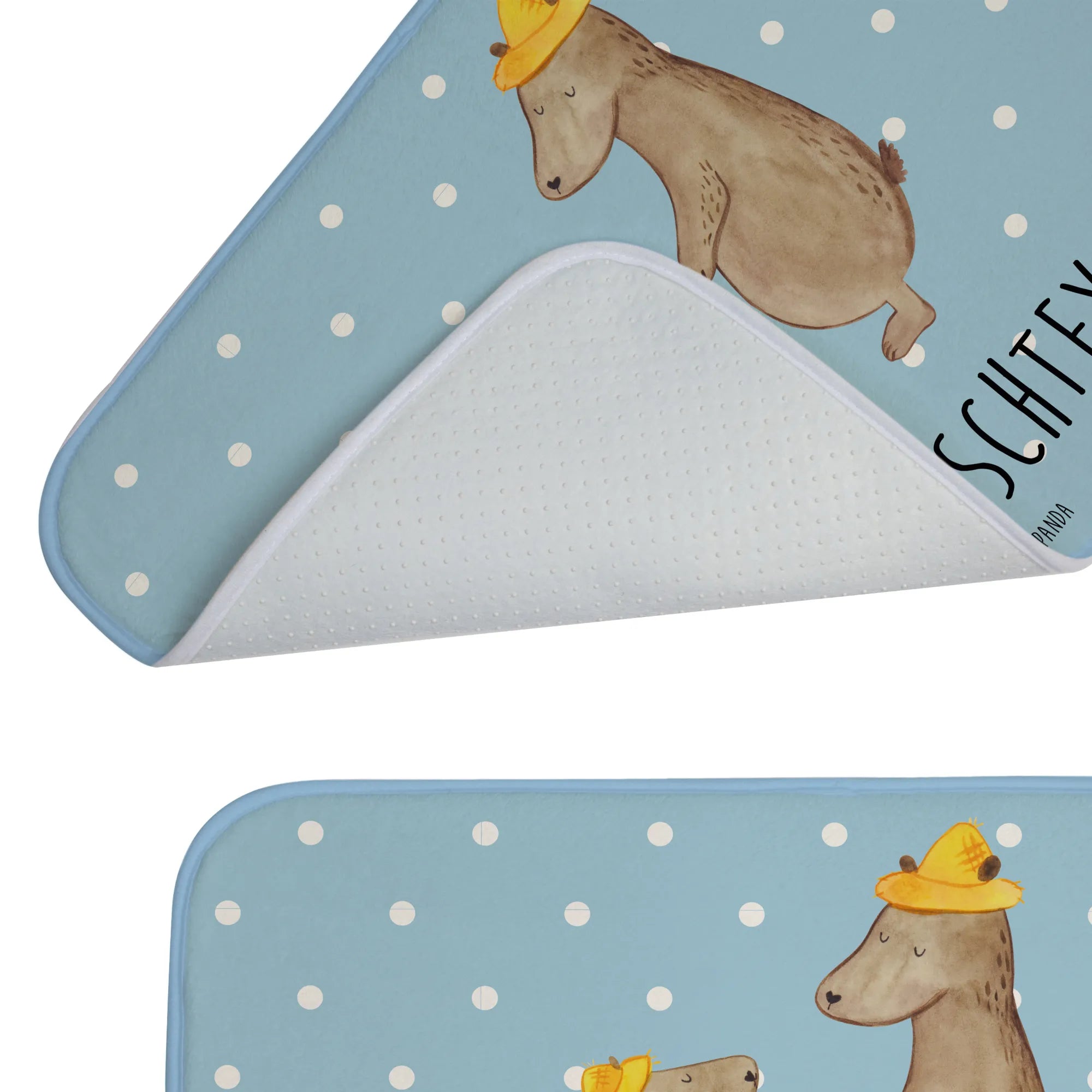 Hol dir mit unserem personalisierten Badvorleger von Mr. & Mrs. Panda ein Stück Persönlichkeit in dein Badezimmer! Er hat die perfekten Maße von 590 mm x 400 mm und wird mit zauberhaften Motiven und deinem gewünschten Text bedruckt. Der Badteppich aus flauschiger Premium Kunstfaser gibt deinem Badezimmer nicht nur eine tolle Optik, sondern sorgt durch die rutschfeste Gummibeschichtung auch für Sicherheit. Ideal für den Einsatz nach einem entspannenden Bad oder einer erfrischenden Dusche. Unsere liebevolle Gestaltung macht den Badvorleger zu einem ganz besonderen Geschenk, das für Freude sorgt. Zudem ist er besonders saugstark und pflegeleicht: Einfach bei 30°C in der Waschmaschine waschen und schon erstrahlt er wieder in neuem Glanz!