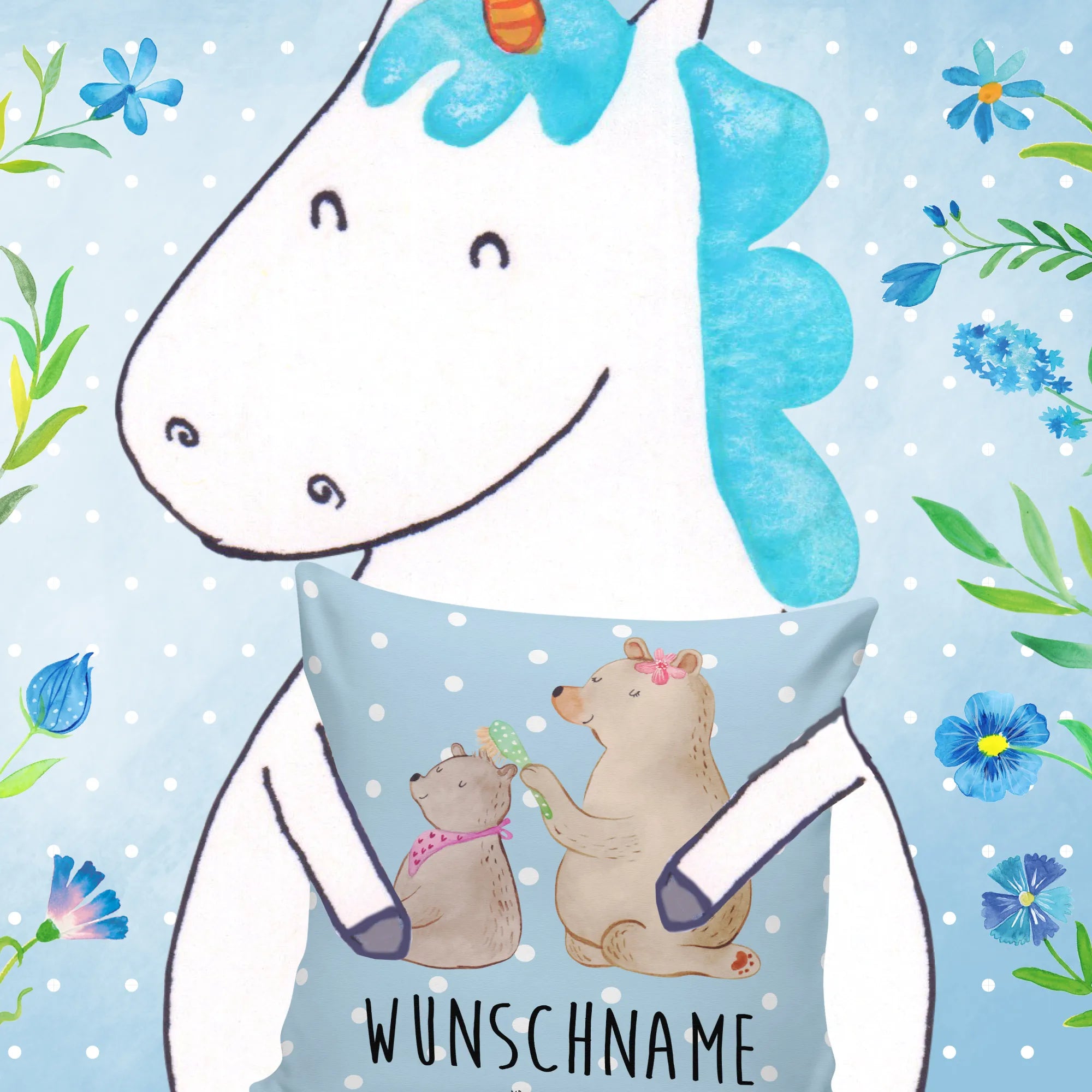 Das personalisierte Kissen mit dem bezaubernden Motiv 'Bär mit Kind' von Mr. & Mrs. Panda ist das perfekte Geschenk für jede Mama, die du kennst. Egal ob zum Muttertag, Geburtstag oder einfach so – dieses Kissen erfüllt den Raum mit Liebe und Wärme. Das Motiv zeigt einen großen Bären, der mit einem liebevollen Blick das kleine Bärchen mit einer hübschen Haarspange im Haar kämmt. Es strahlt die familiäre Zuneigung und Fürsorge aus, die wir alle in unserem Leben brauchen.