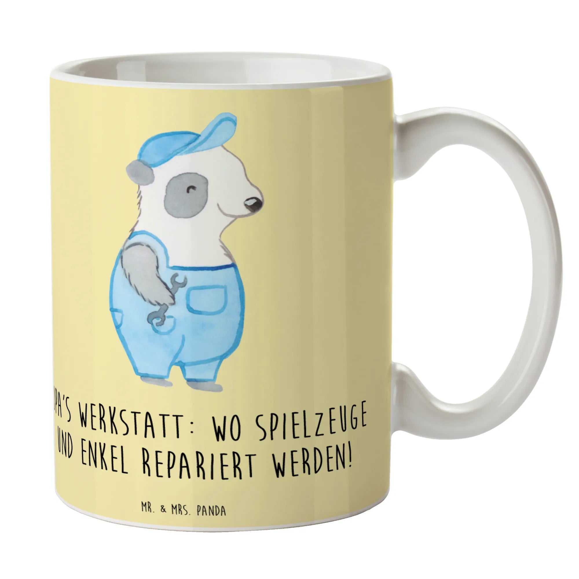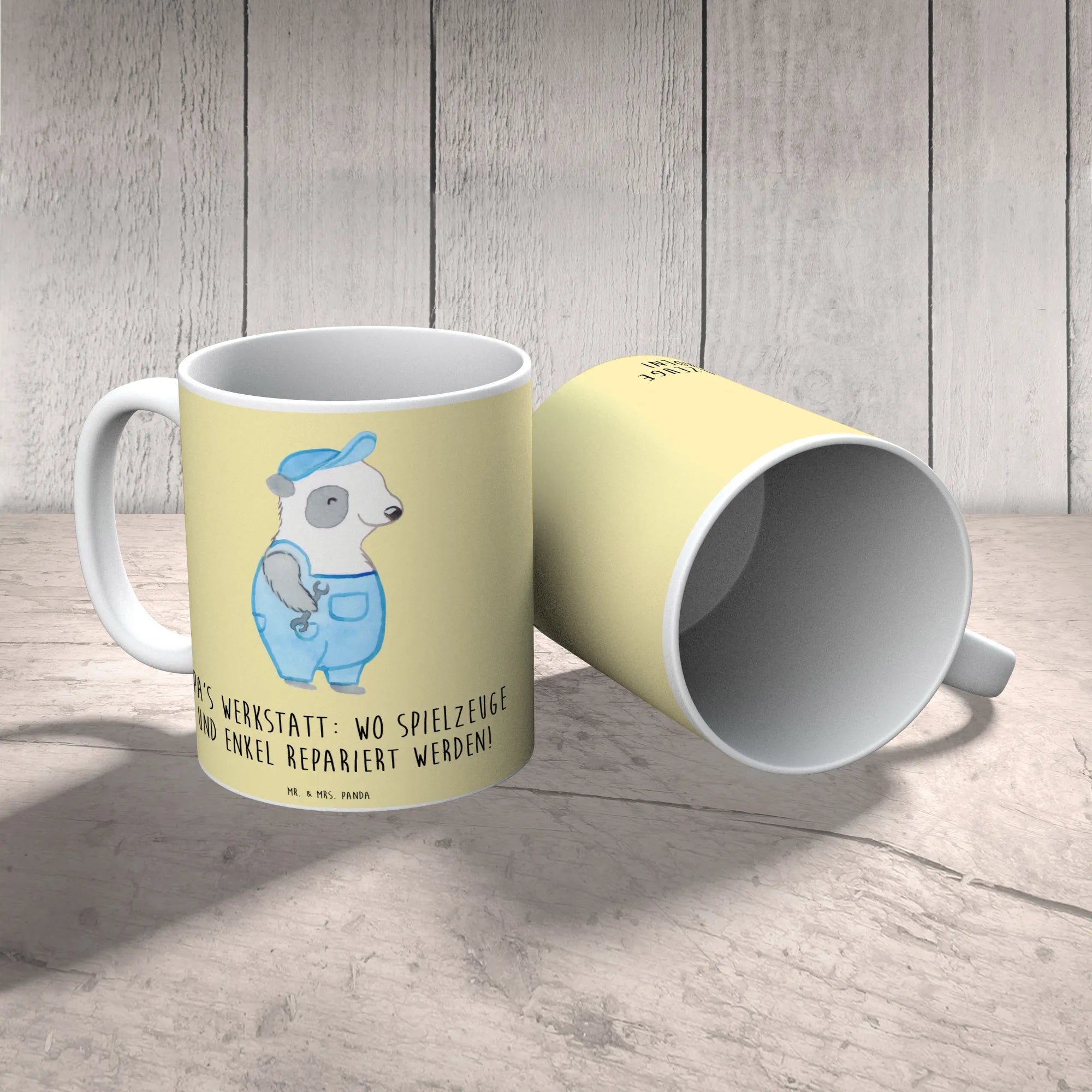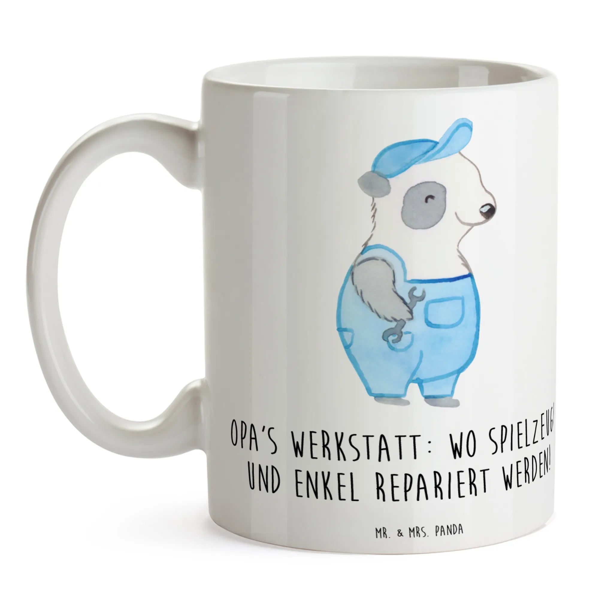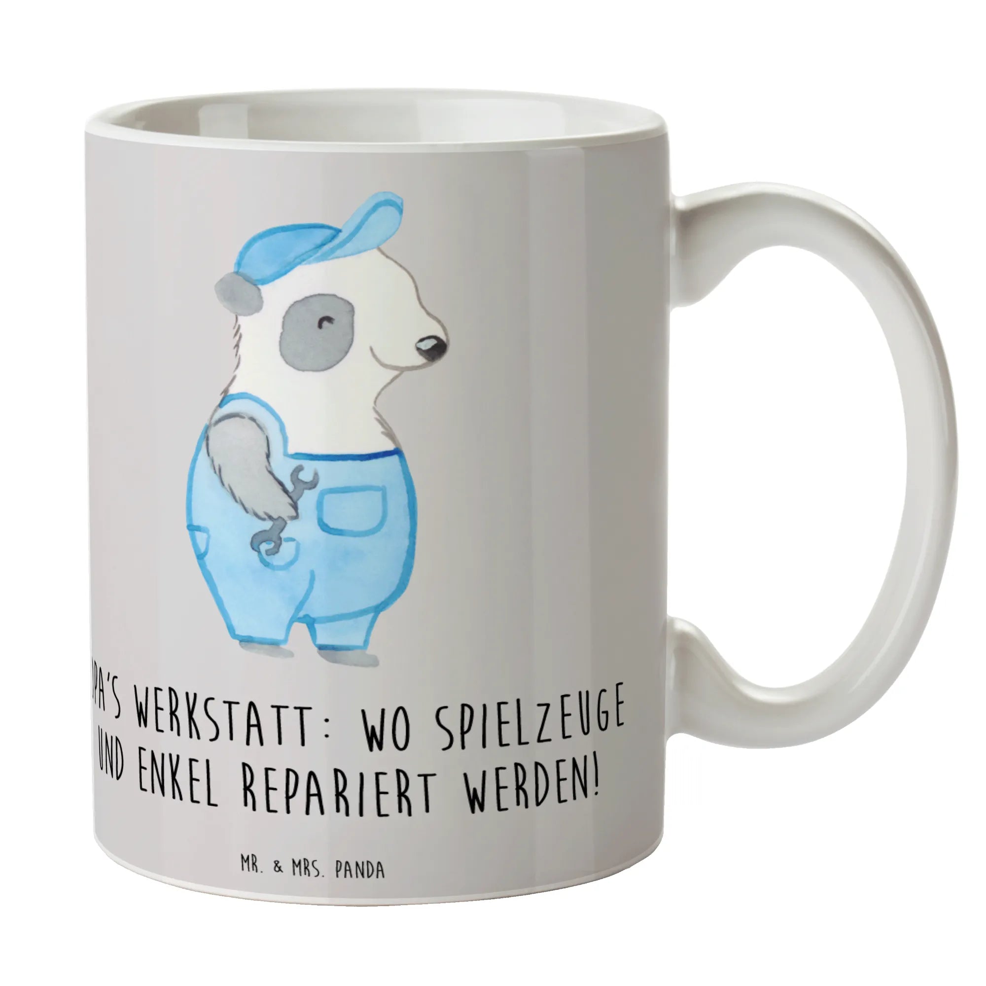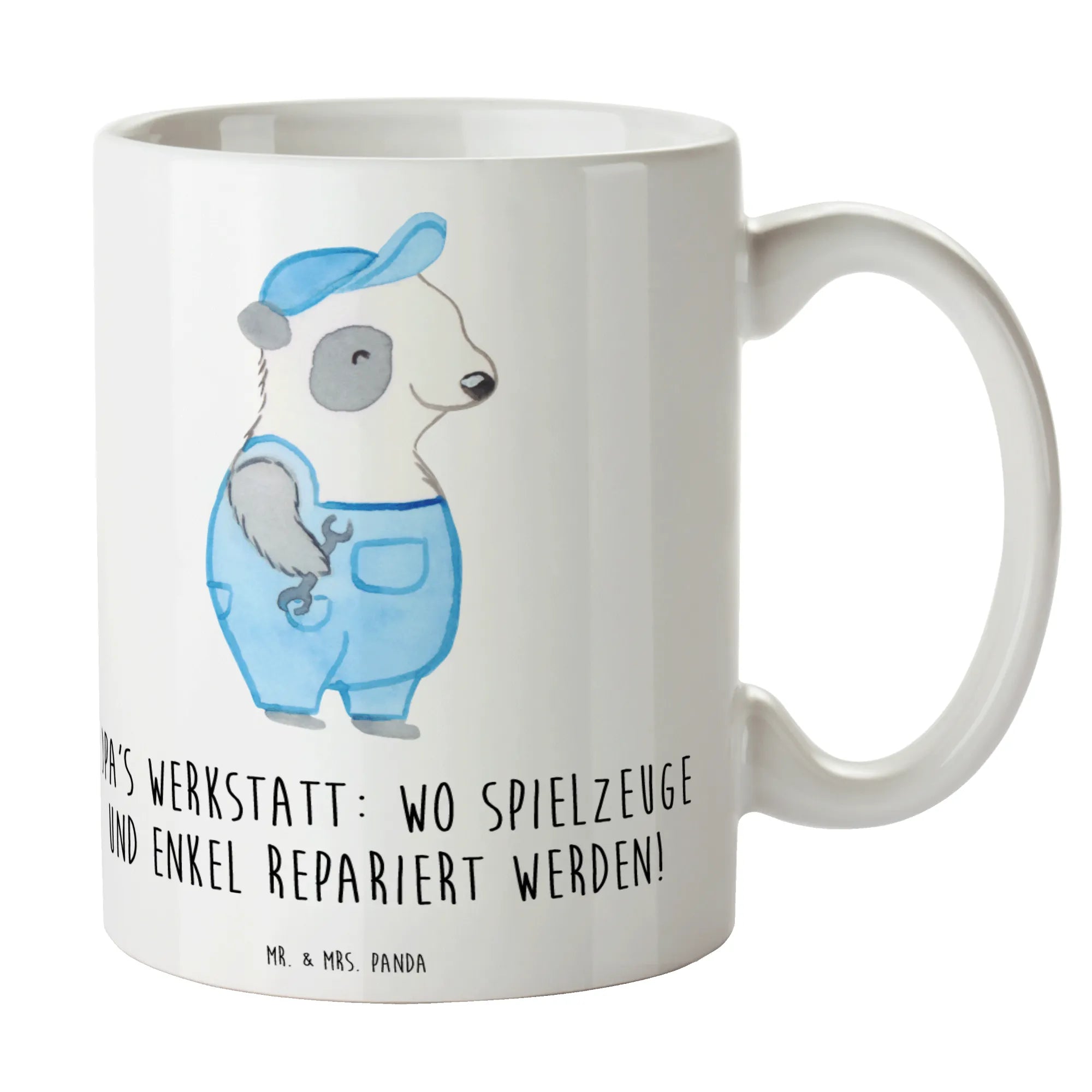 Die wunderschöne Keramiktasse von Mr. & Mrs. Panda mit dem Motiv "Opa's Werkstatt: wo Spielzeuge und Enkel repariert werden!" ist das perfekte Geschenk für alle Großeltern. Diese Tasse bringt nicht nur Freude in den Alltag, sondern ist auch ein echter Blickfang in jeder Küche oder im Büro. Mit einer Füllmenge von 325 ml bietet sie genug Platz für einen aromatischen Kaffee oder eine entspannende Tasse Tee. Die besondere glänzende Oberfläche macht sie zu einem Eyecatcher und sorgt dafür, dass jedes Getränk nochmals besser zur Geltung kommt.