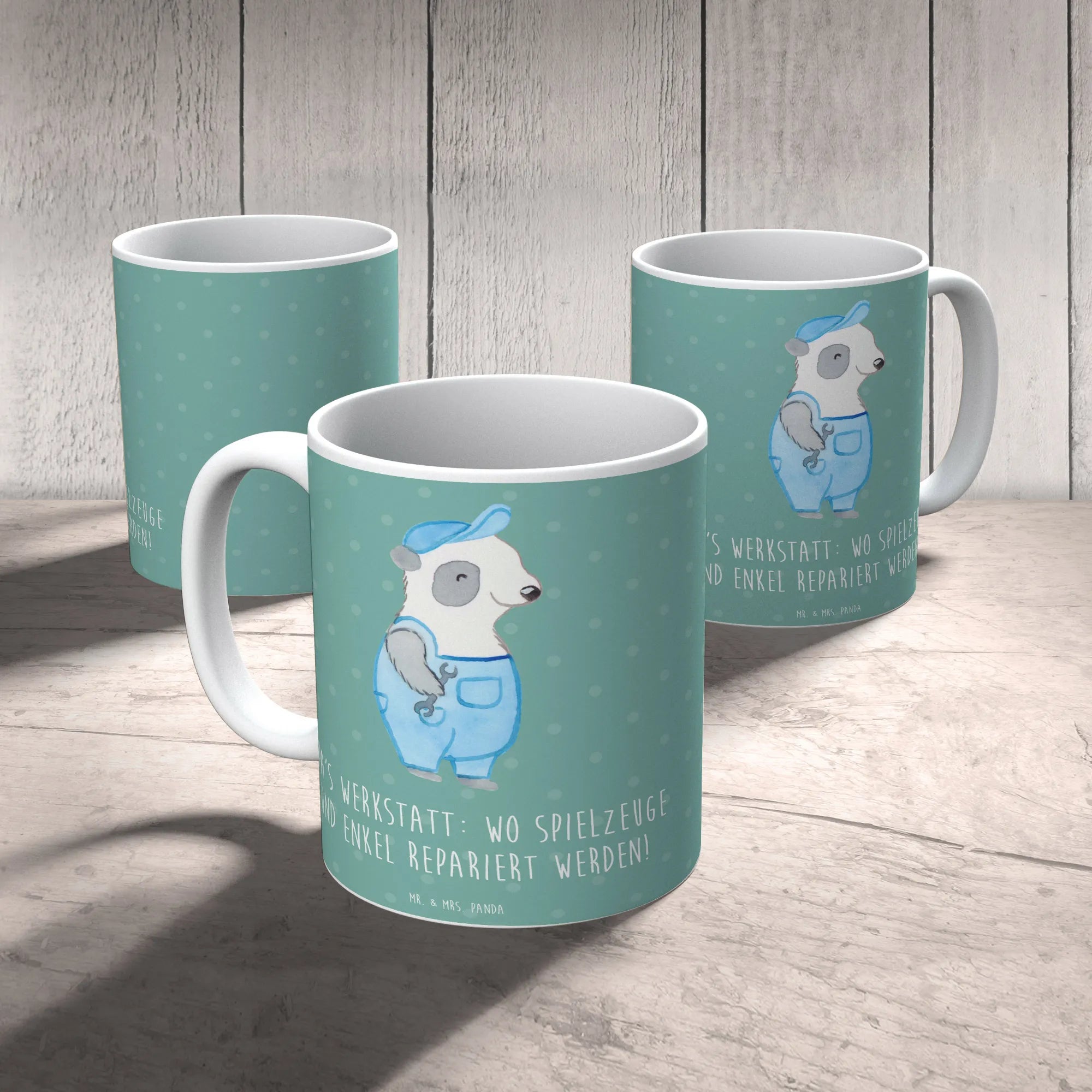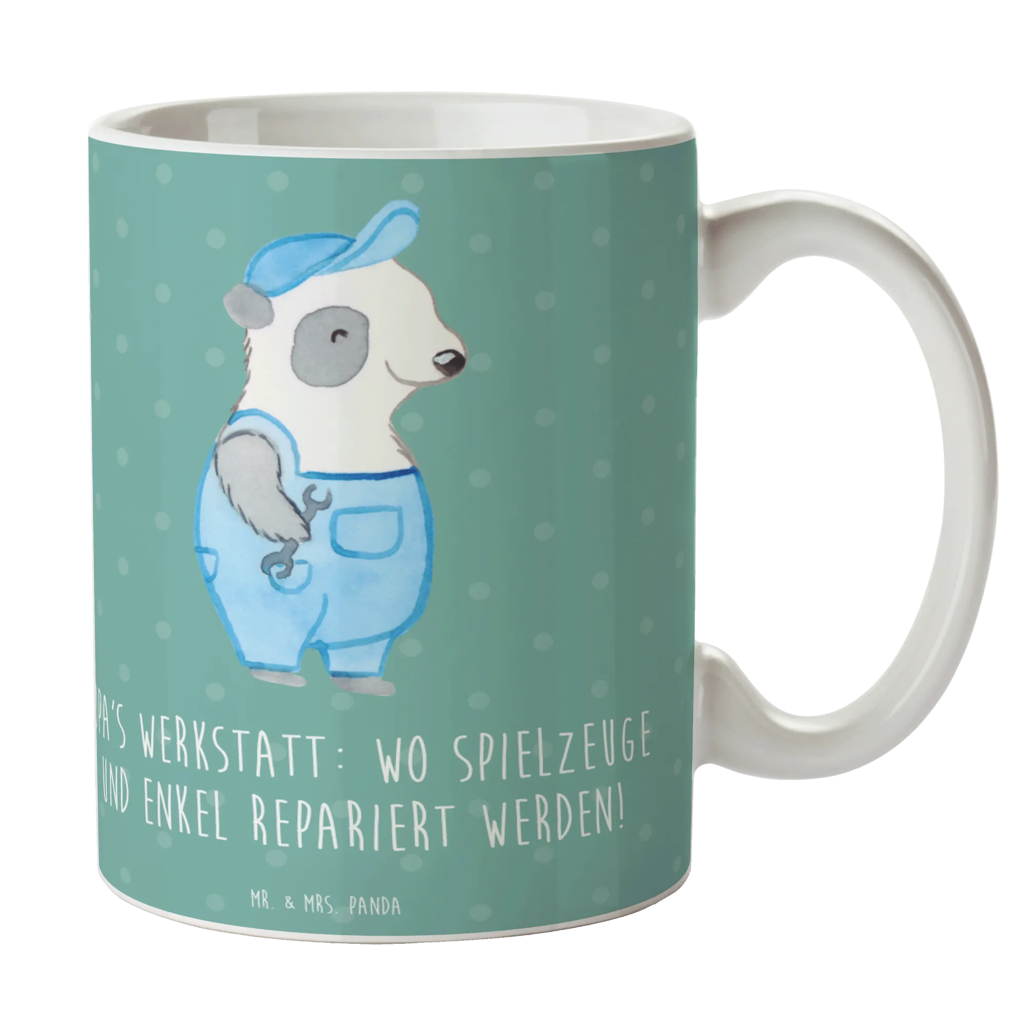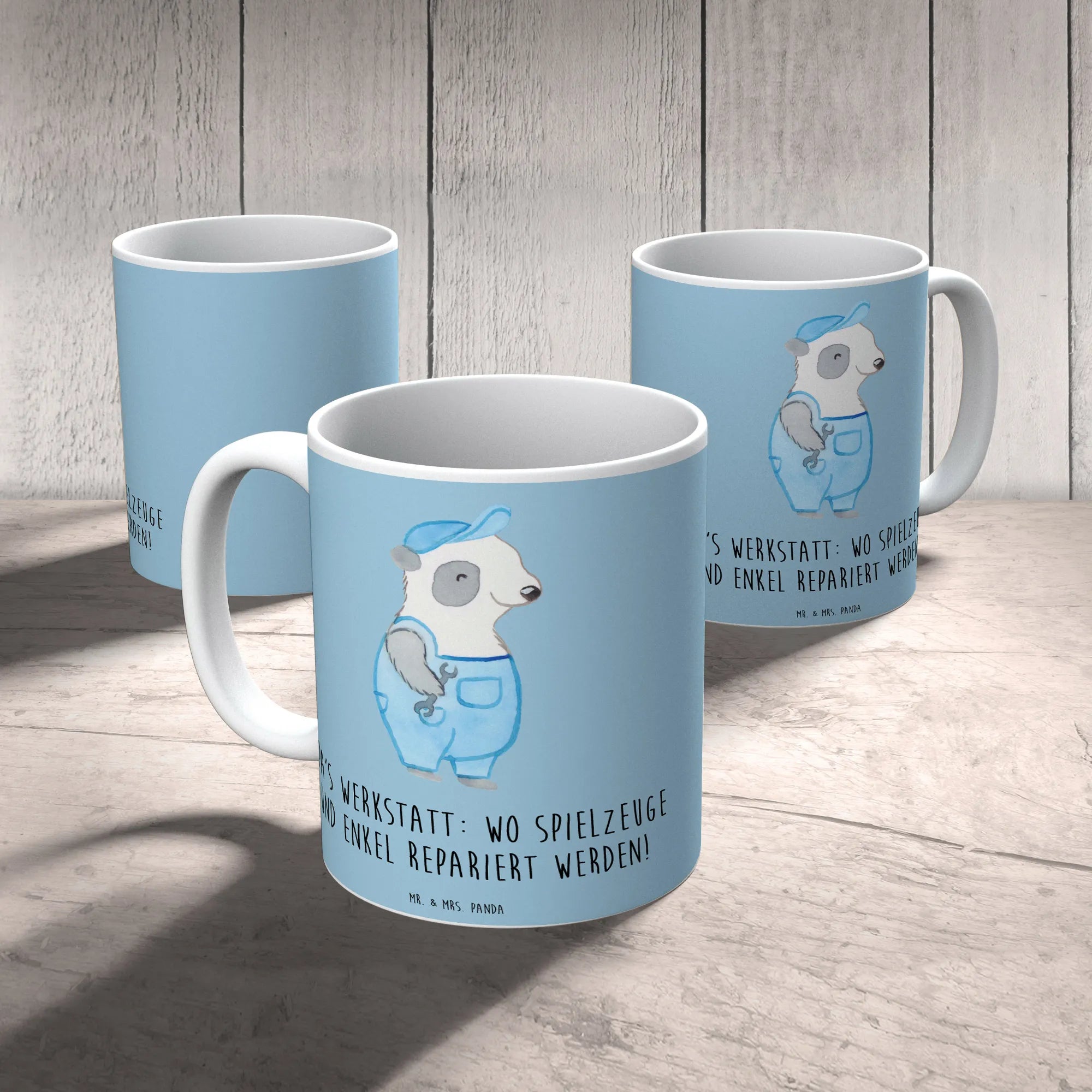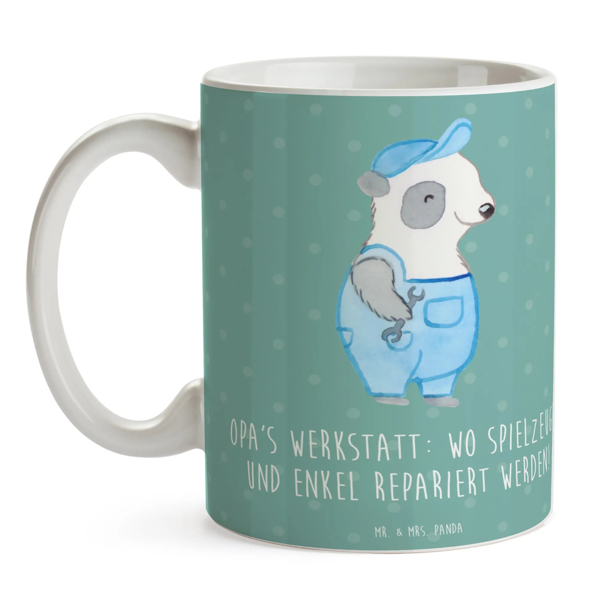 Die wunderschöne Keramiktasse von Mr. & Mrs. Panda mit dem Motiv "Opa's Werkstatt: wo Spielzeuge und Enkel repariert werden!" ist das perfekte Geschenk für alle Großeltern. Diese Tasse bringt nicht nur Freude in den Alltag, sondern ist auch ein echter Blickfang in jeder Küche oder im Büro. Mit einer Füllmenge von 325 ml bietet sie genug Platz für einen aromatischen Kaffee oder eine entspannende Tasse Tee. Die besondere glänzende Oberfläche macht sie zu einem Eyecatcher und sorgt dafür, dass jedes Getränk nochmals besser zur Geltung kommt.
