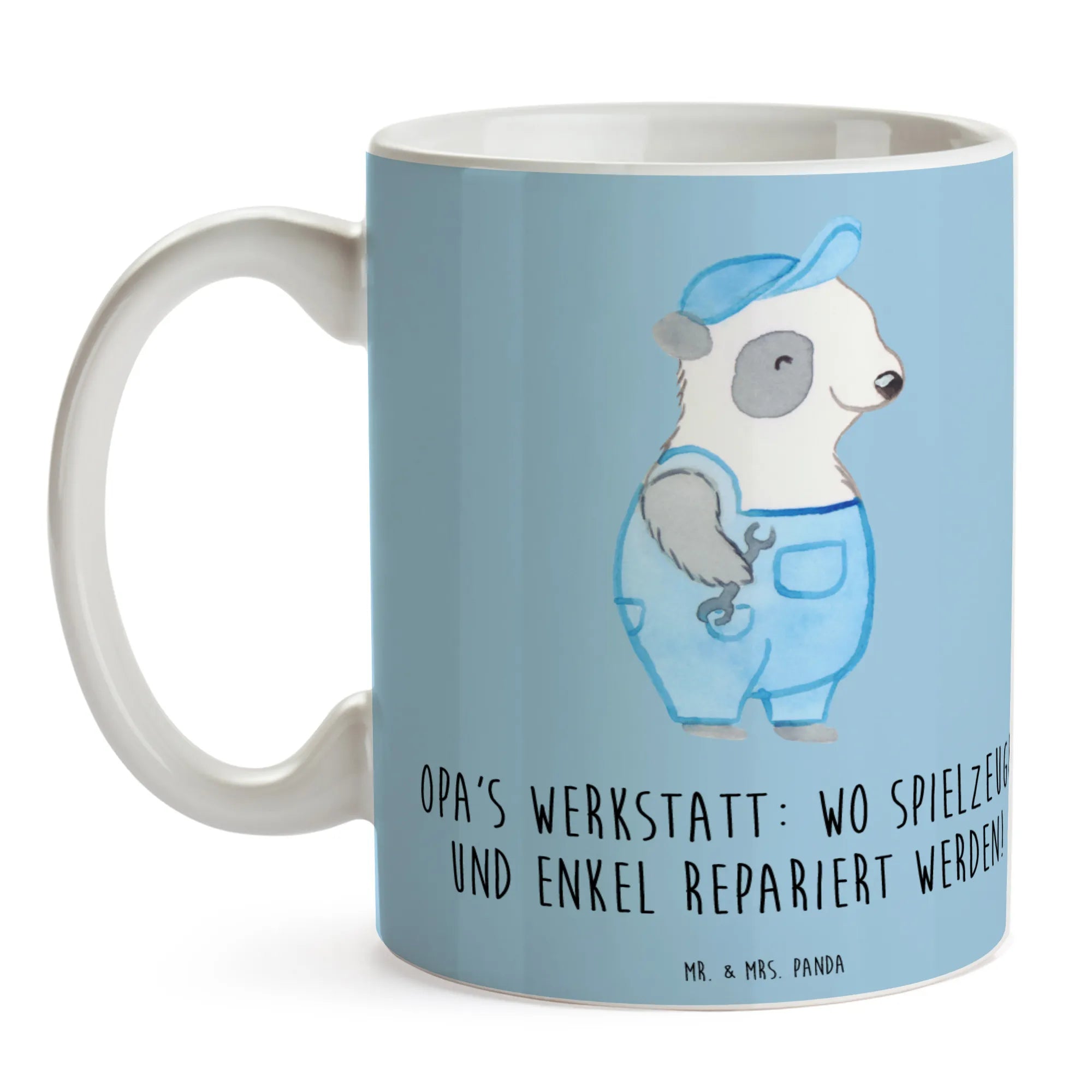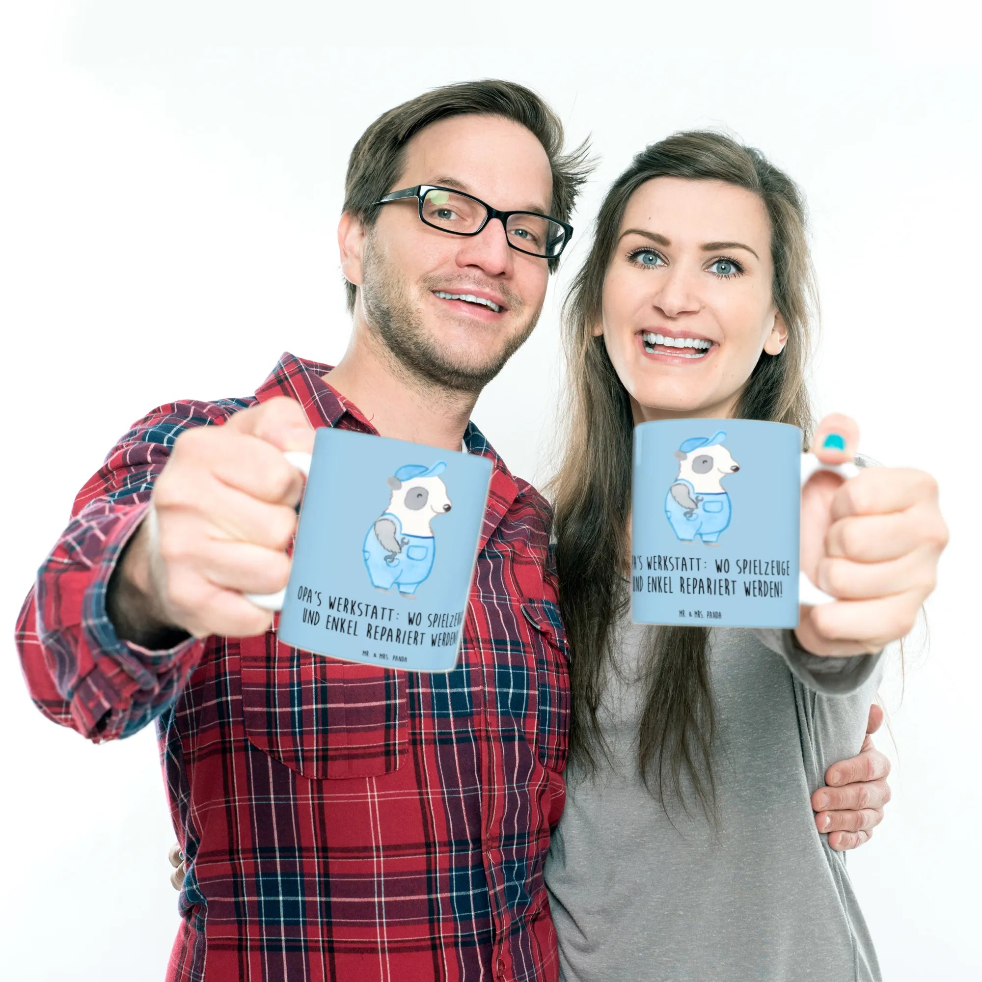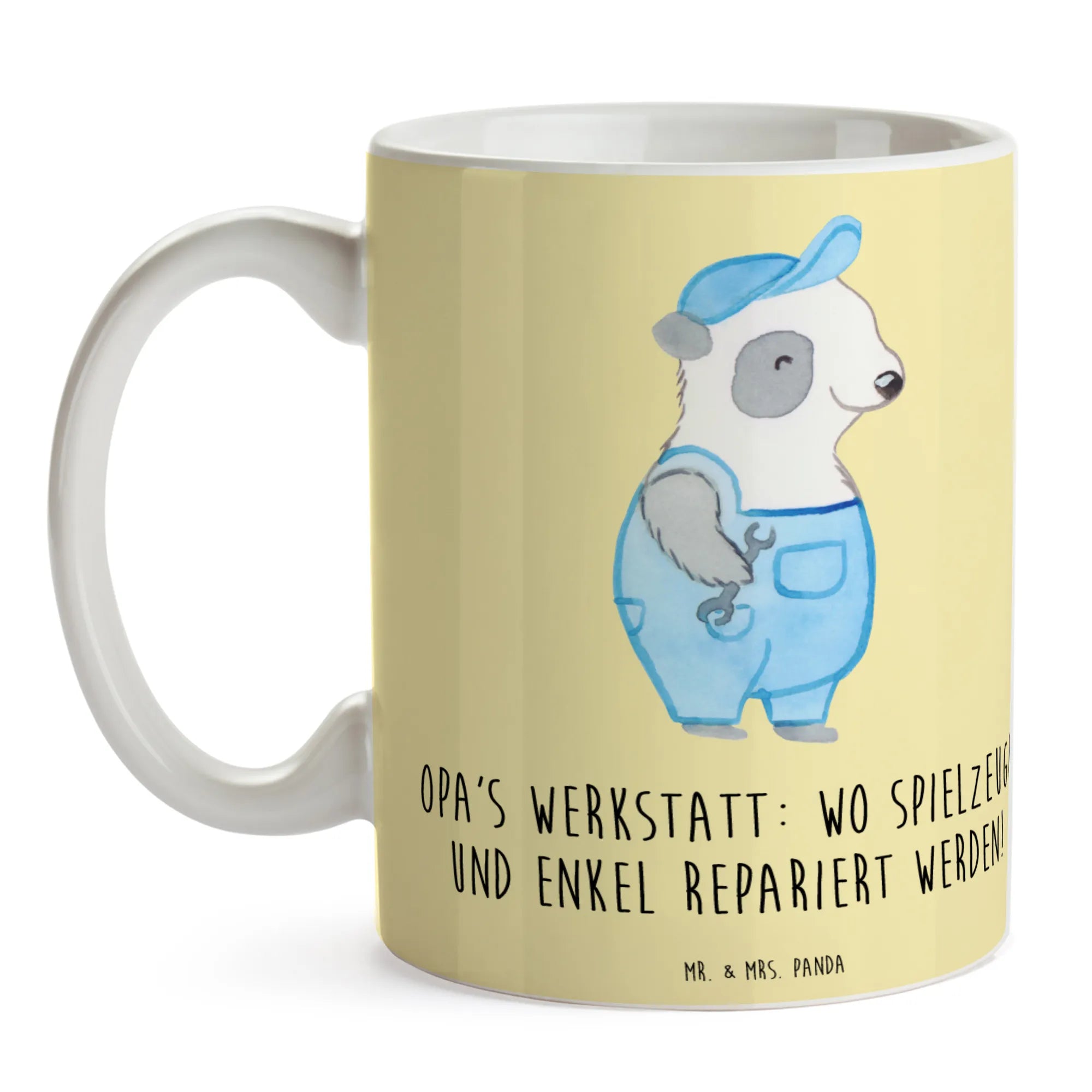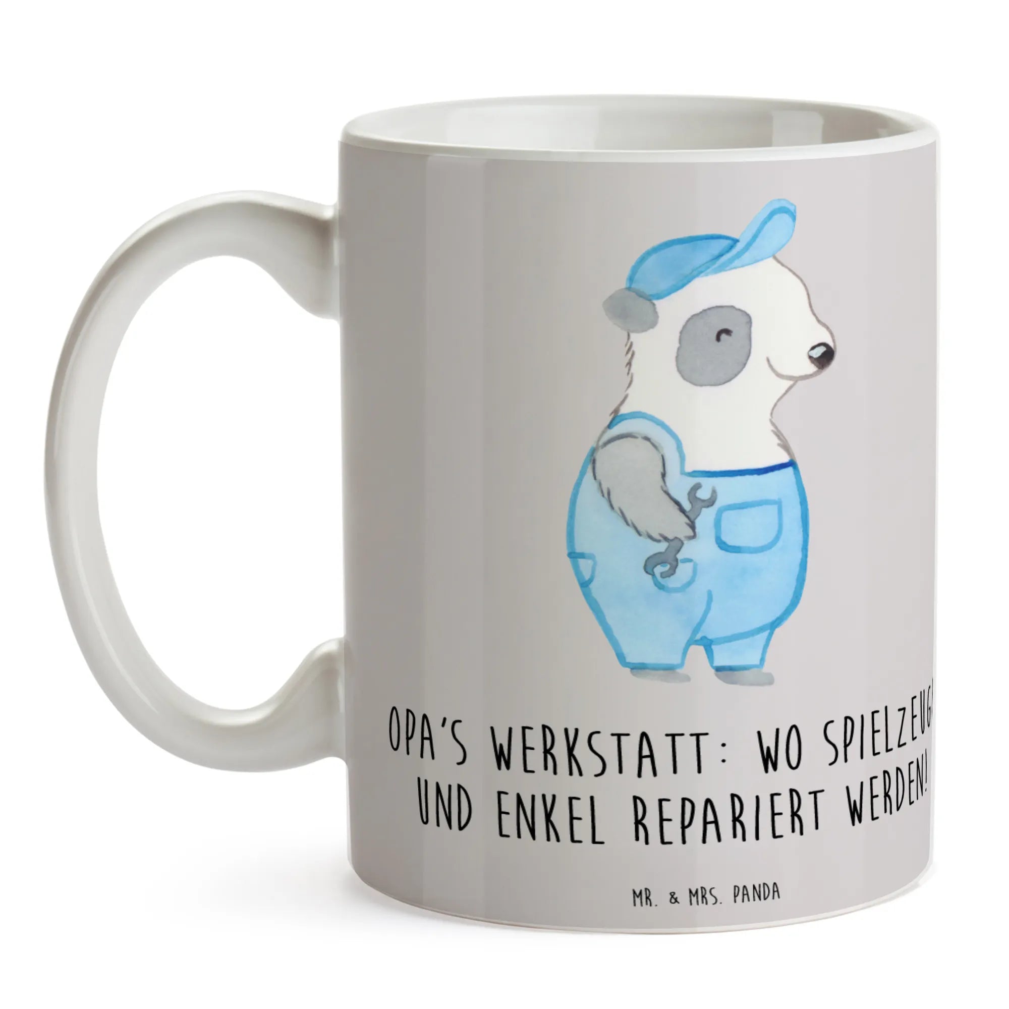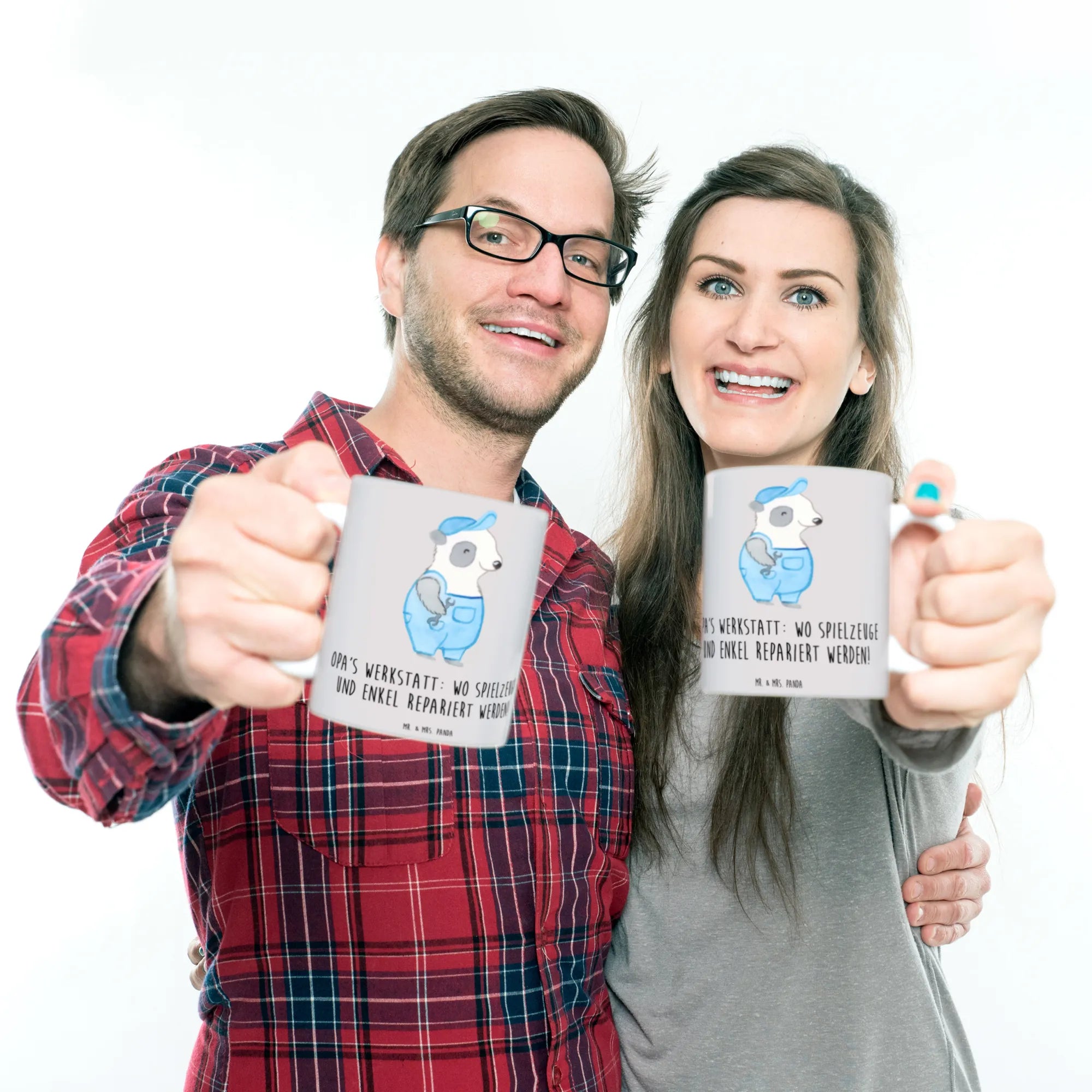 Die wunderschöne Keramiktasse von Mr. & Mrs. Panda mit dem Motiv "Opa's Werkstatt: wo Spielzeuge und Enkel repariert werden!" ist das perfekte Geschenk für alle Großeltern. Diese Tasse bringt nicht nur Freude in den Alltag, sondern ist auch ein echter Blickfang in jeder Küche oder im Büro. Mit einer Füllmenge von 325 ml bietet sie genug Platz für einen aromatischen Kaffee oder eine entspannende Tasse Tee. Die besondere glänzende Oberfläche macht sie zu einem Eyecatcher und sorgt dafür, dass jedes Getränk nochmals besser zur Geltung kommt.