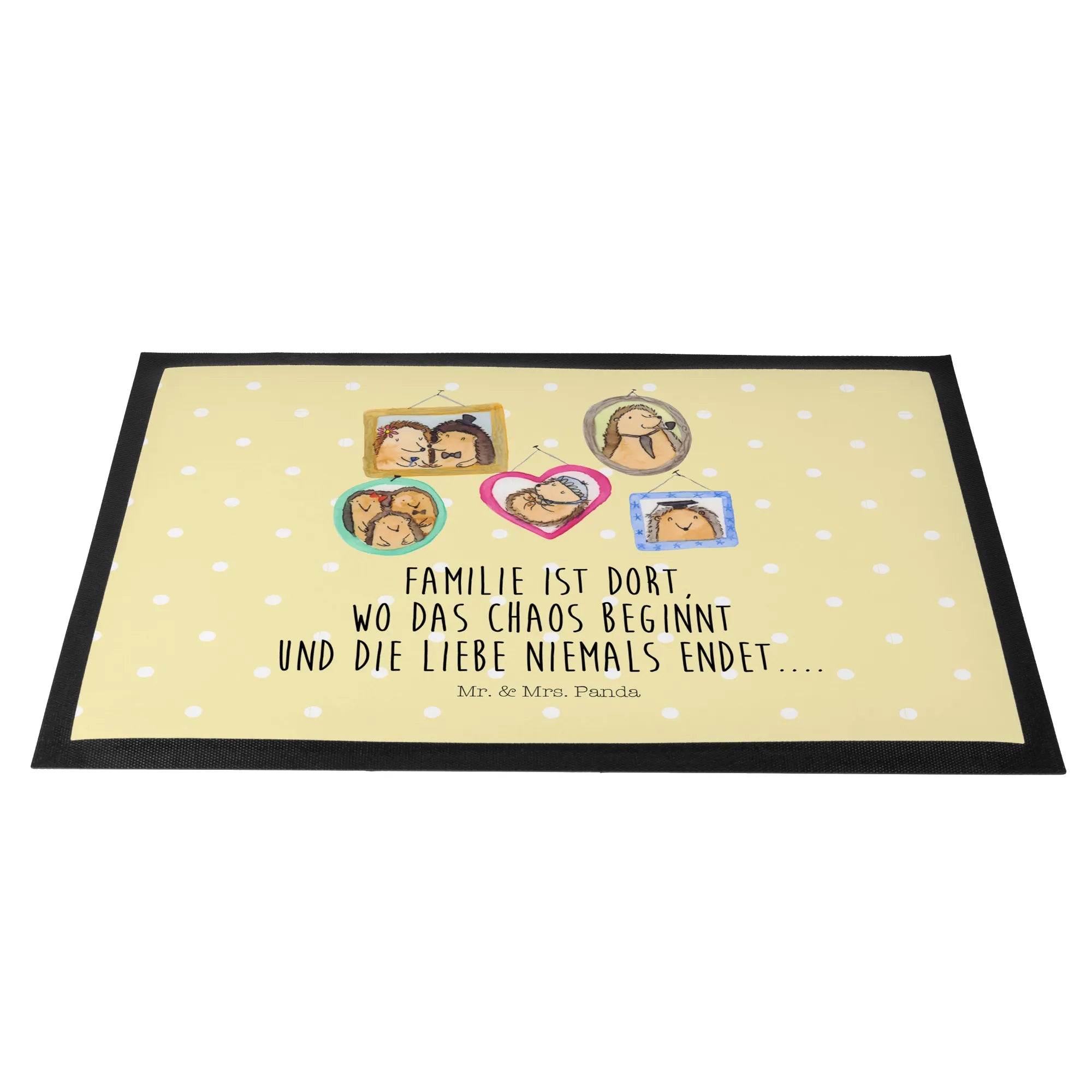 Die Fußmatte "Igel Familie" von Mr. & Mrs. Panda ist der perfekte Willkommensgruß für jedes Zuhause! Mit dem liebevollen Motiv, das eine charmante Igelfamilie in verschiedenen herzlichen Posen zeigt, wird jeder Besucher sofort zum Schmunzeln gebracht. Die Vorstellung, dass das eigene Zuhause ein Ort der Geborgenheit und des Zusammenhalts ist, wird durch den eingängigen Slogan "Familie ist dort, wo das Chaos beginnt und die Liebe niemals endet..." perfekt unterstrichen.
