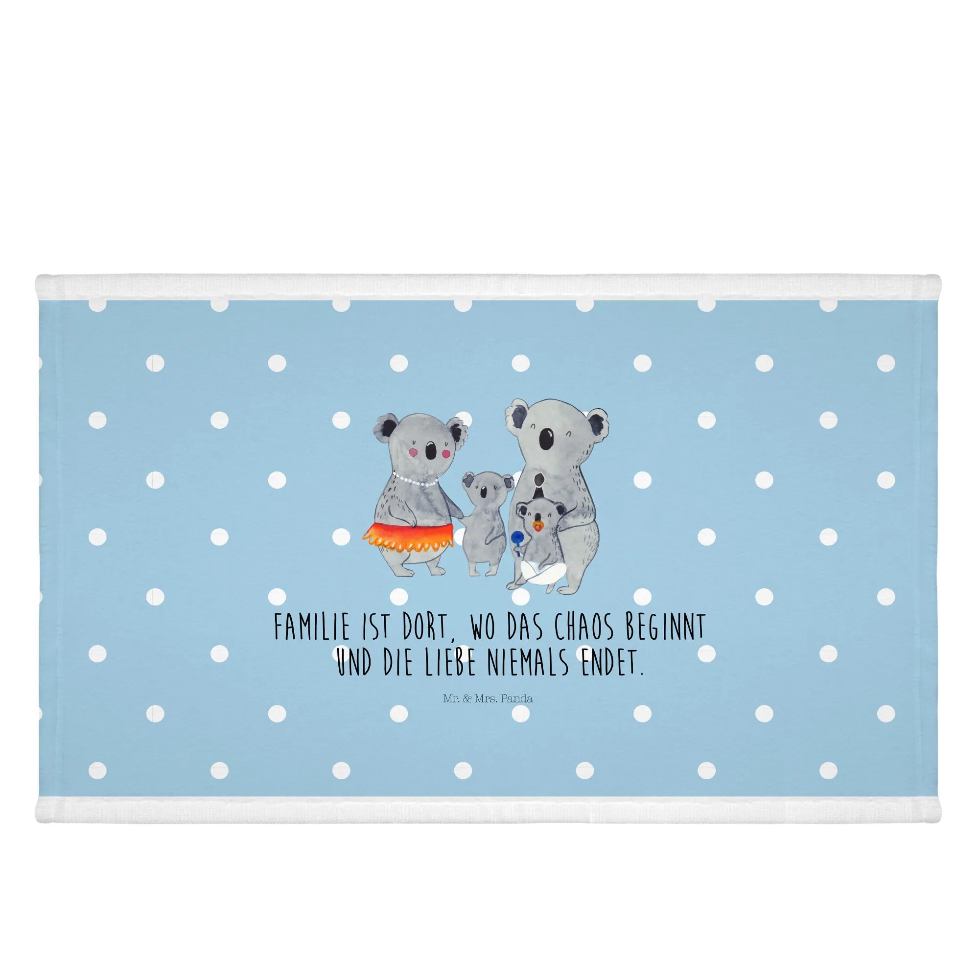 Entdecke das bezaubernde Gästetuch "Koala Familie" von Mr. & Mrs. Panda, das perfekt für deine Familie geeignet ist. Mit seinem fröhlichen Design aus zwei großen und zwei kleinen Koalas, die menschliche Züge tragen, bringt dieses Handtuch ein Stück Familie und Freude in dein Zuhause.