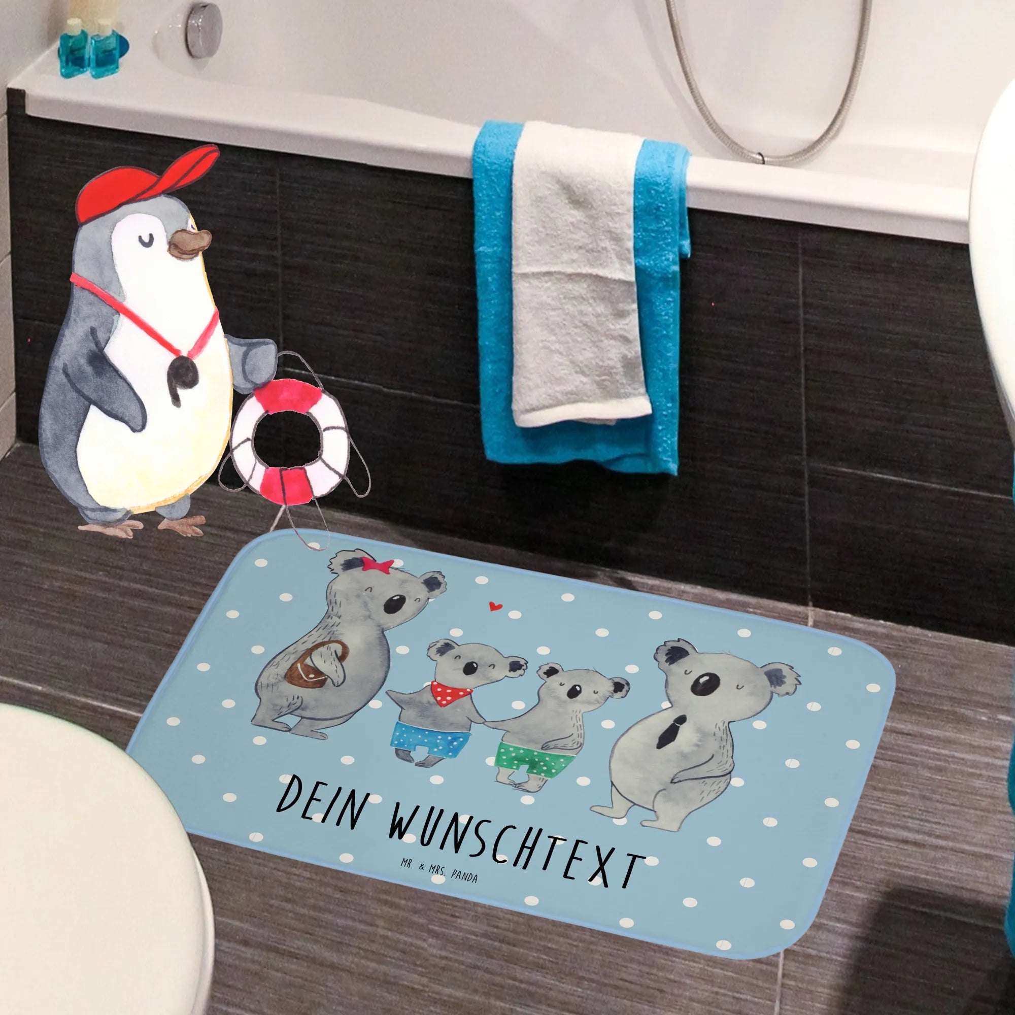 Personalisierter Badvorleger Koala Familie zwei - Blau Pastell