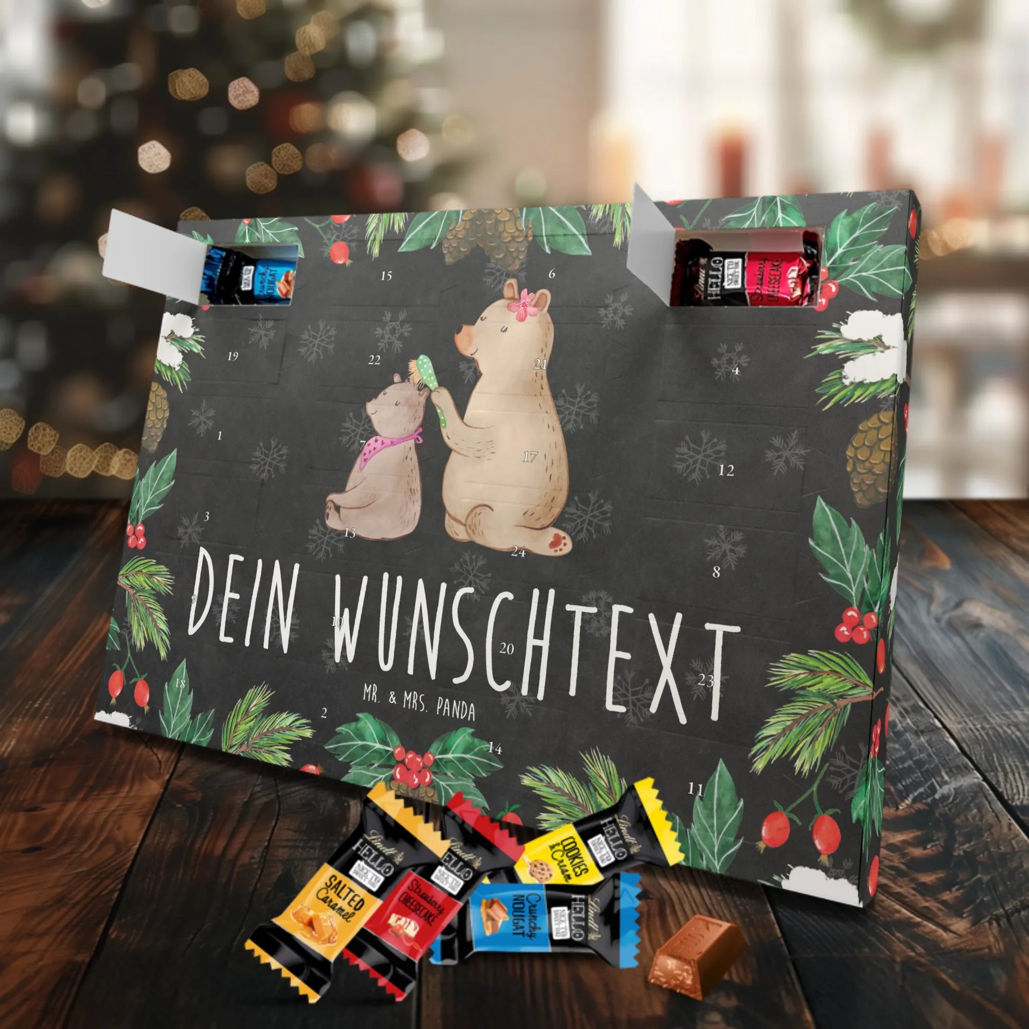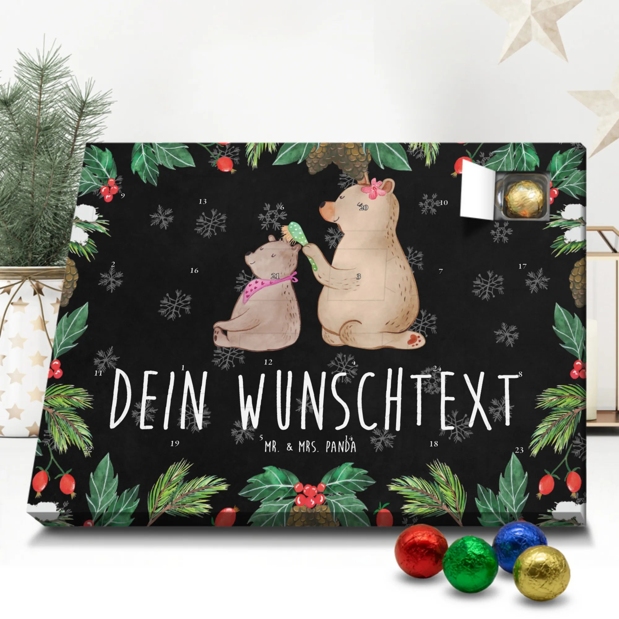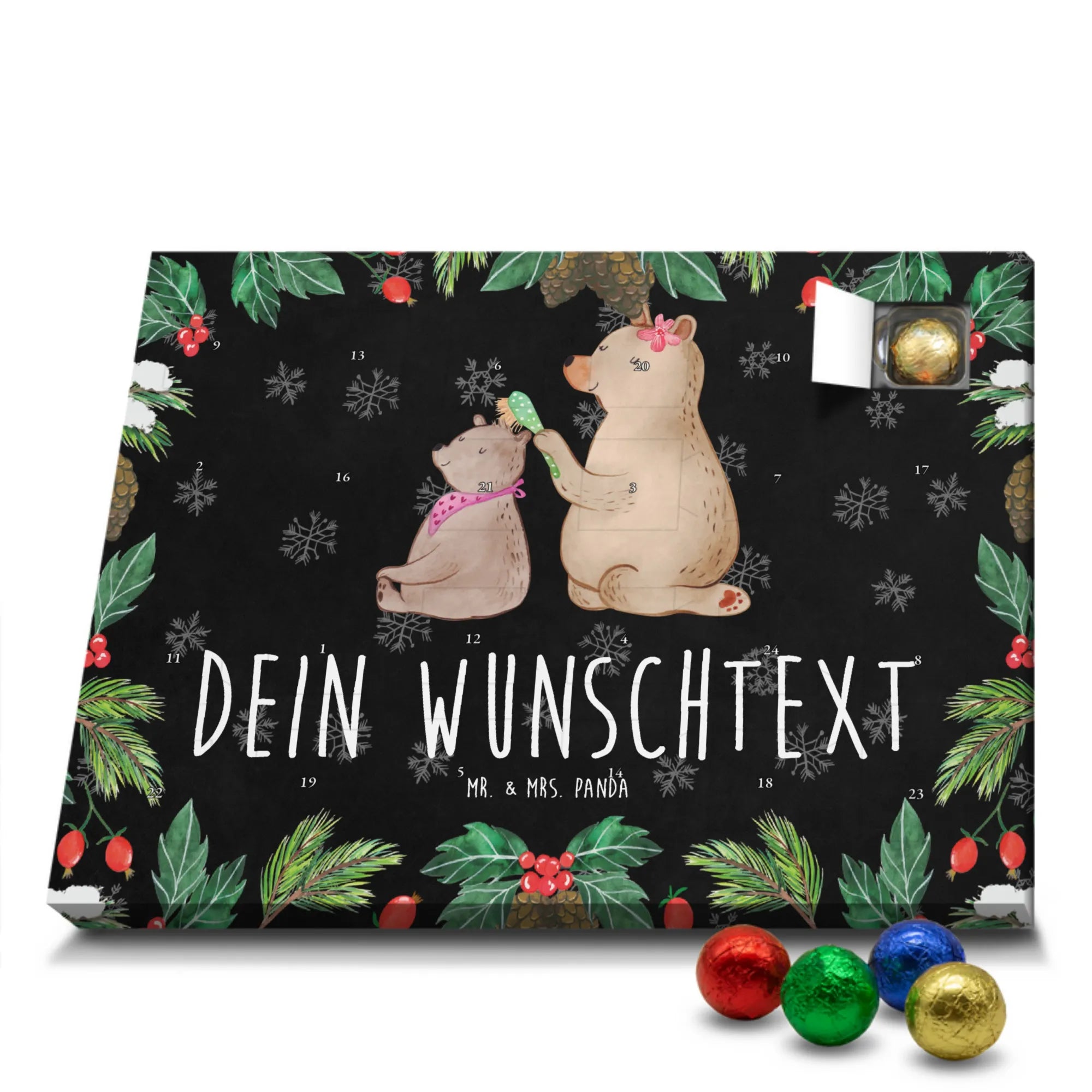 Gestalte Freude: Personalisiere deinen Schoko-Kalender und überrasche mit einem individuellen Adventsgruß von Mr. & Mrs. Panda!